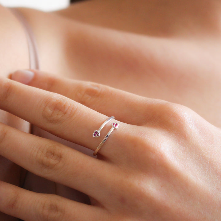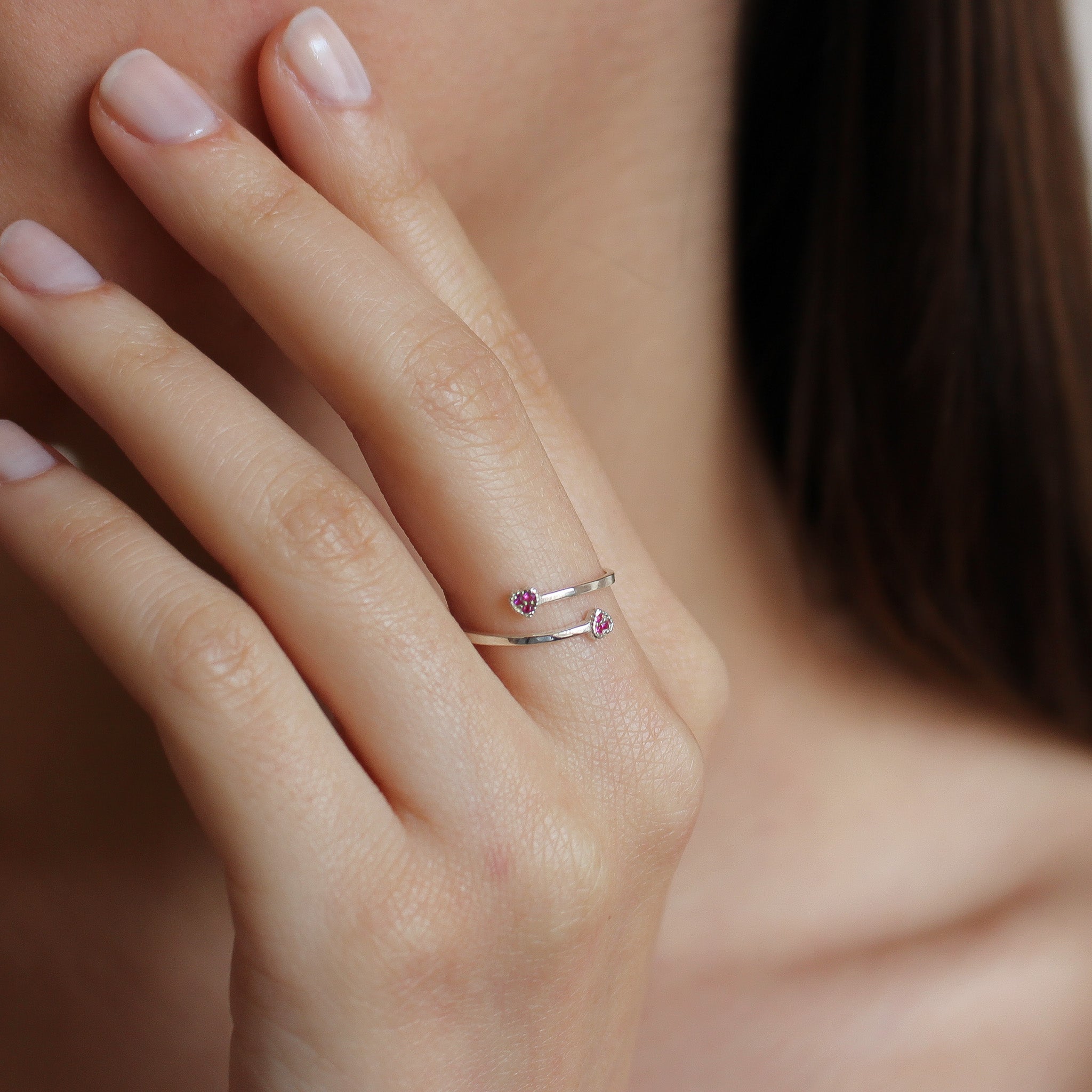 Elevate your elegance with this stunning adjustable ruby heart ring, crafted from your choice of 8K or 14K solid gold. The twin-heart design showcases vibrant ruby stones, exuding romance and sophistication. A perfect blend of luxury and versatility, this ring is ideal for any occasion, whether as a meaningful gift or a treat for yourself.
