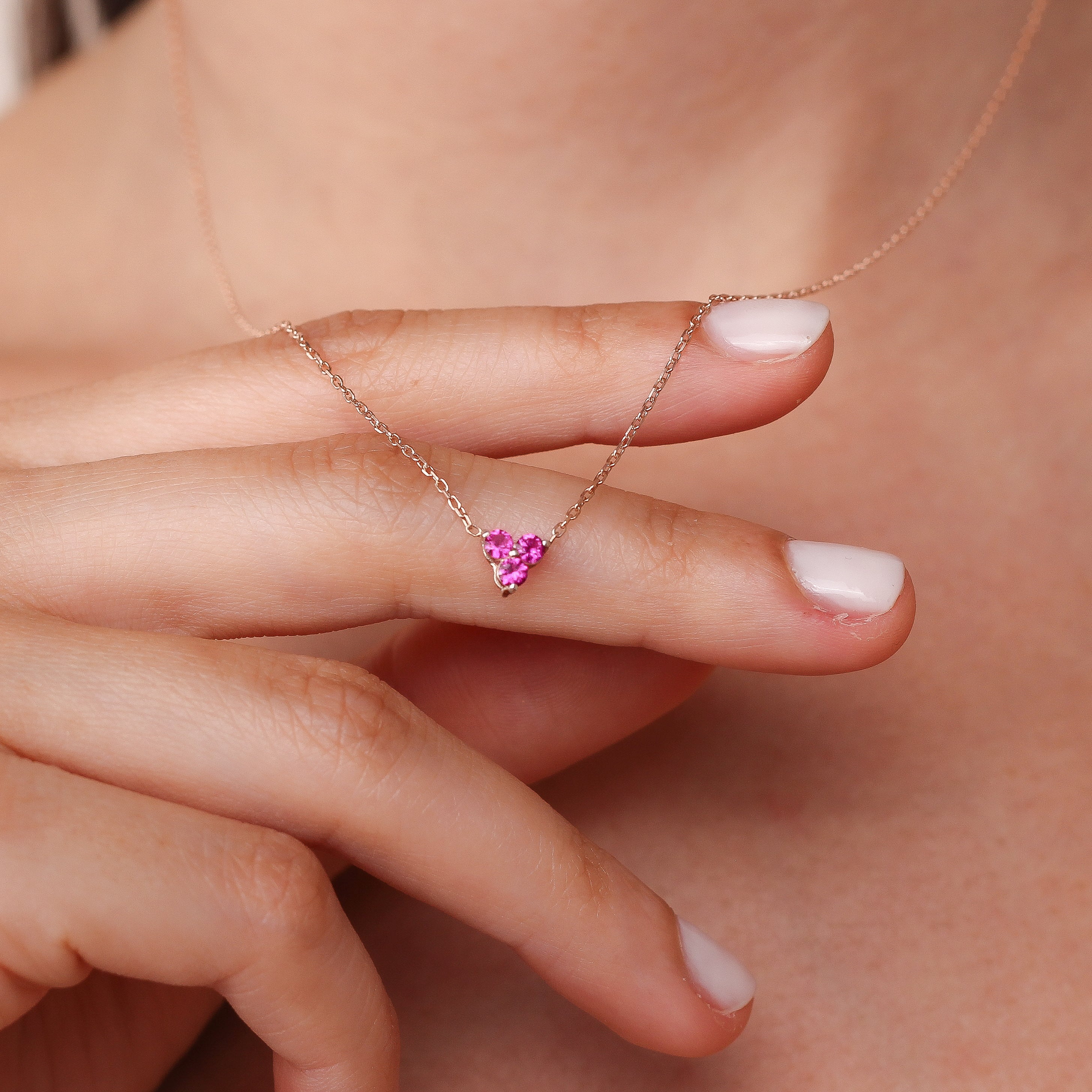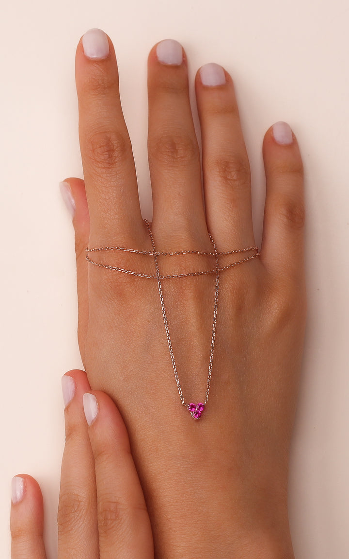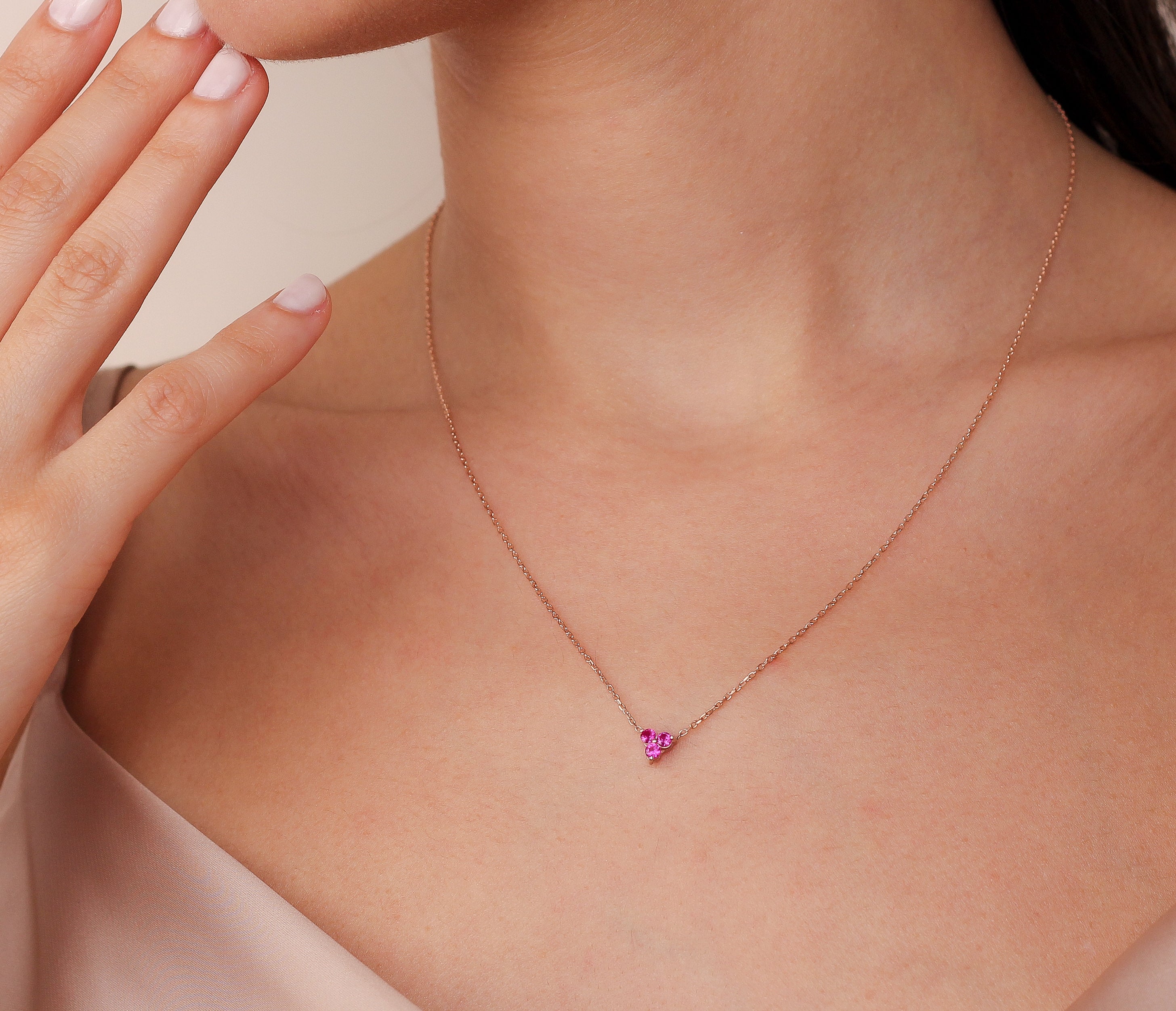 Add a touch of elegance and passion to your jewelry collection with this stunning Ruby Trio Necklace. Featuring three perfectly aligned round ruby gemstones, this minimalist yet luxurious piece is available in 8K or 14K solid gold. Perfect for celebrating anniversaries, romantic gestures, or simply treating yourself, this necklace is a timeless symbol of love and sophistication.
