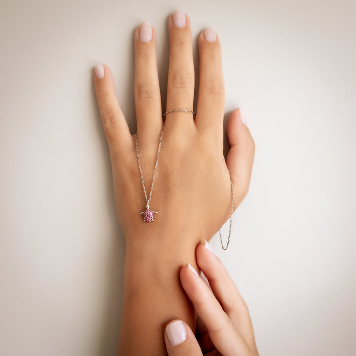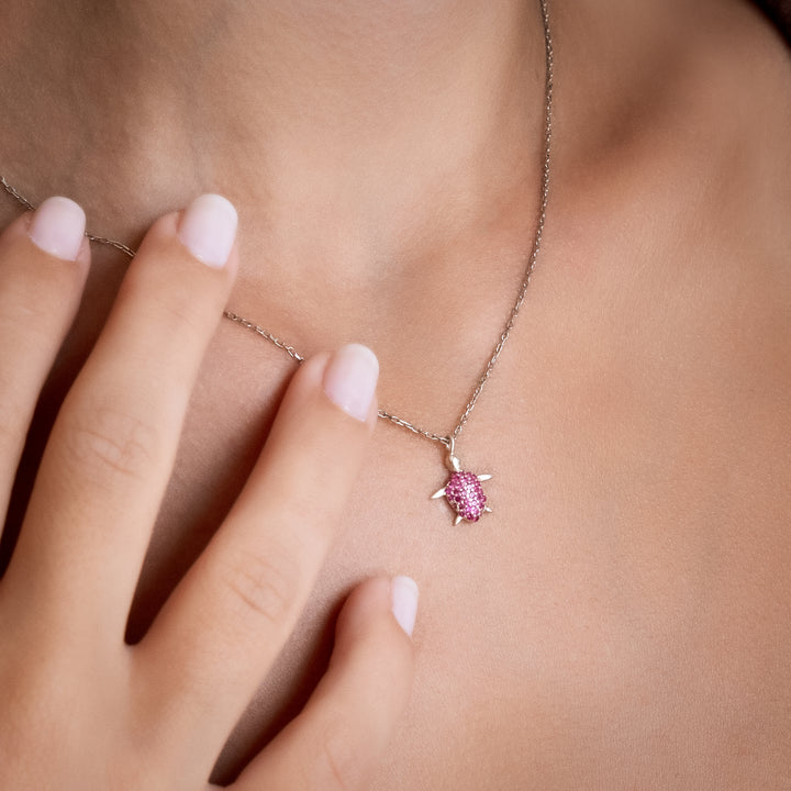 ELLIE Ruby Turtle Necklace | Gold & Silver Pendant with Zircon or Diamond Accents