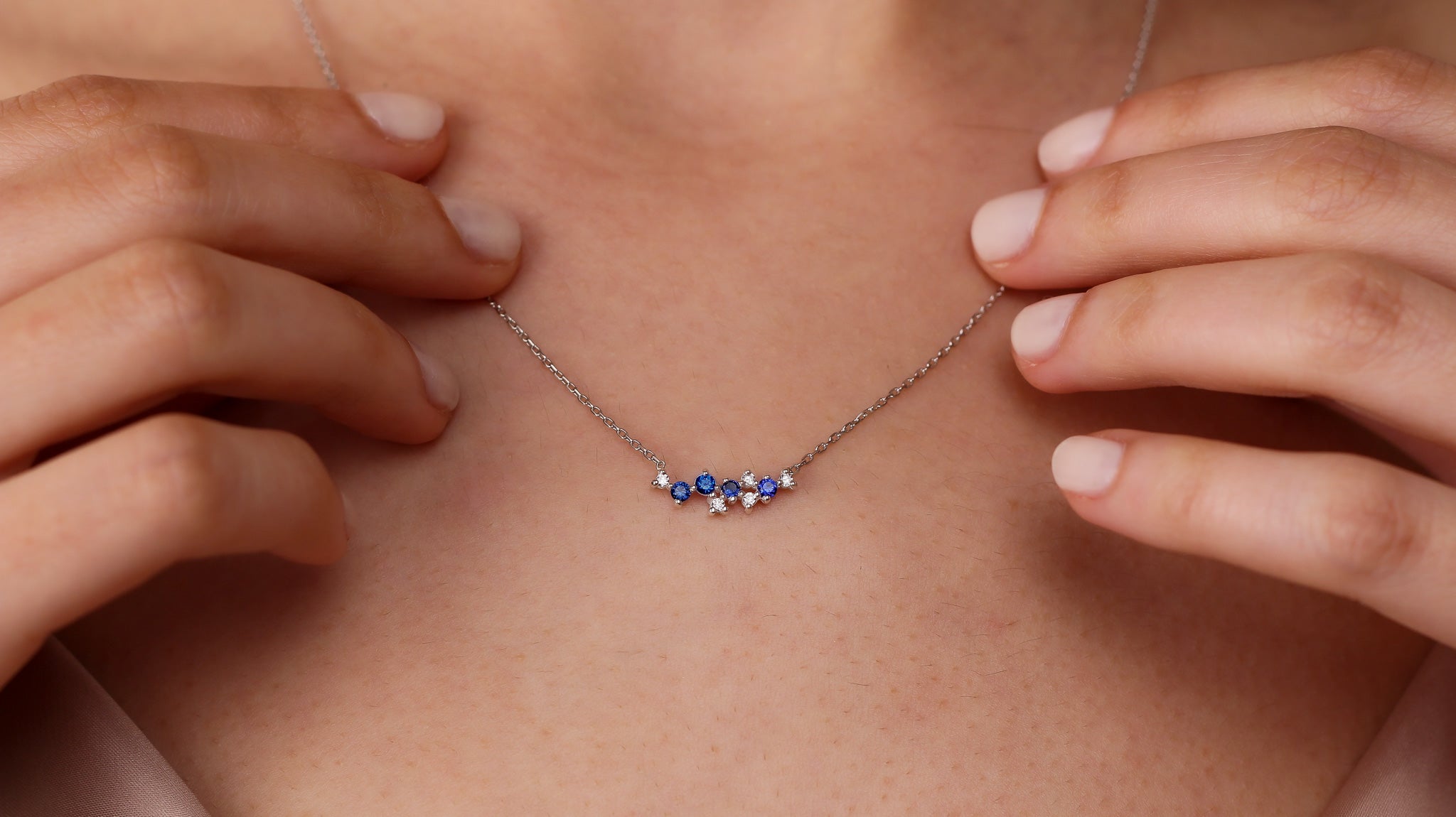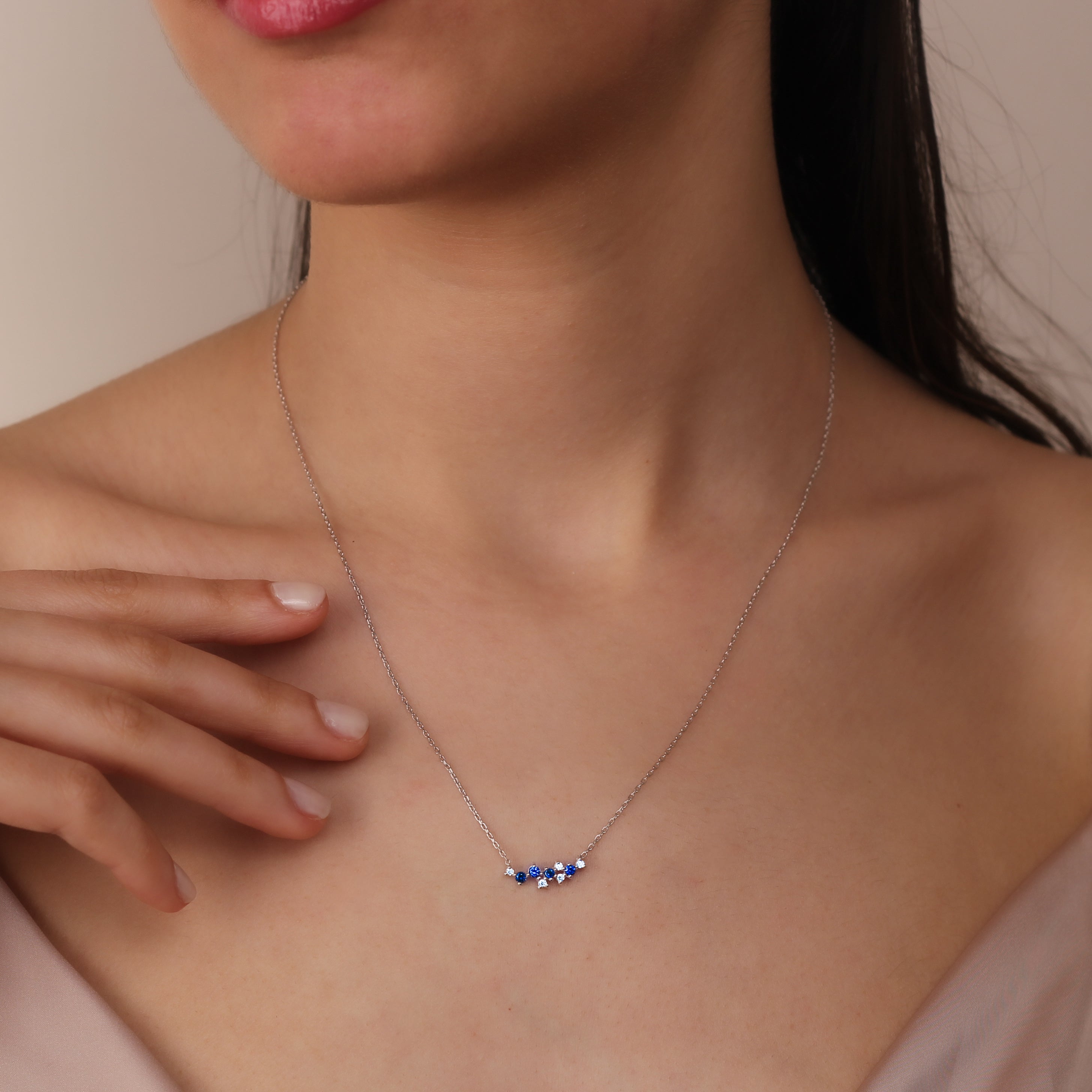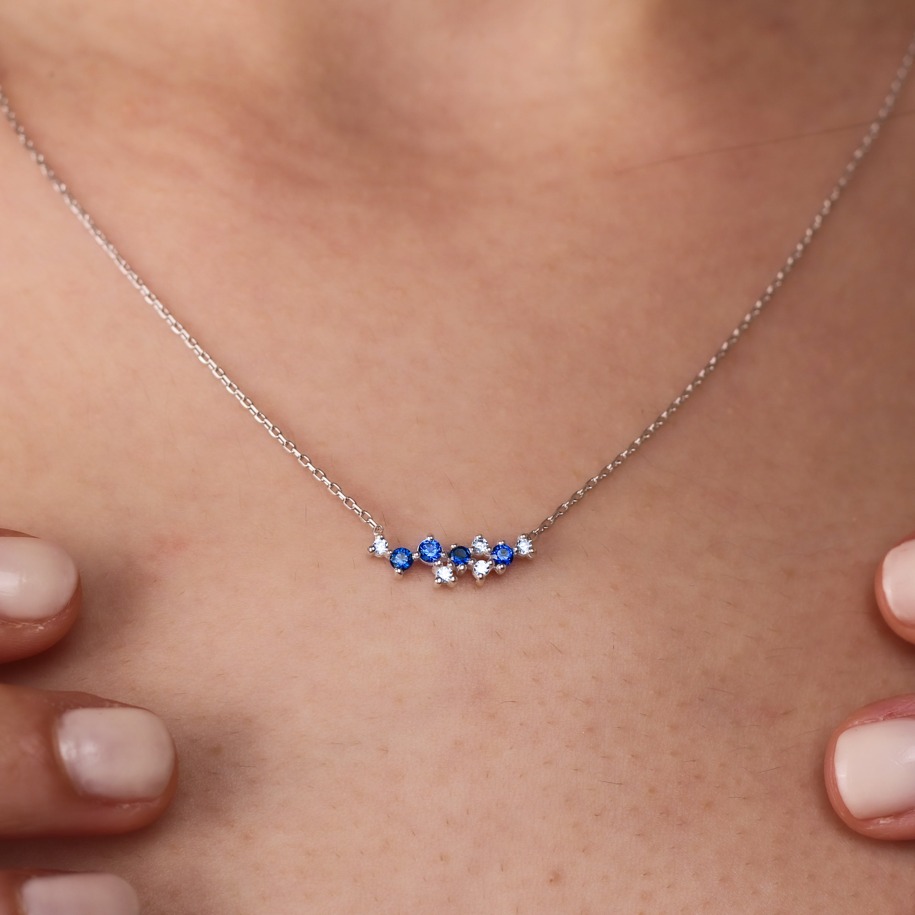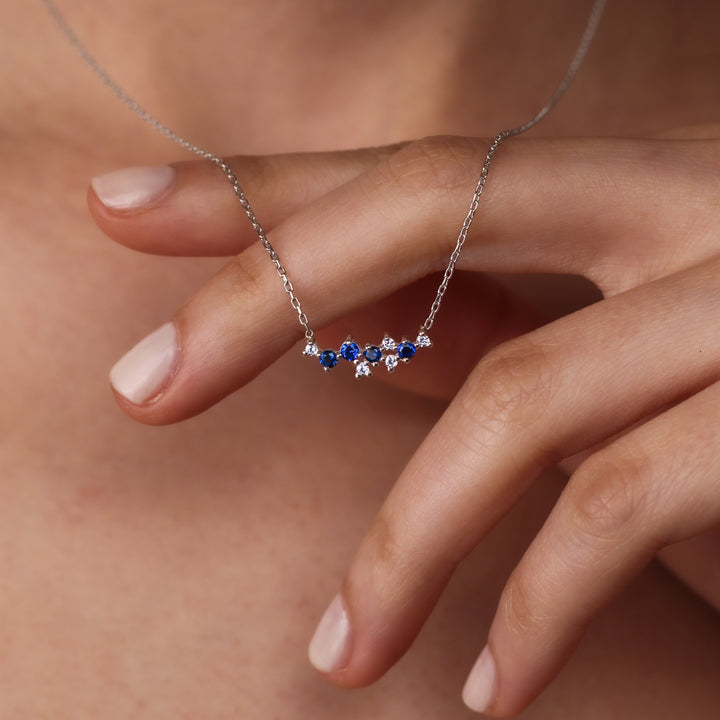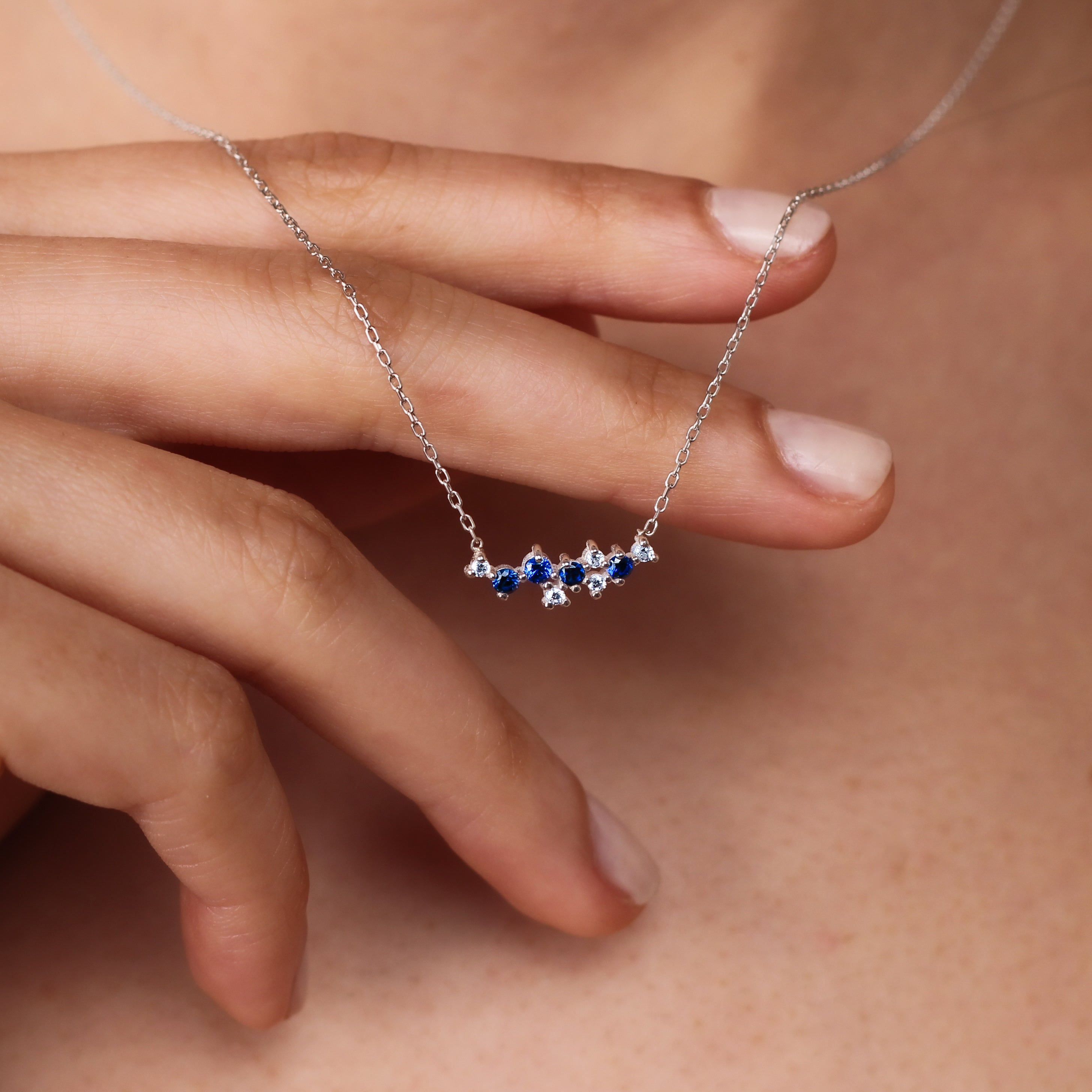 LARA Sapphire Cluster Necklace | 8K & 14K Gold Gemstone Pendant with CZ Accents