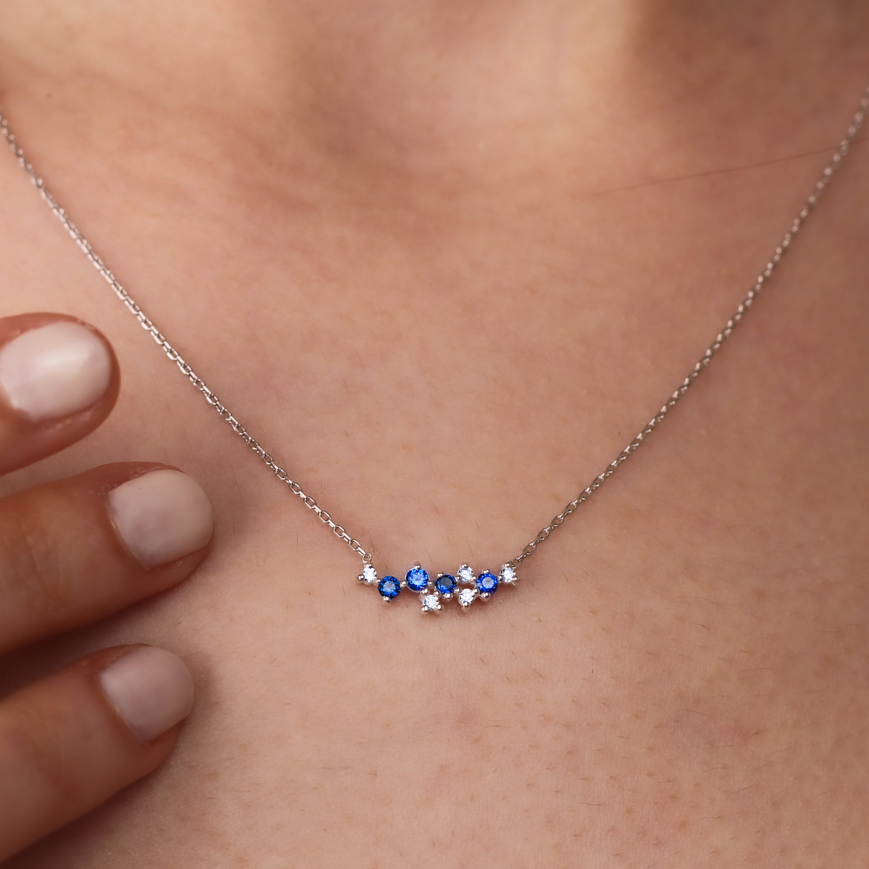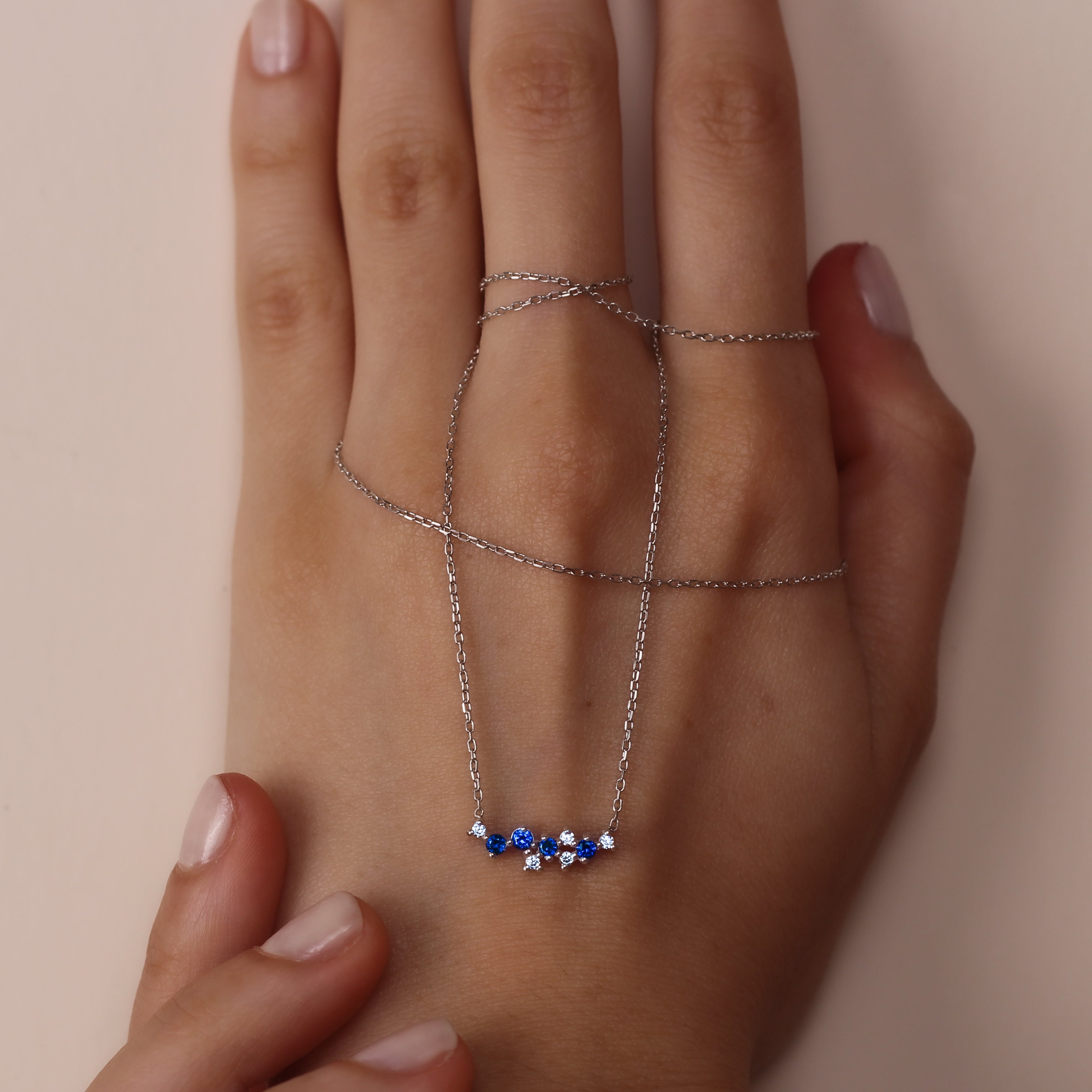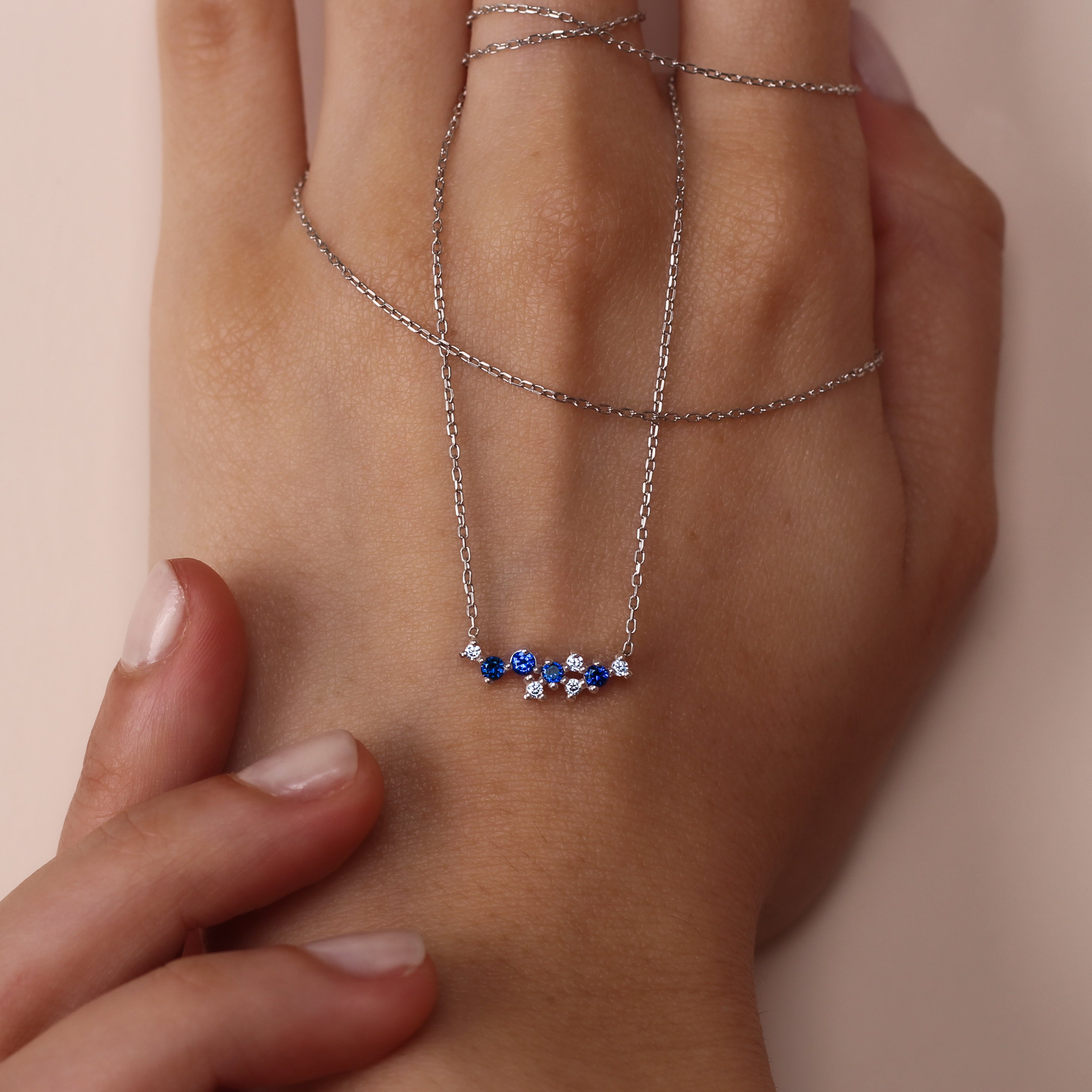 Add a touch of elegance to your jewelry collection with this exquisite Sapphire Cluster Necklace. Featuring a harmonious arrangement of vibrant sapphire gemstones accented by sparkling cubic zirconia, this luxurious pendant is available in 8K or 14K solid gold. Perfect for anniversaries, romantic gestures, or as a timeless addition to any jewelry collection, this necklace is designed to captivate and impress.