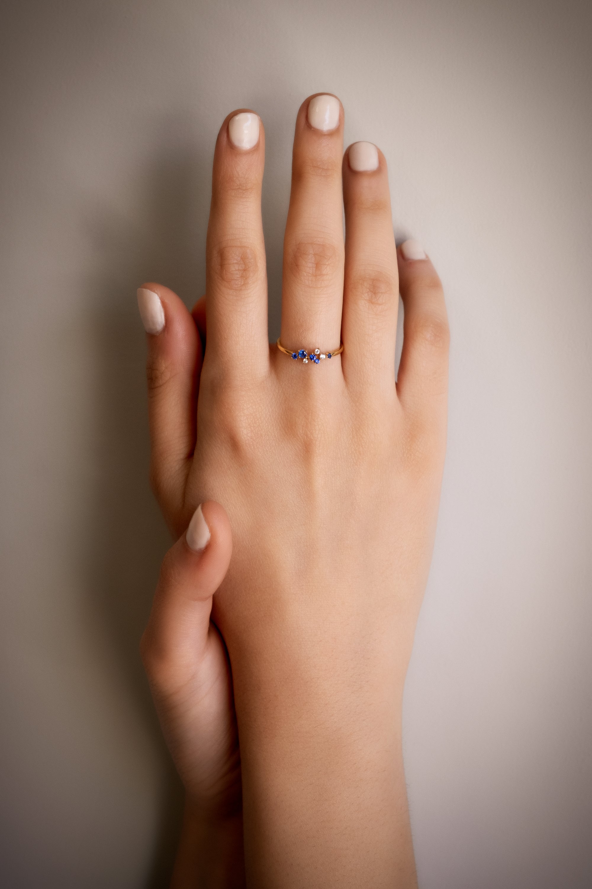 ISOLDE Exquisite Sapphire and Diamond Cluster Ring in 8K or 14K Solid Gold | Elegant and Dainty Fine Jewelry
