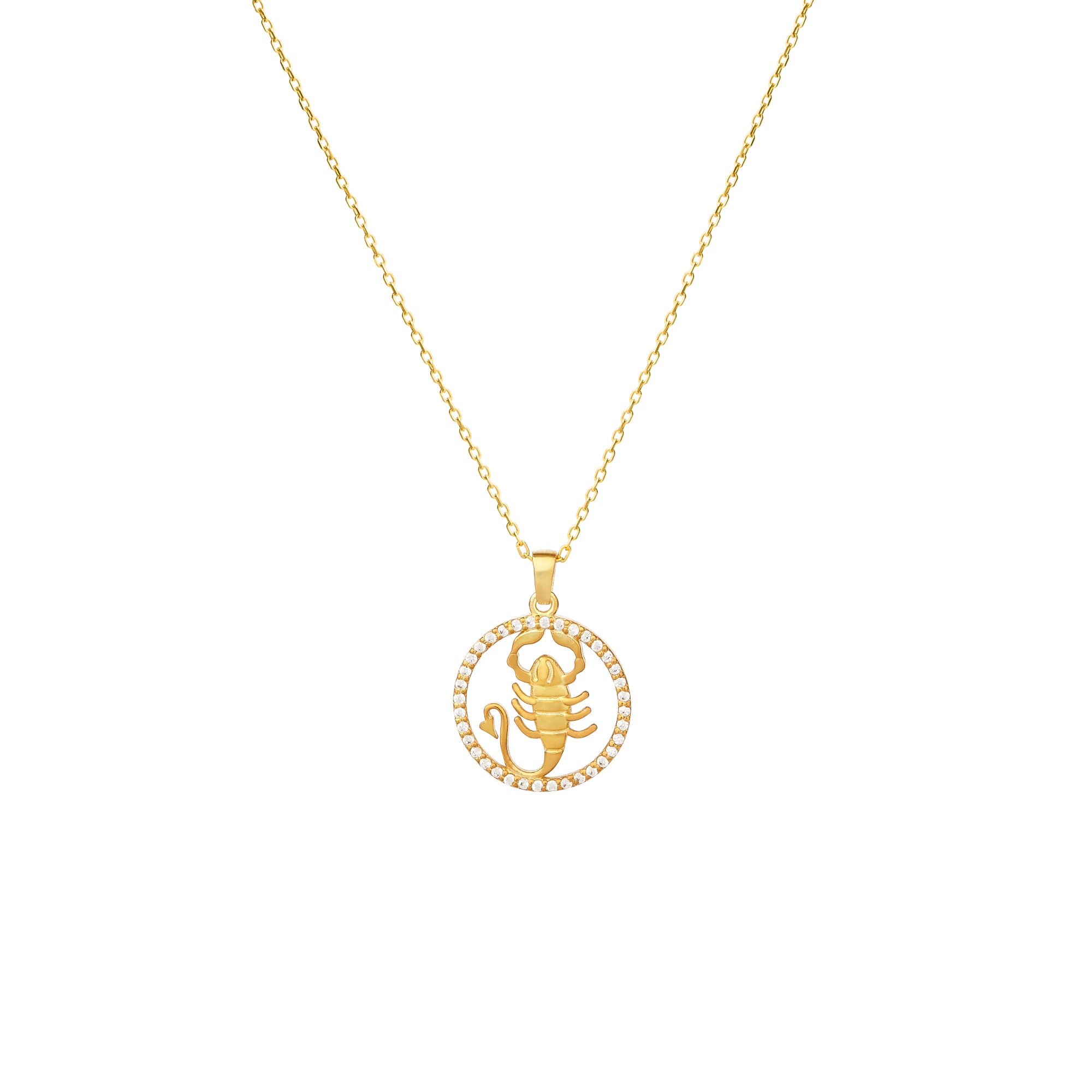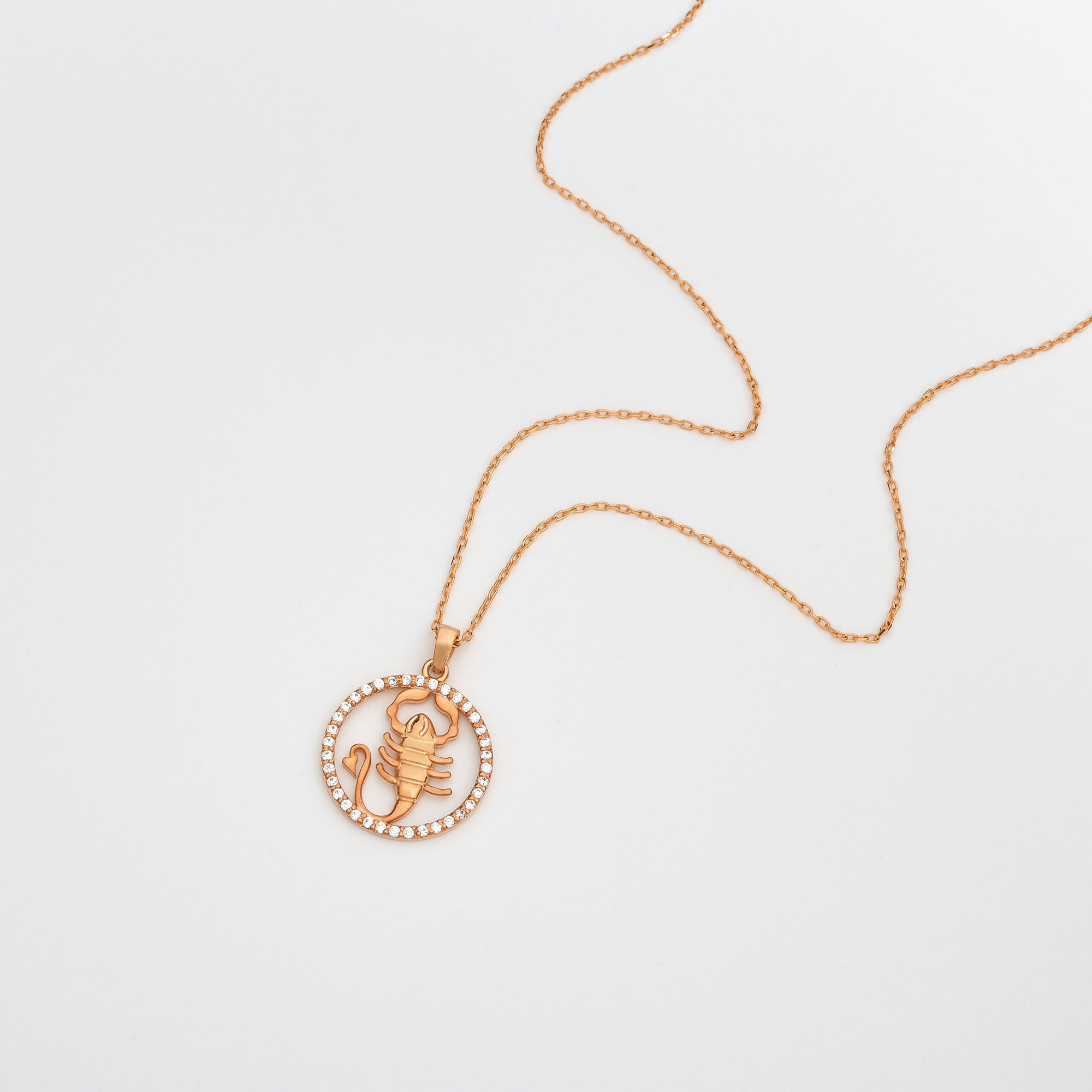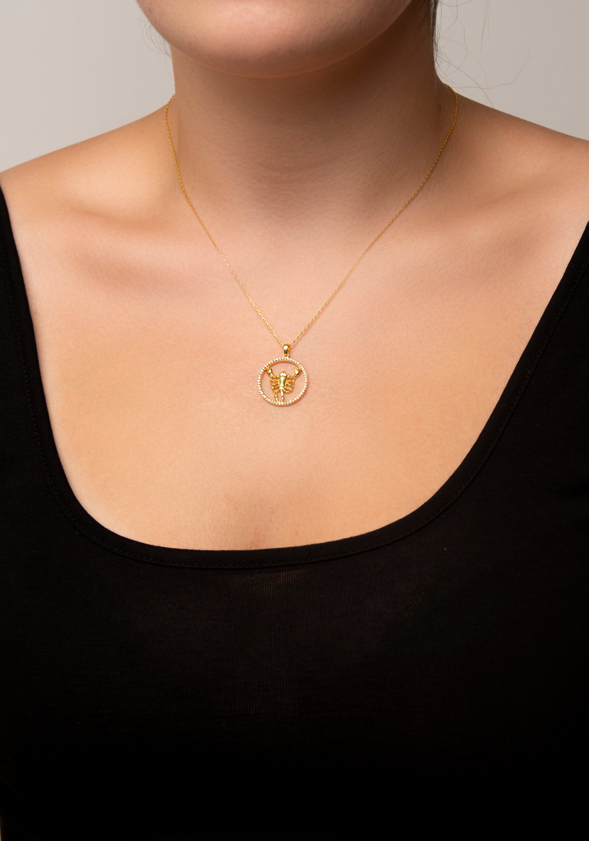 SCORPIO Zodiac Necklace 14K Gold Diamond 0.22 ct
