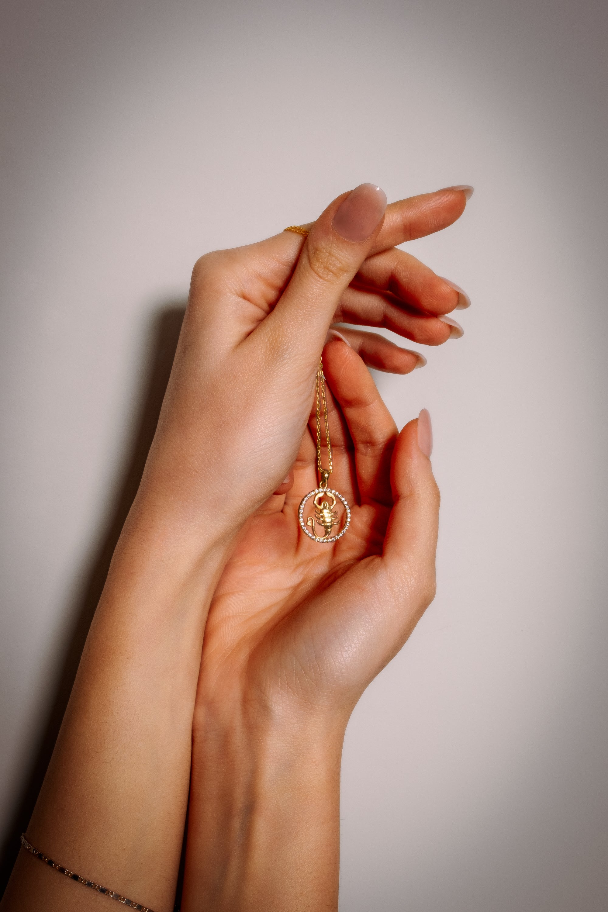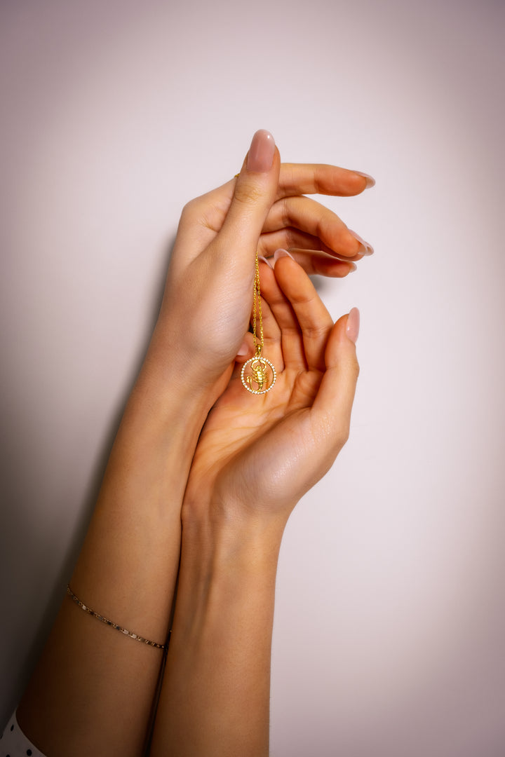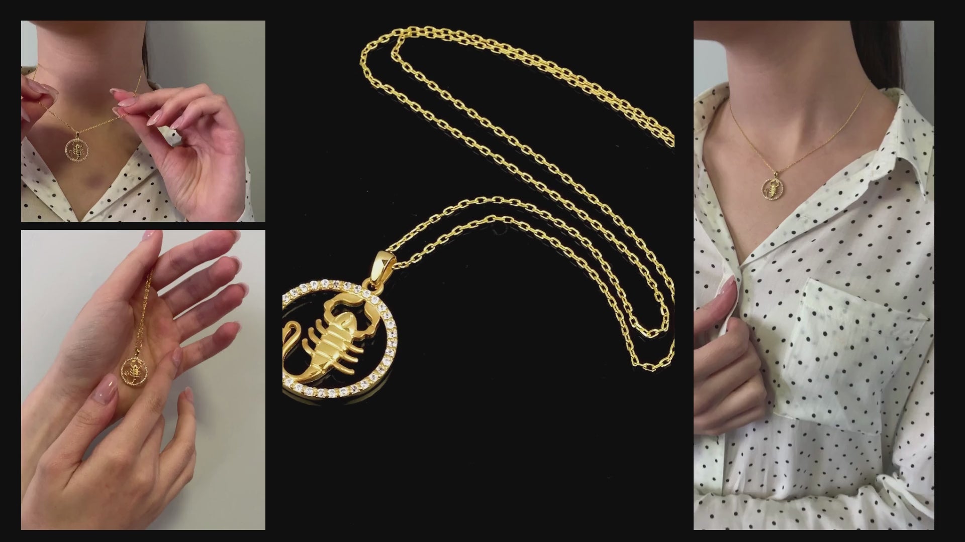 SCORPIO Zodiac Necklace 14K Gold Diamond 0.22 ct