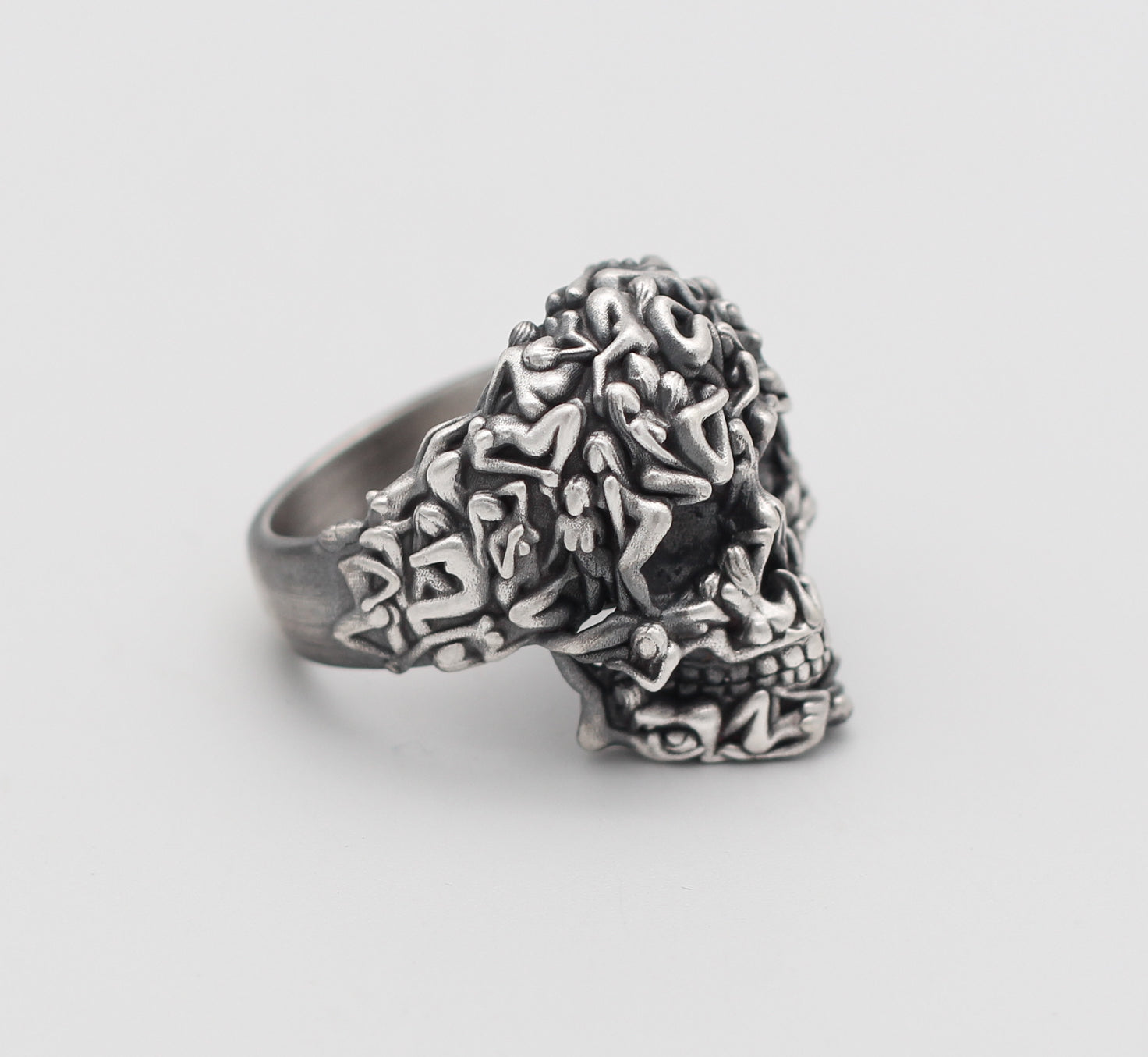 Skull With The Naked Girls Ring, One Of A Kind Gothic Ring For Men