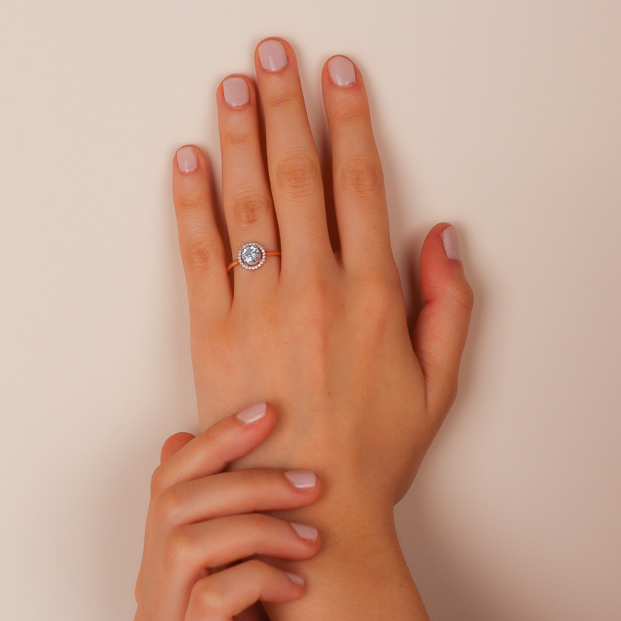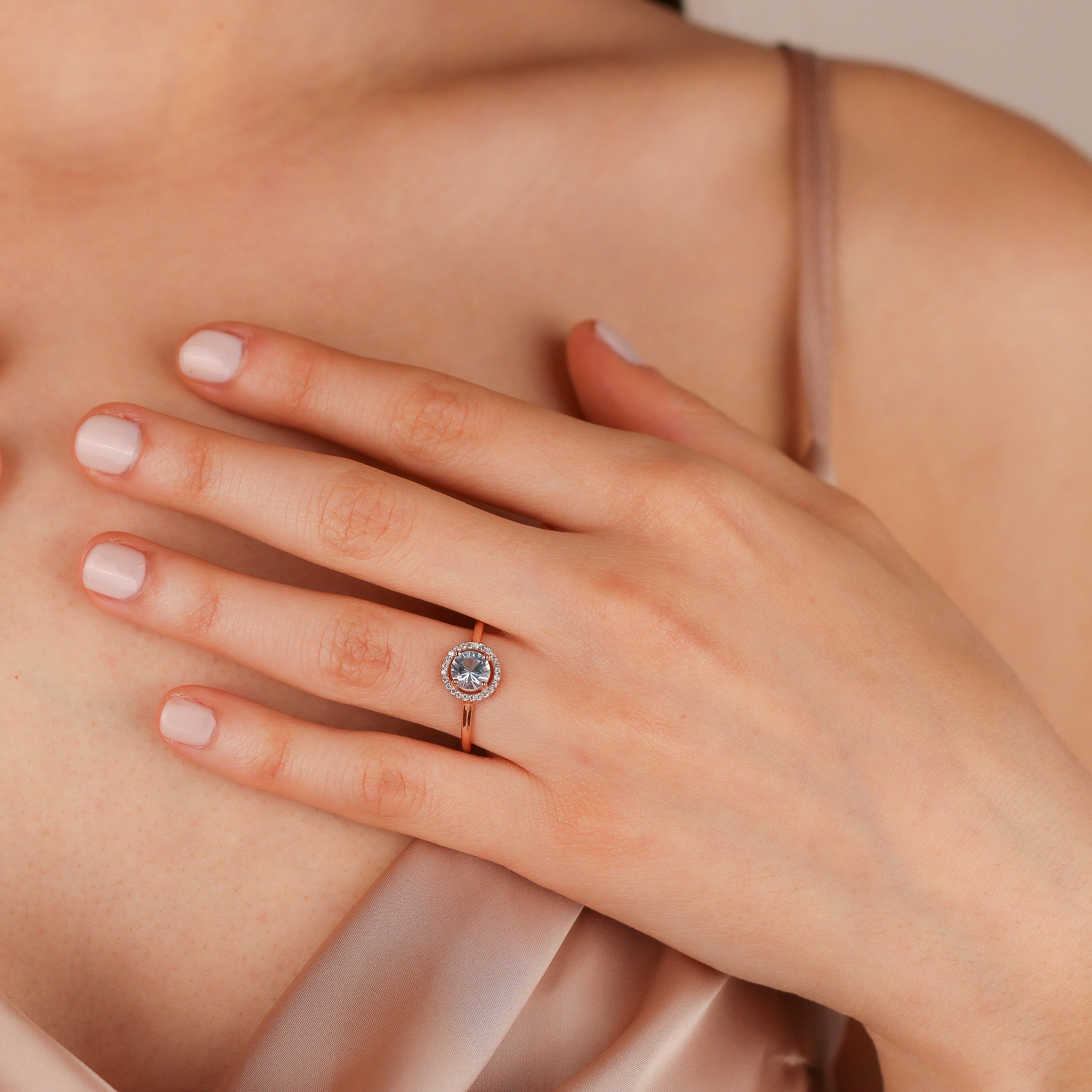 ISLA Glittering Sky Topaz Halo Wedding Ring for Her | Zircon or Diamond Accents Natural Stone Ring