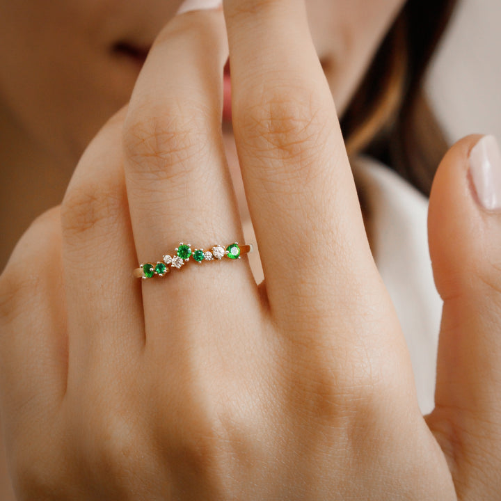 COSETTE Elegant Solid Gold Ring with Lush Emerald Stones | Handmade Emerald Jewelry for Women