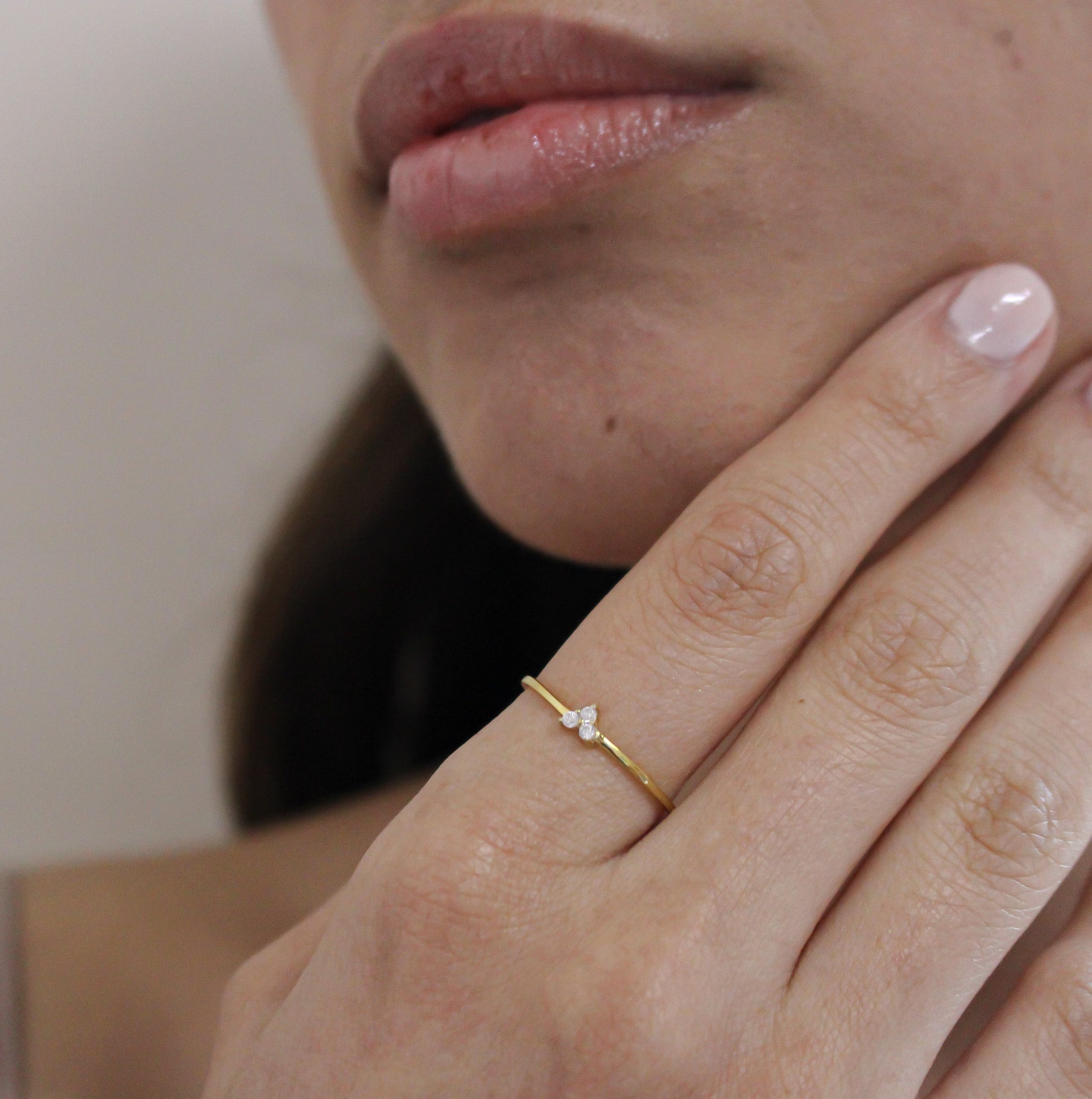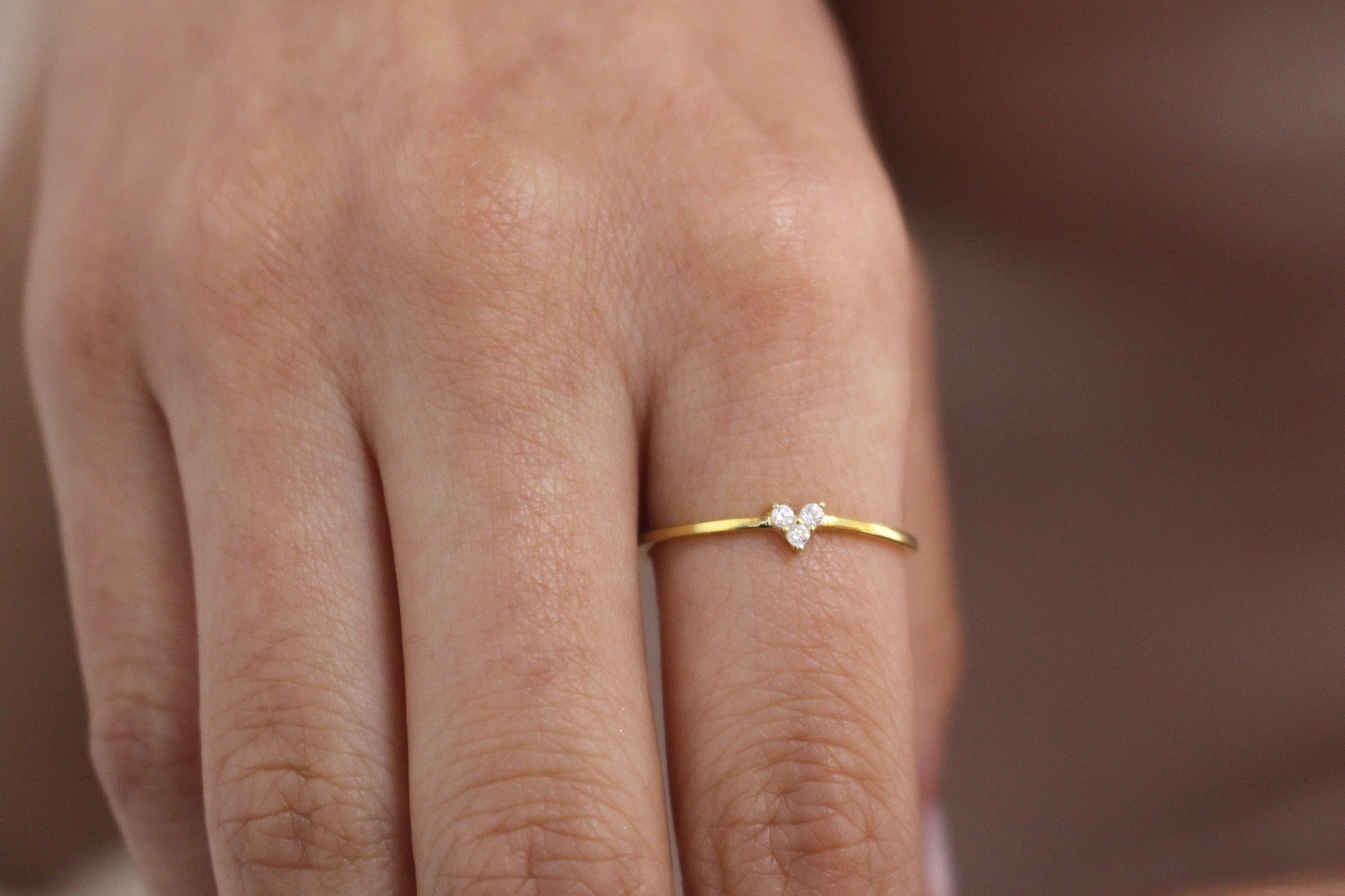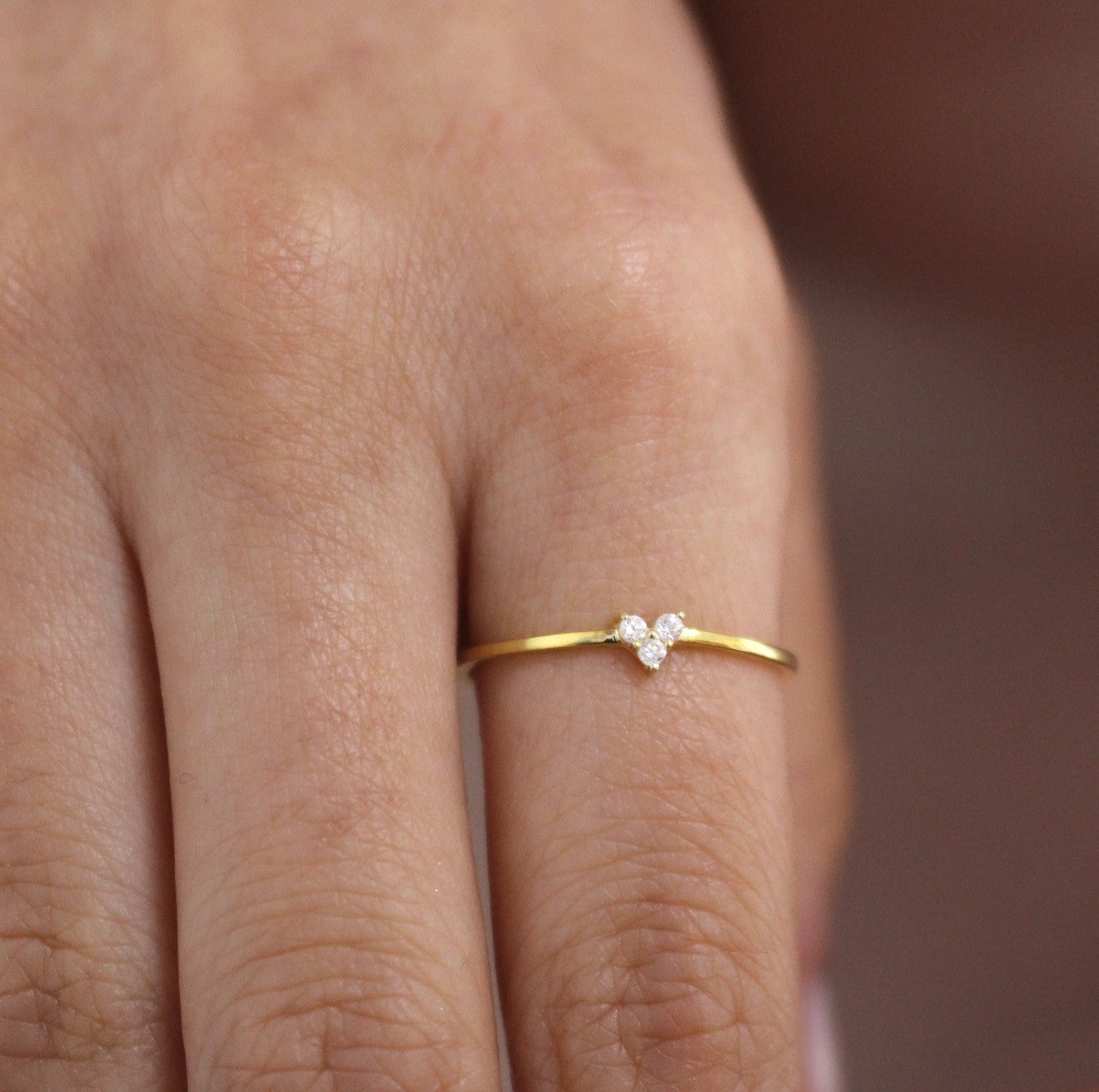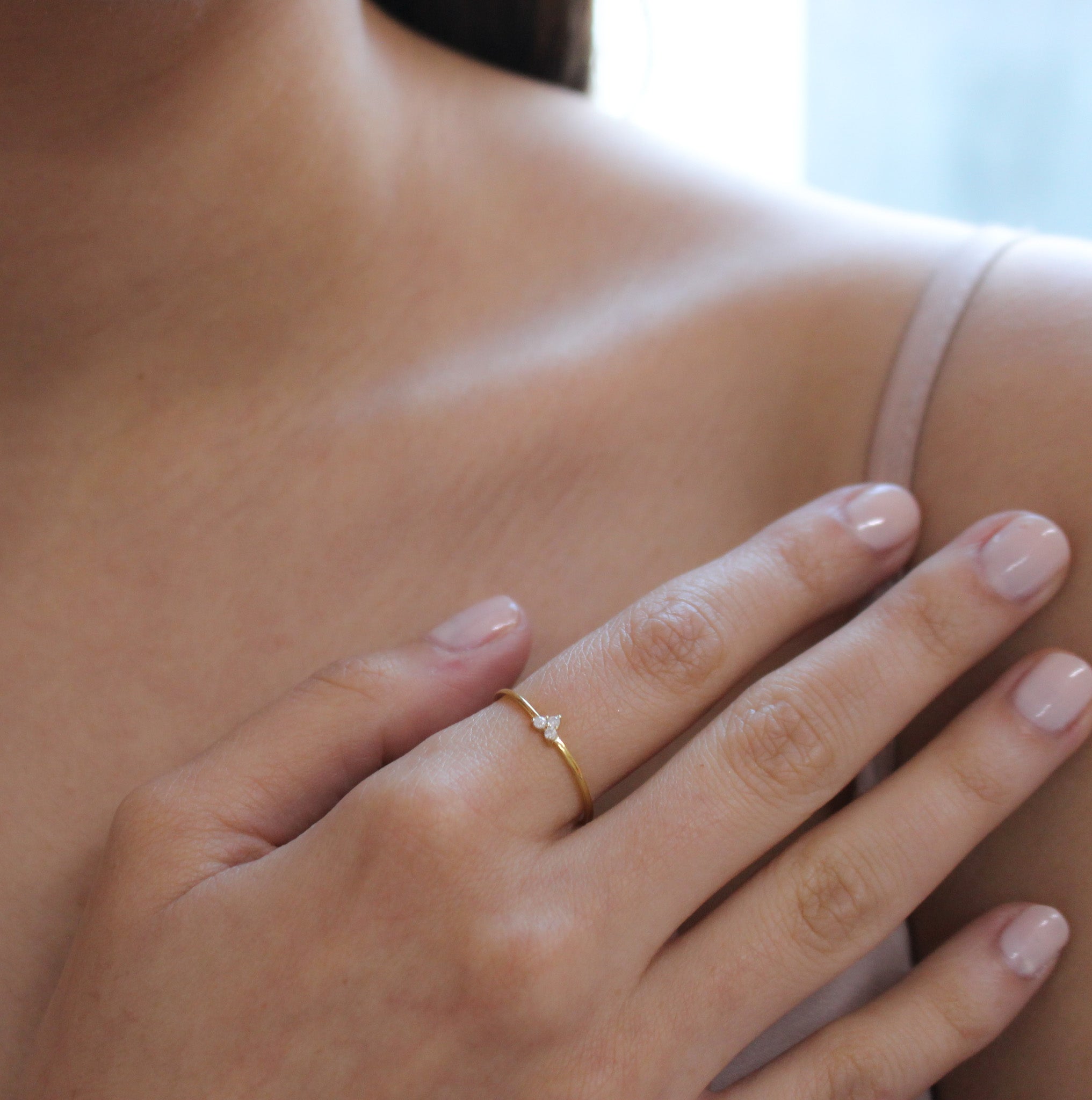 LAVINIA Minimalist Zircon or Diamond Heart Ring in 8K & 14K Solid Gold | Elegant Gift for Women