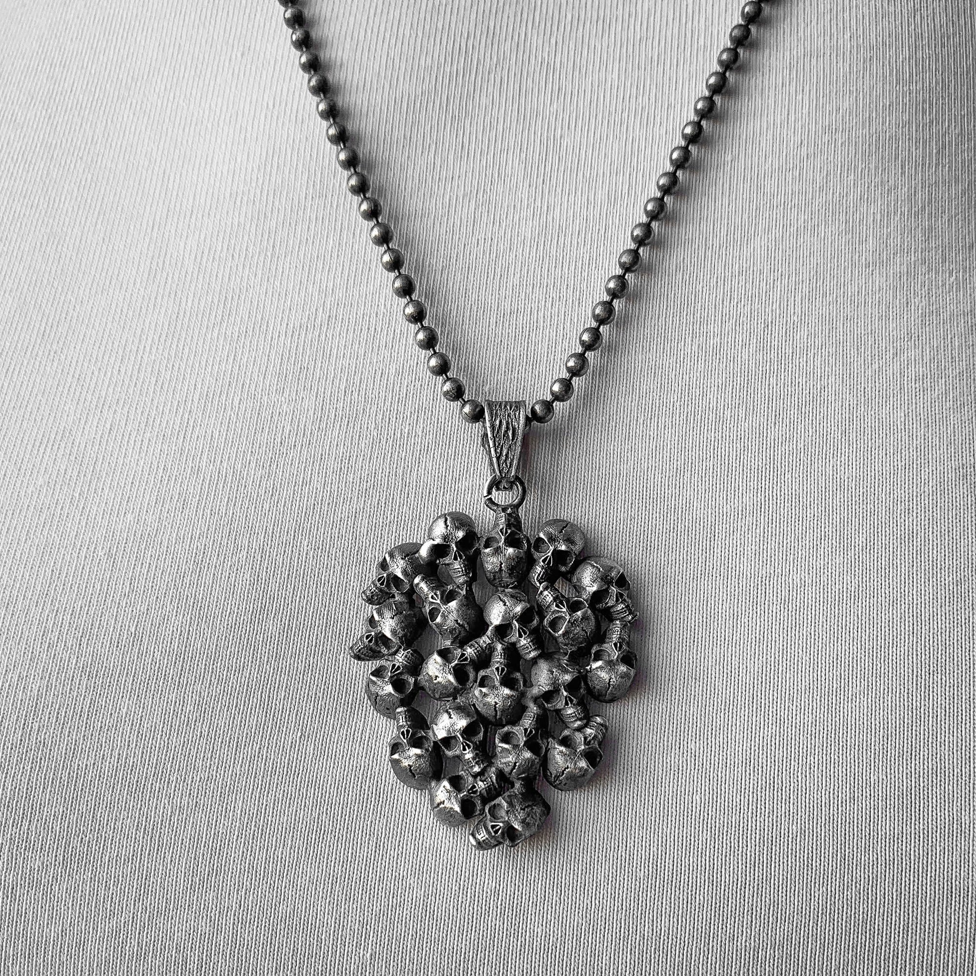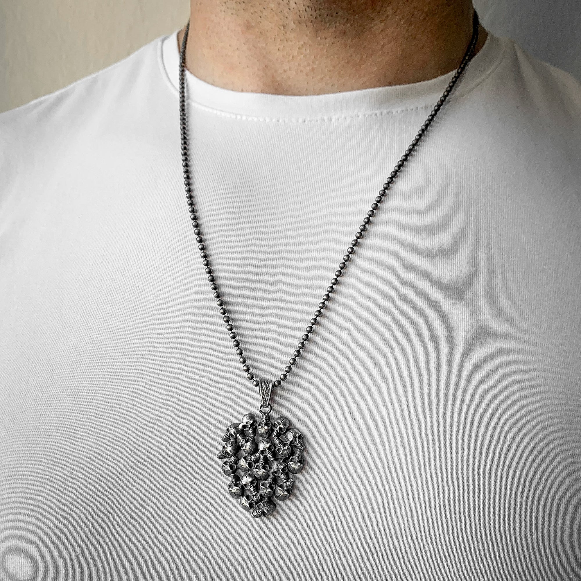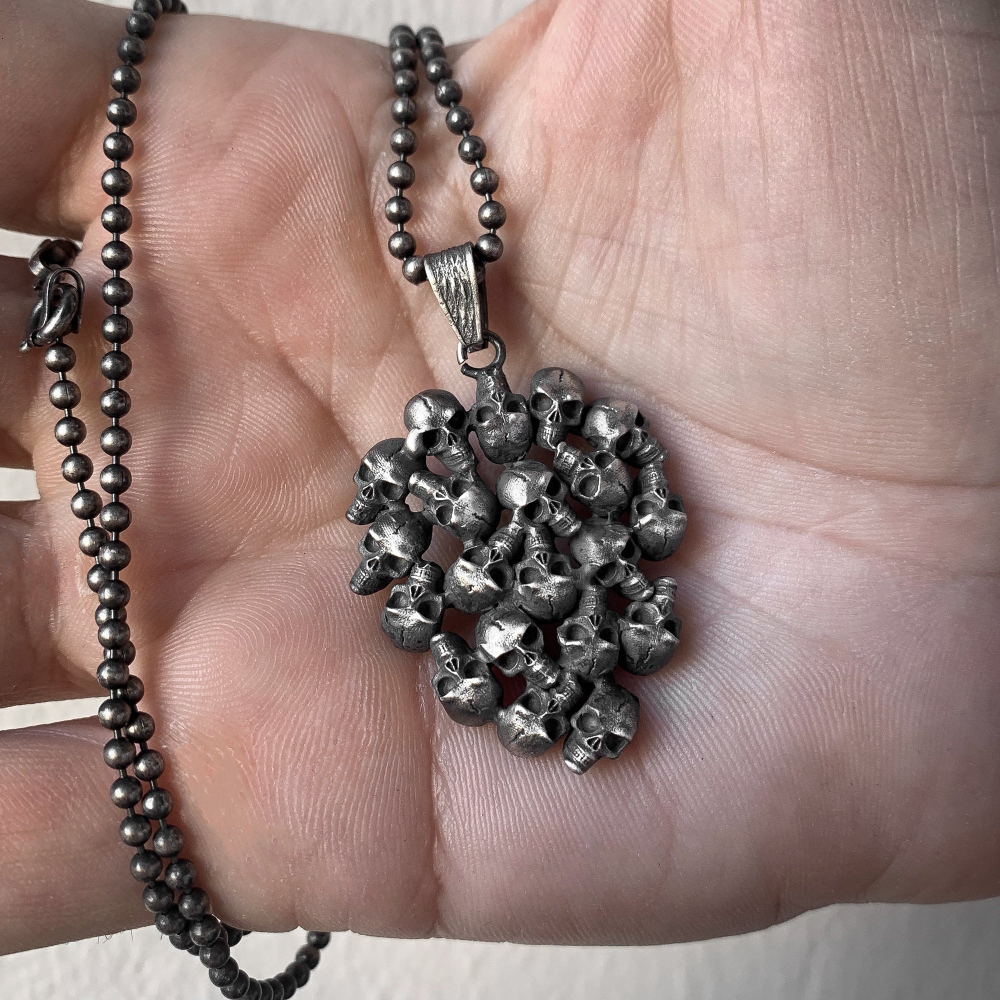Solid Silver Skull Necklace, Mens Gothic Jewelry