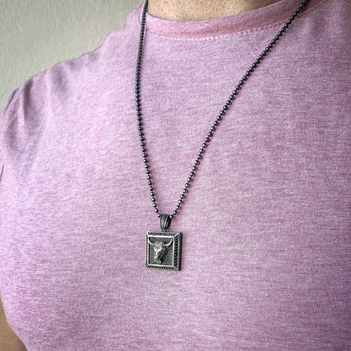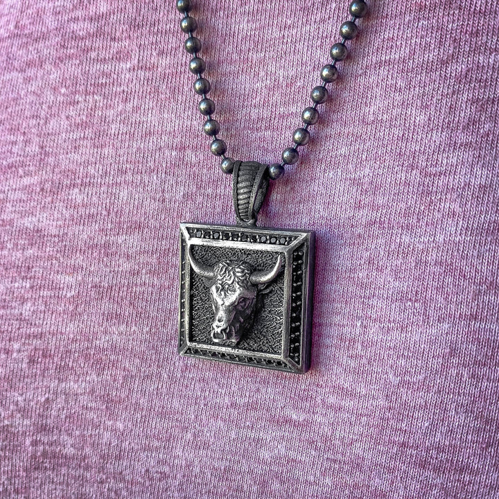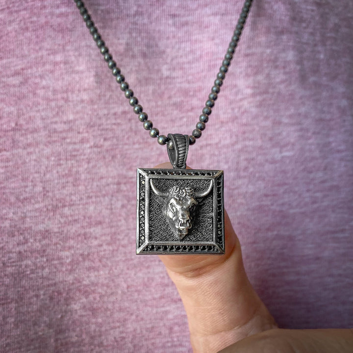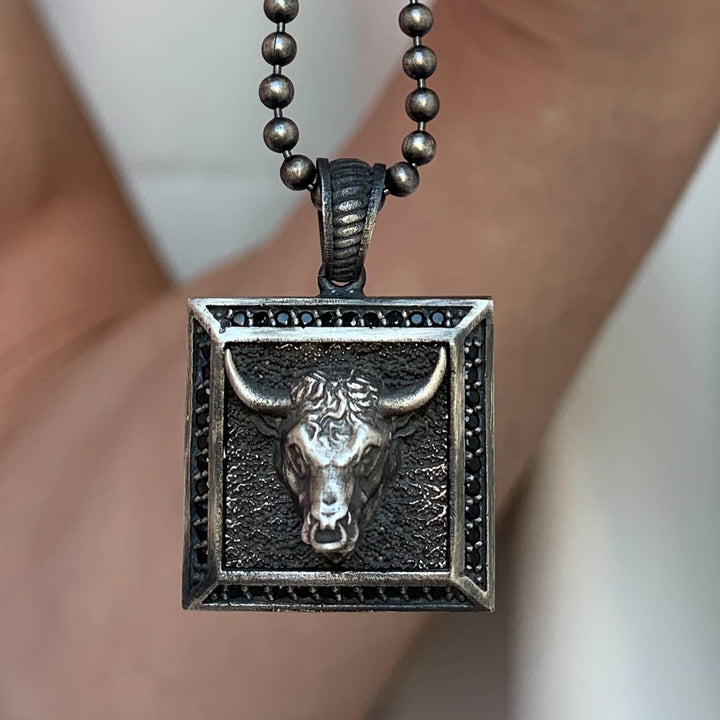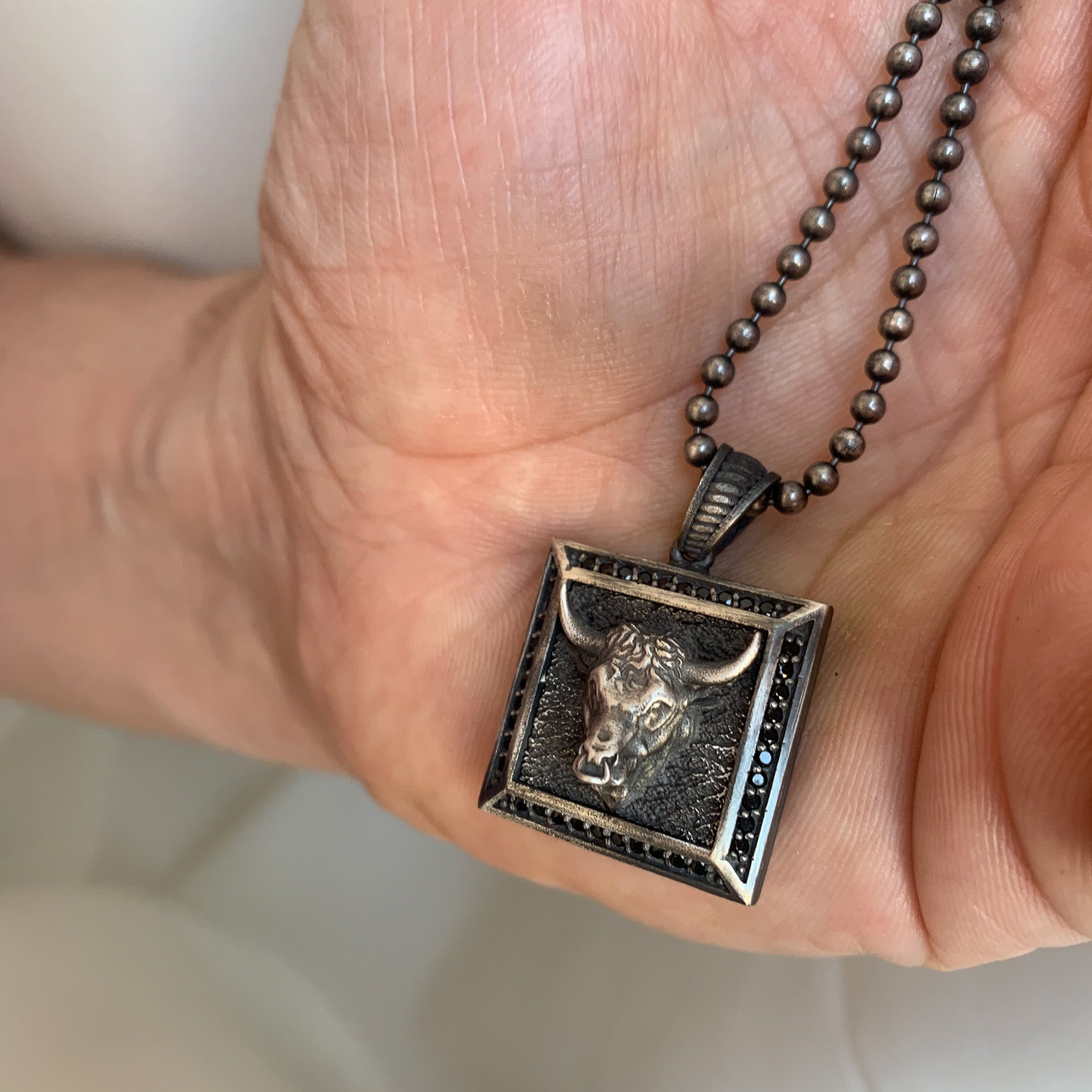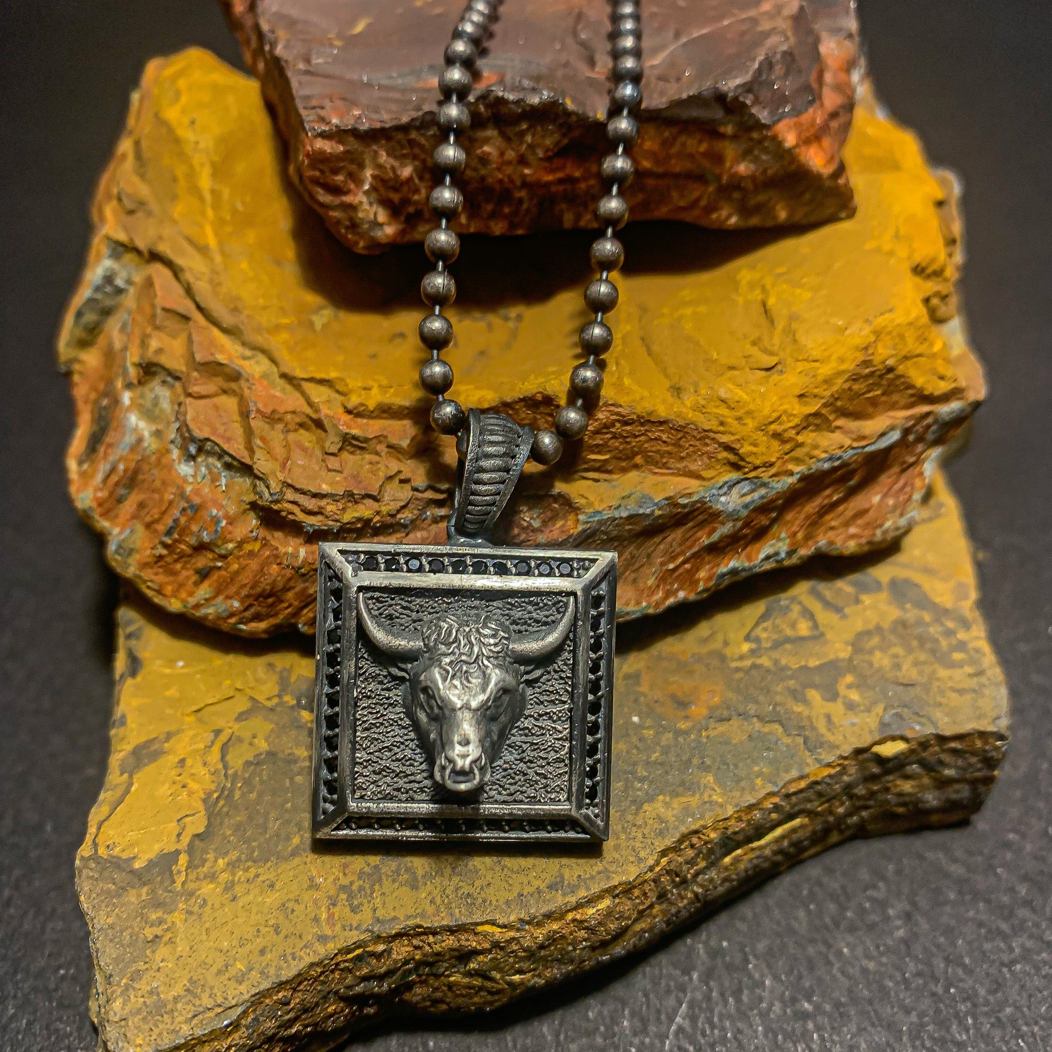Sterling Silver Bull Necklace, Bull Head Men Necklace
