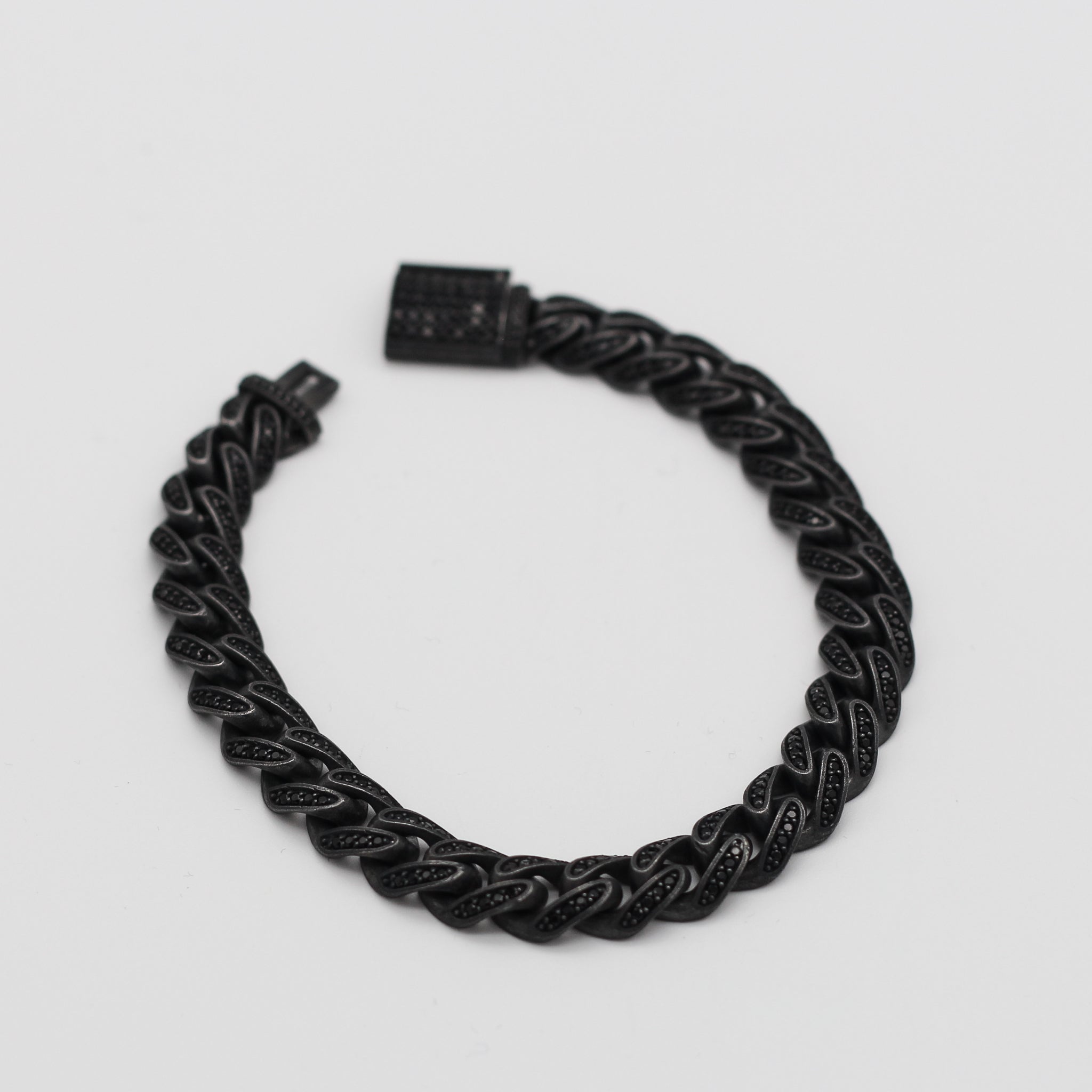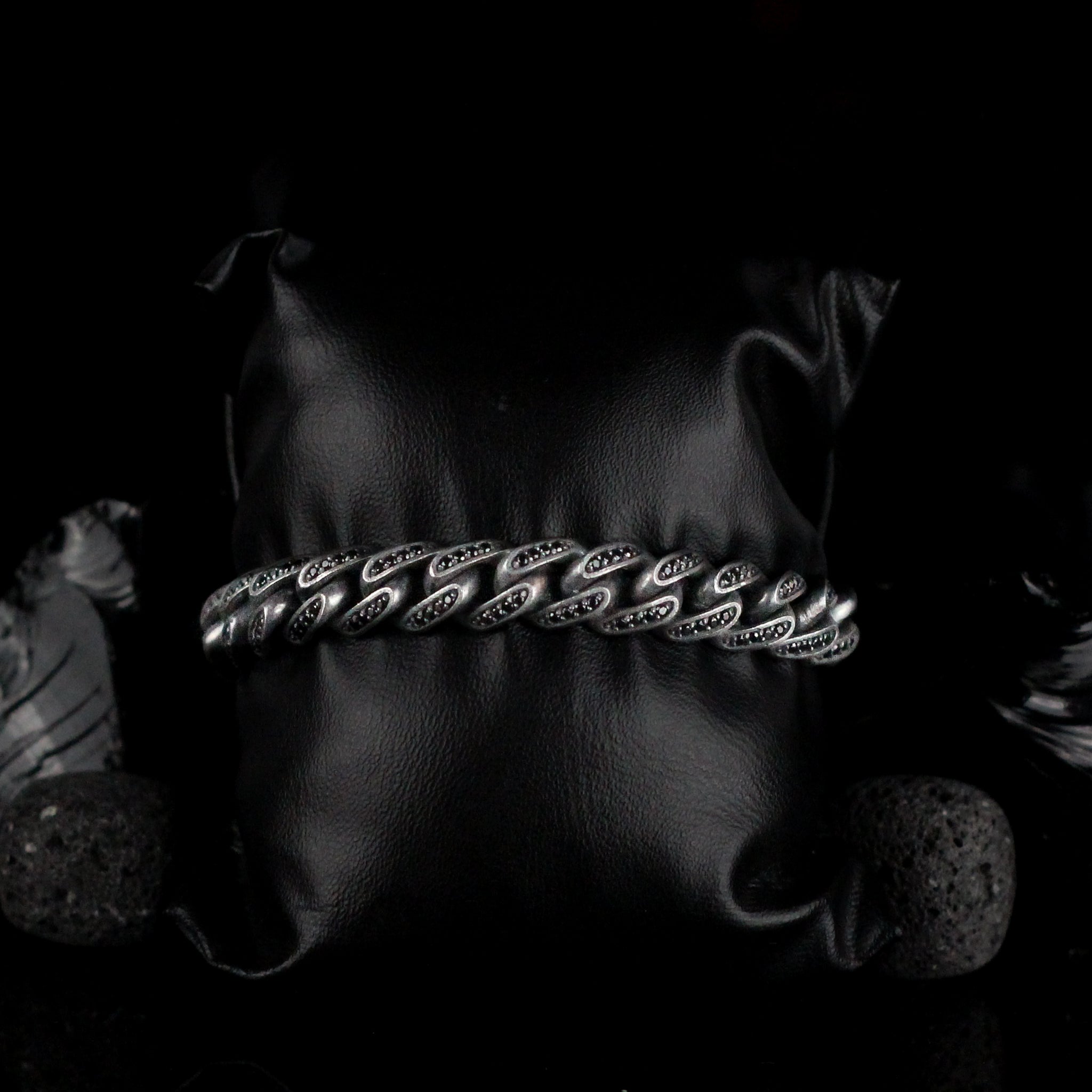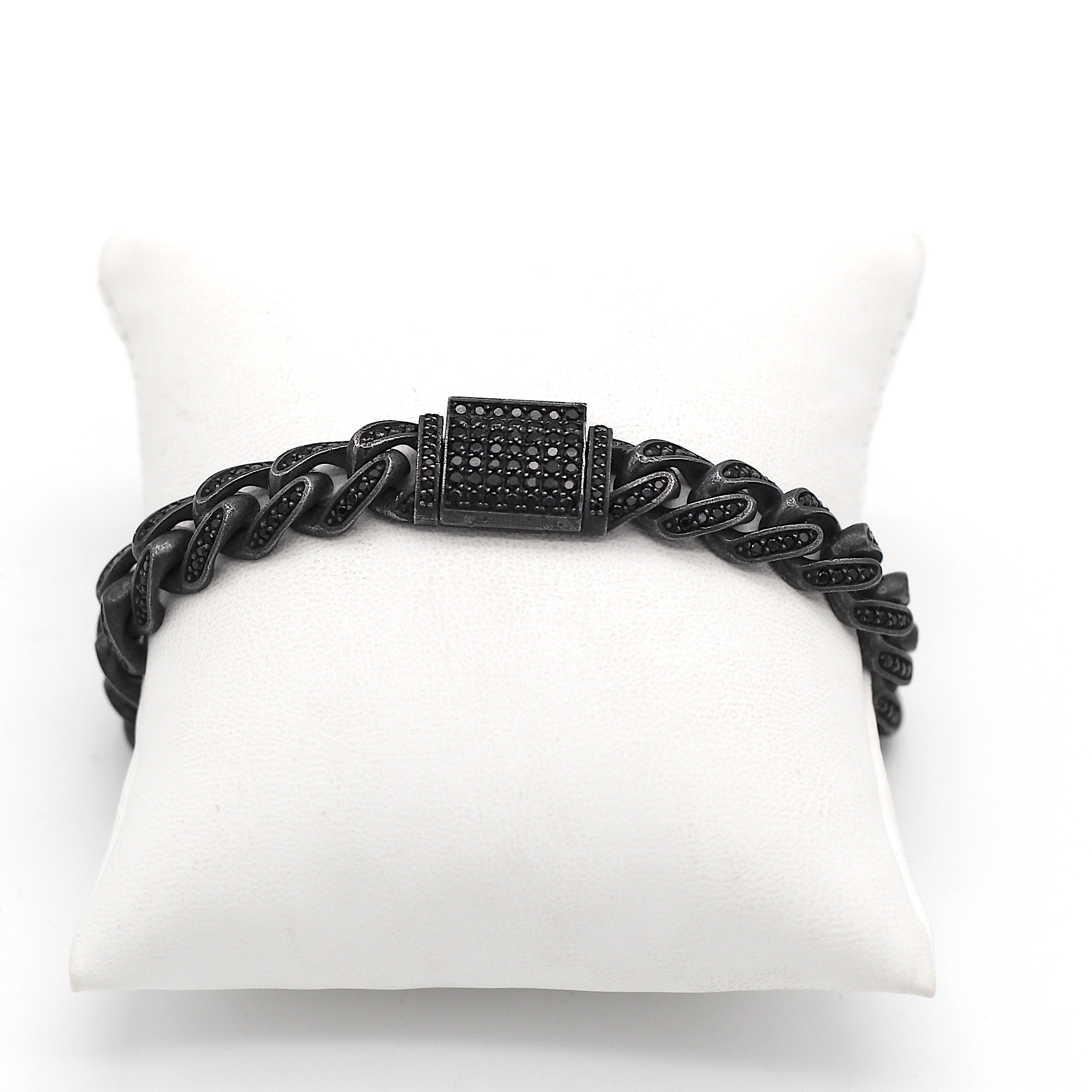 Sterling Silver Chain Bracelet, Black Stoned Chain Bracelet