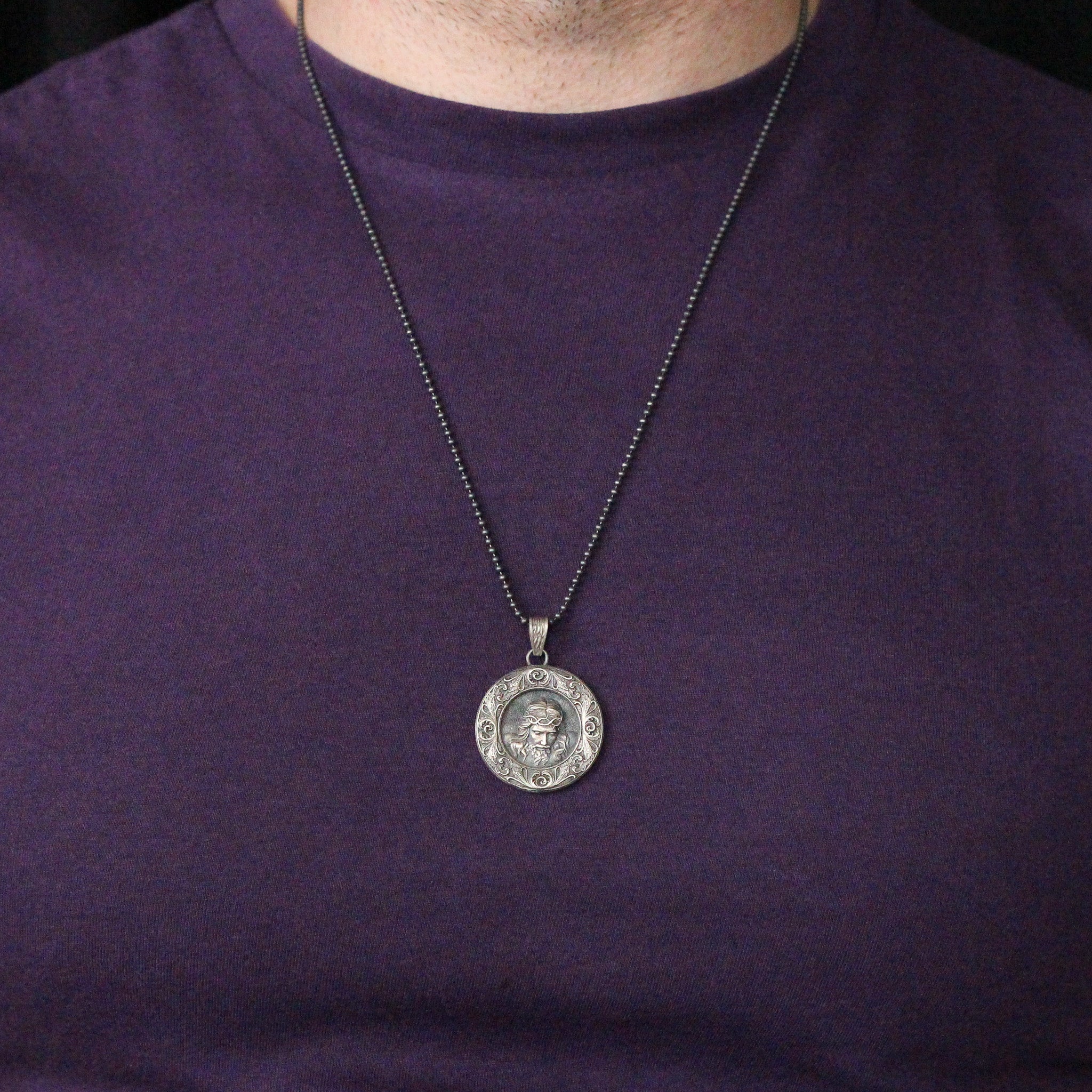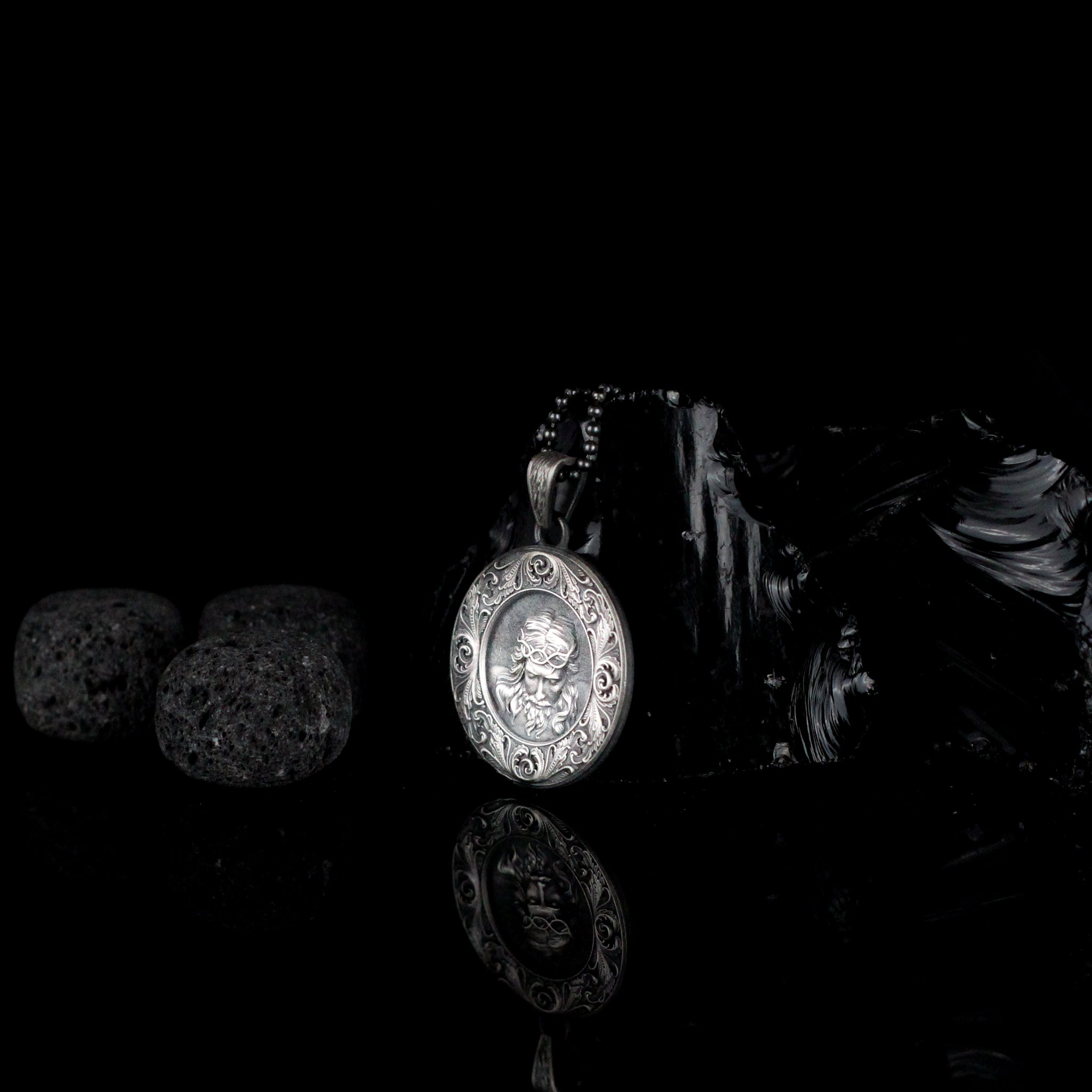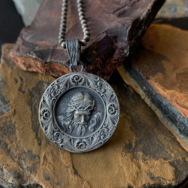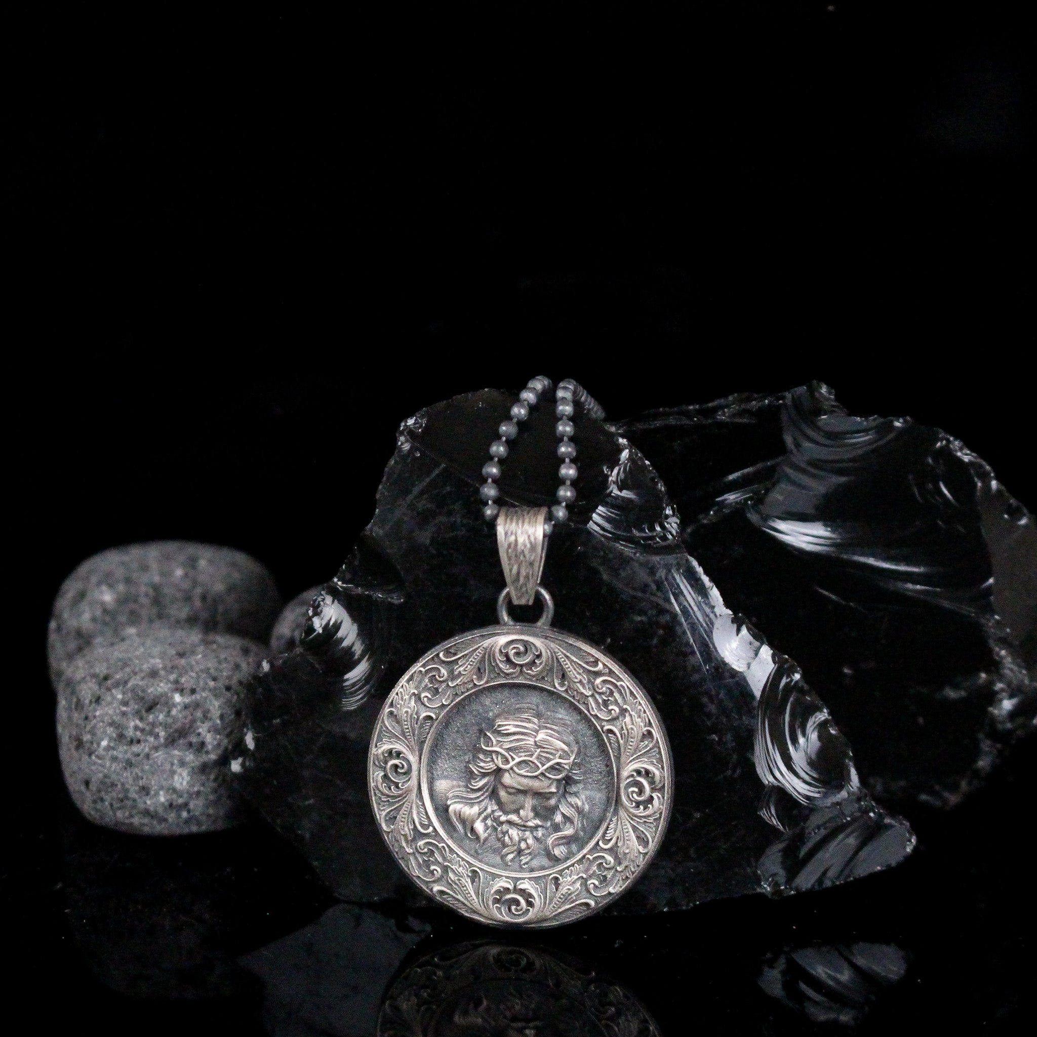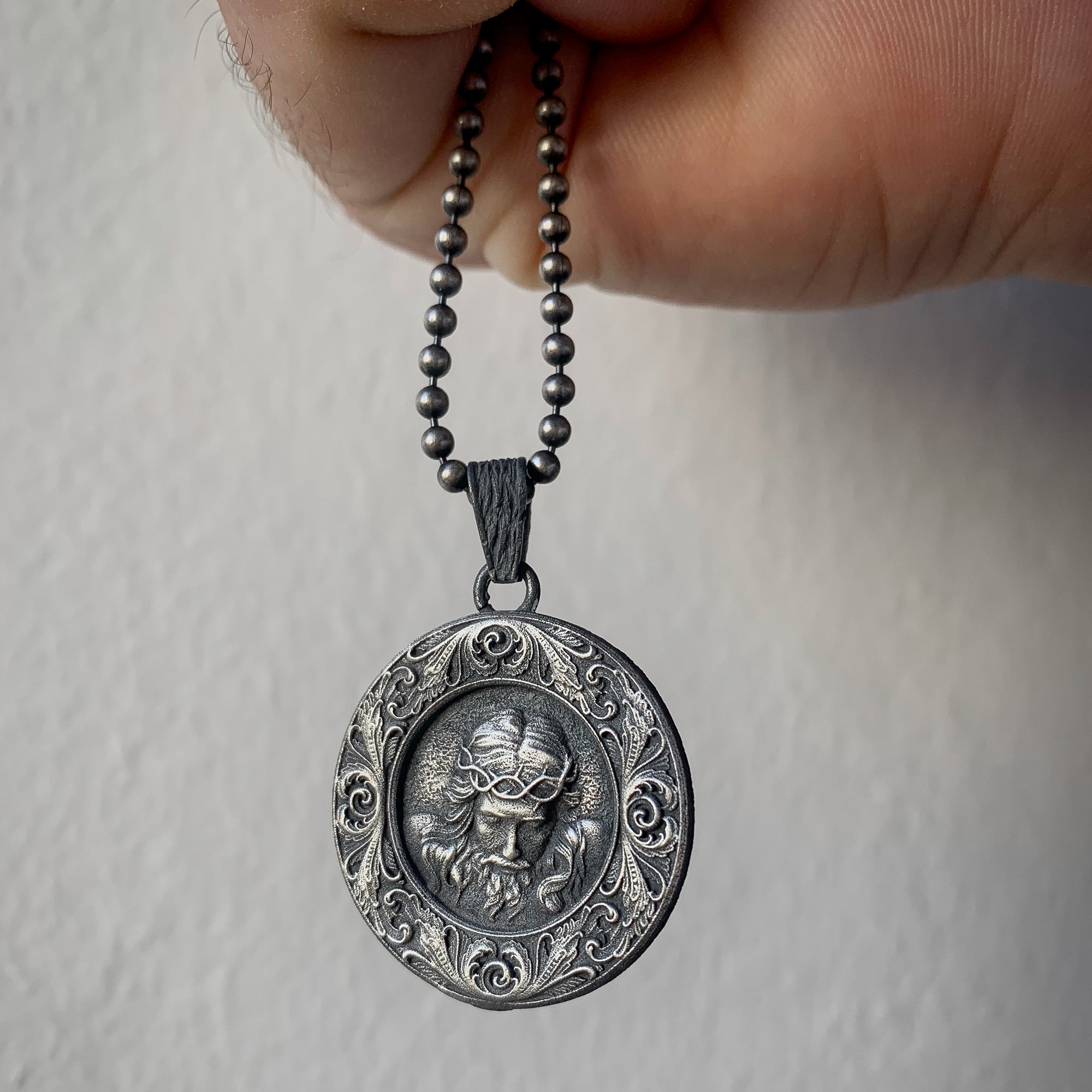 Crown of Thorns Jesus in 925K Sterling Silver | Religious Necklace for Christian Men