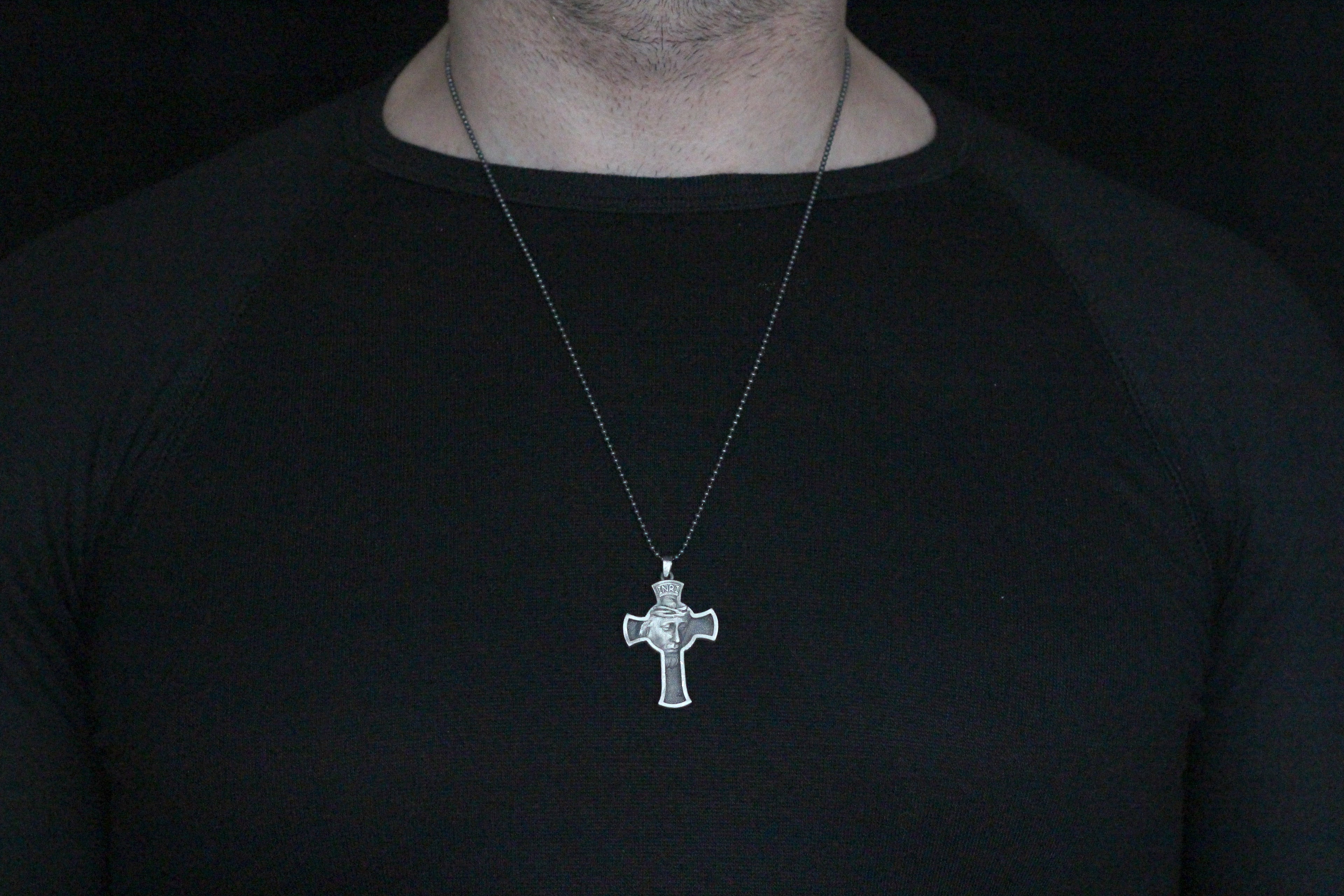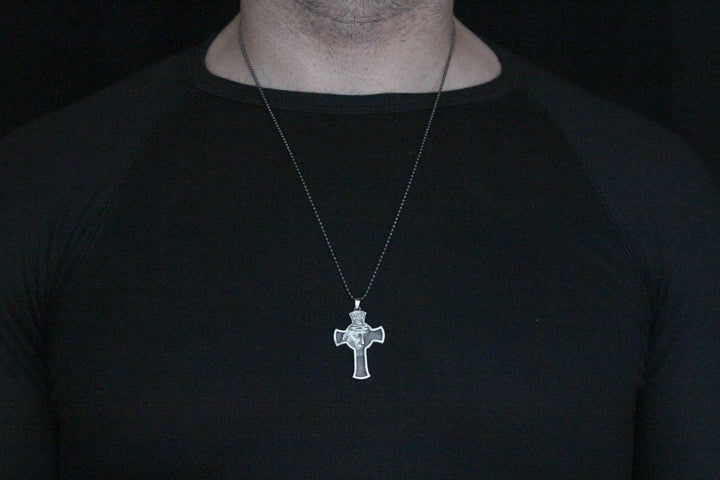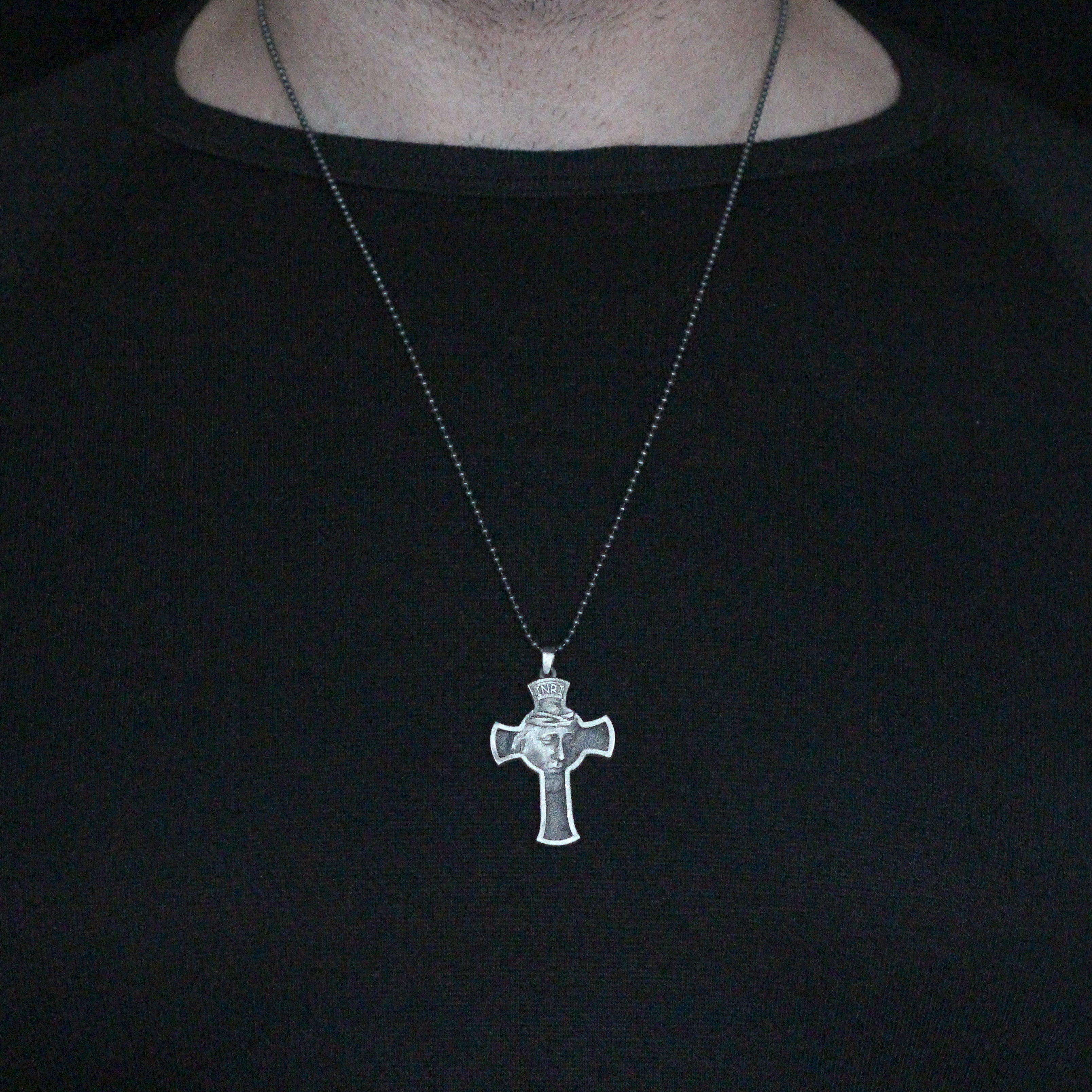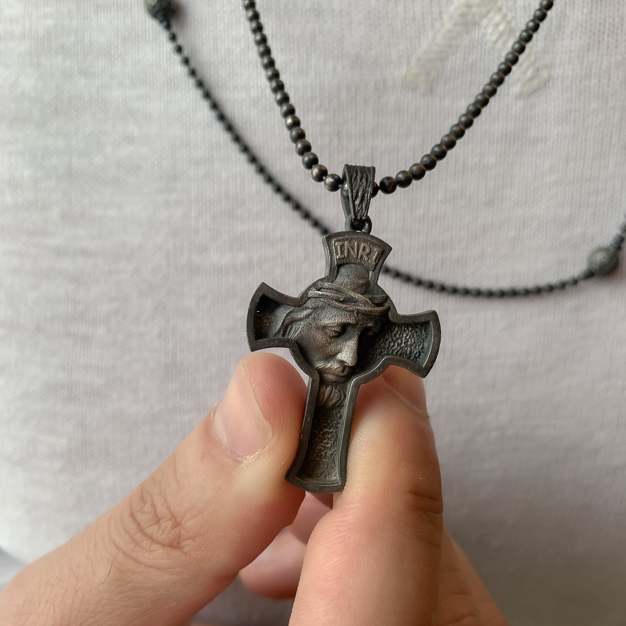 925K Sterling Silver Cross with Jesus Face Necklace | INRI Religious Necklace for Christian Men