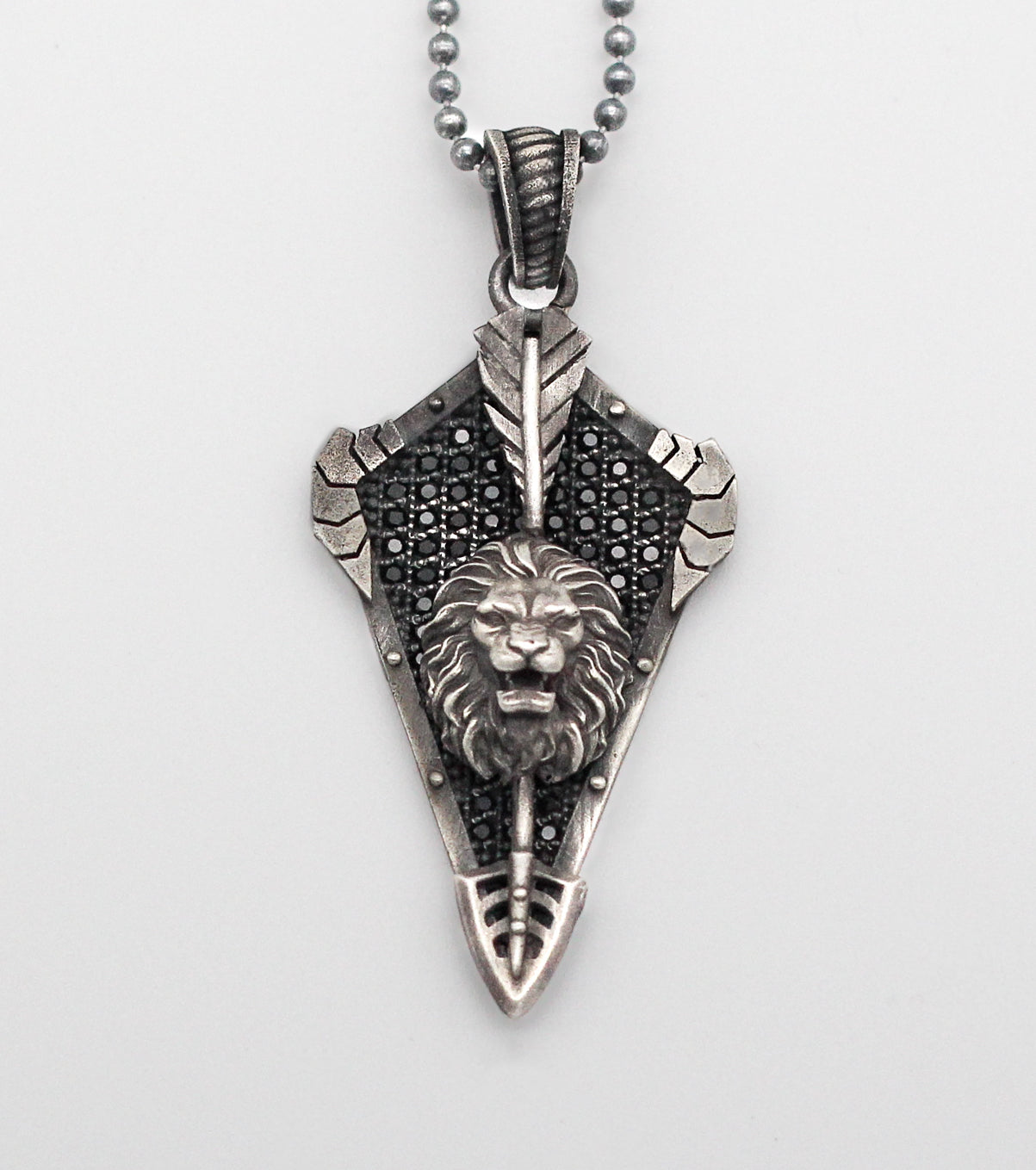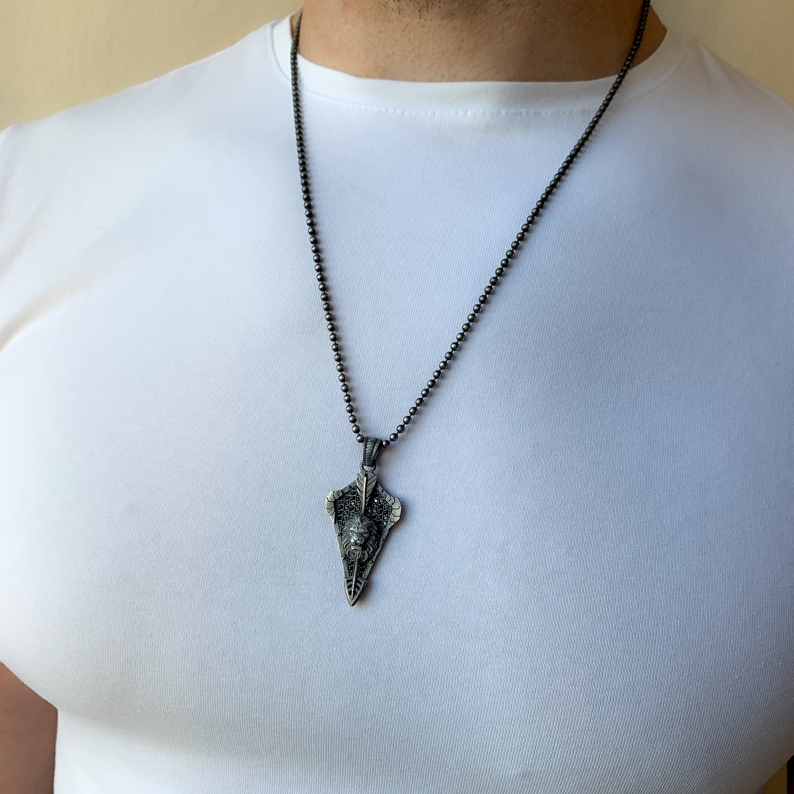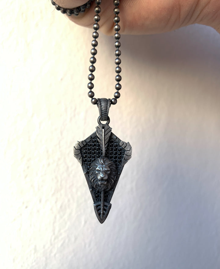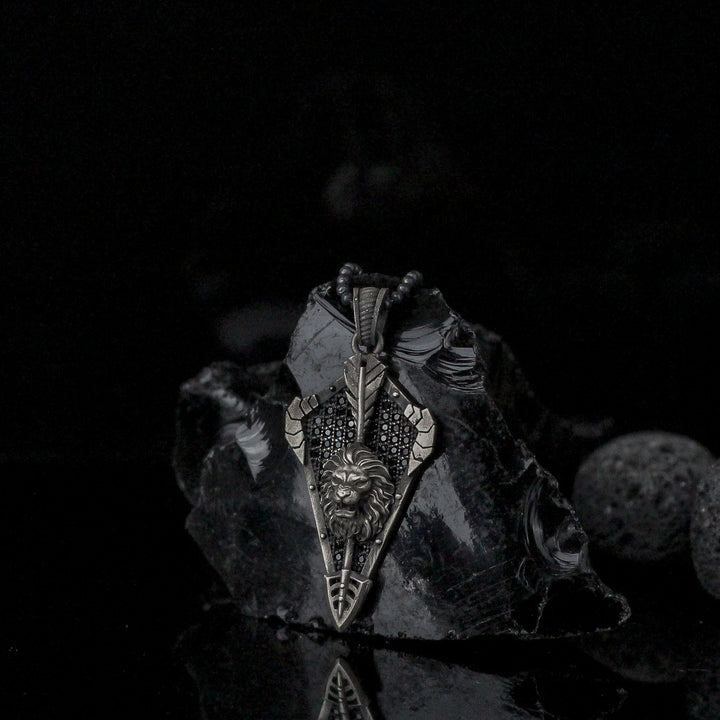 Fierce Lion Shield Necklace with Intricate Details | Majestic Lion Necklace with Black Stones