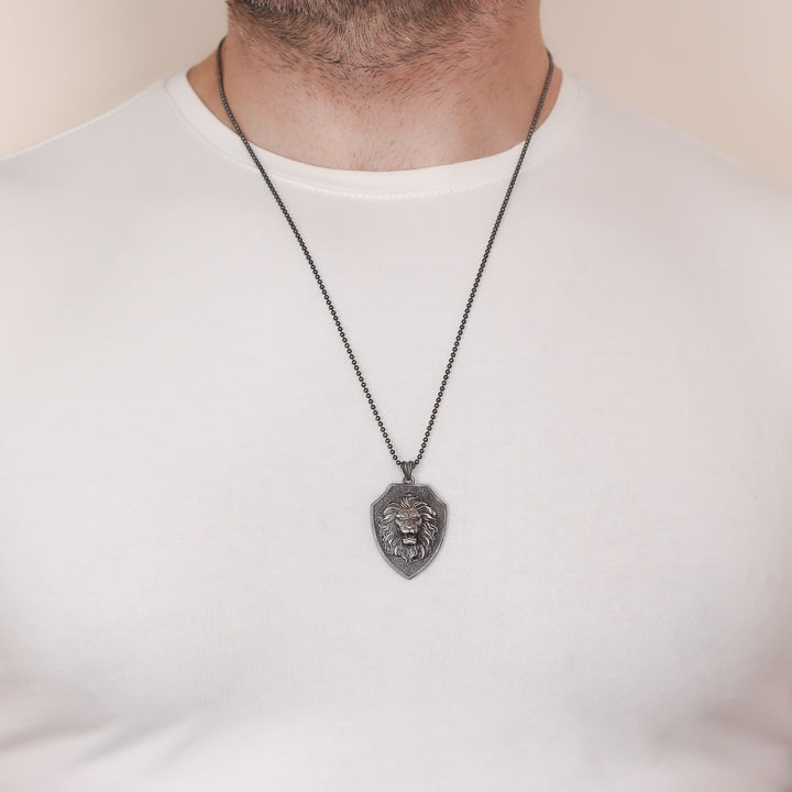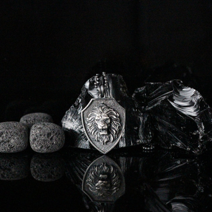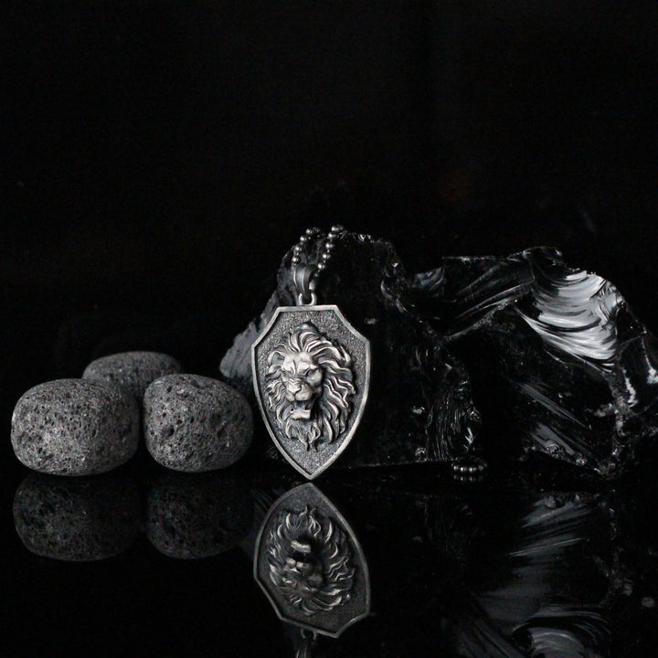 Bold Lion Shield Necklace in 925K Sterling Silver | Handcrafted Silver Lion Medallion Necklace