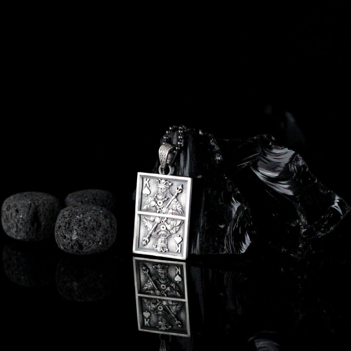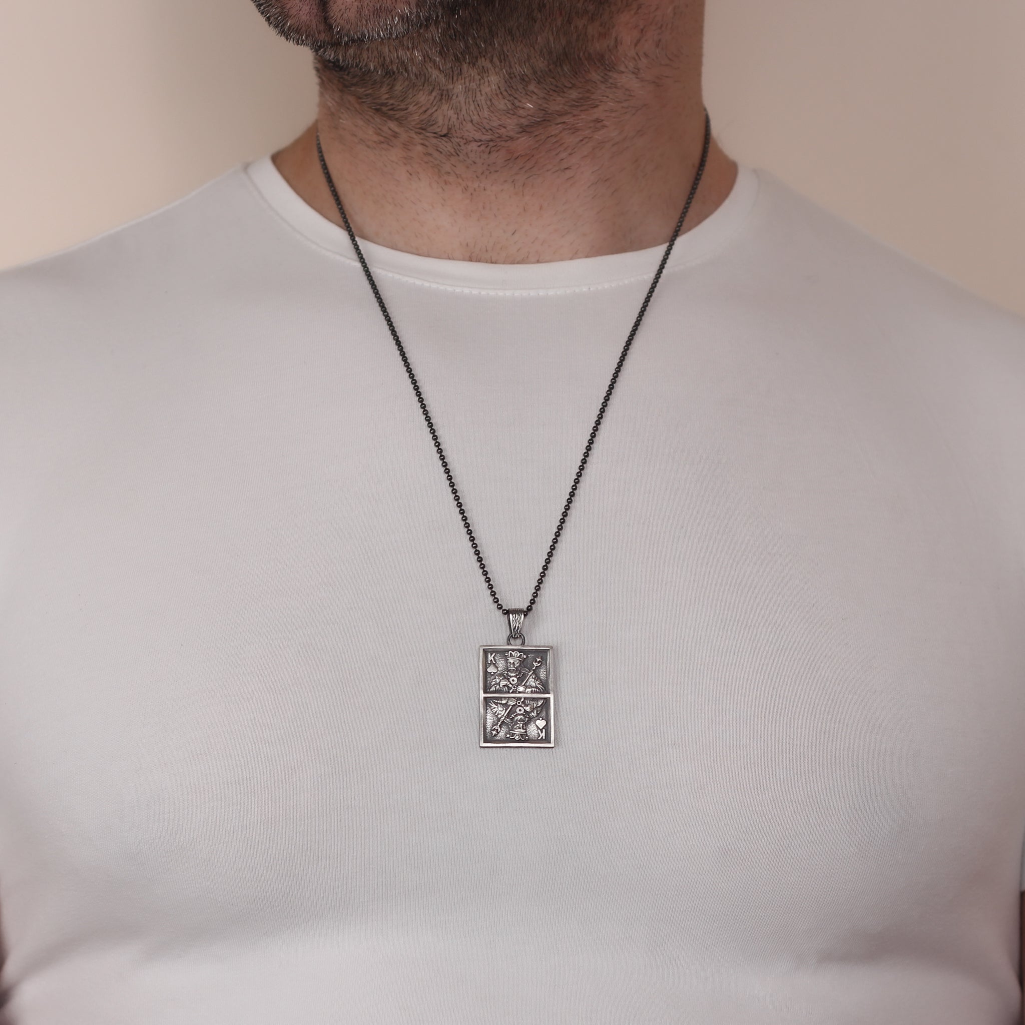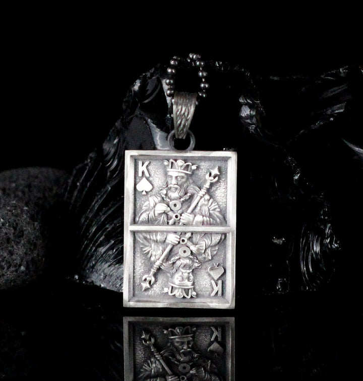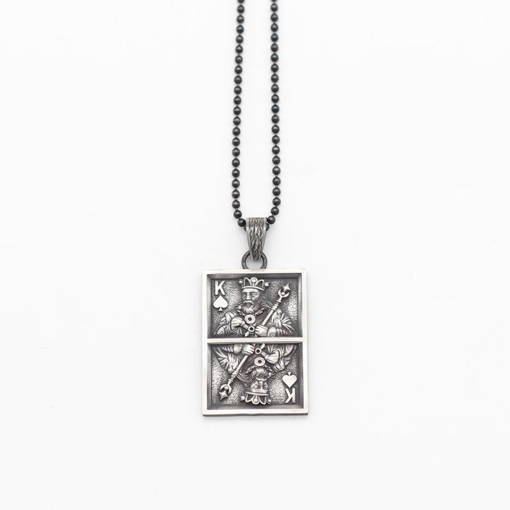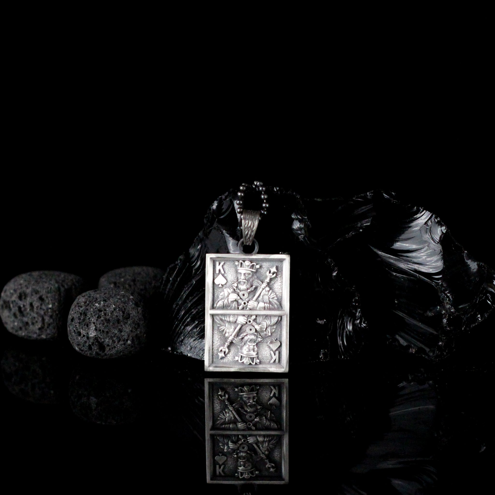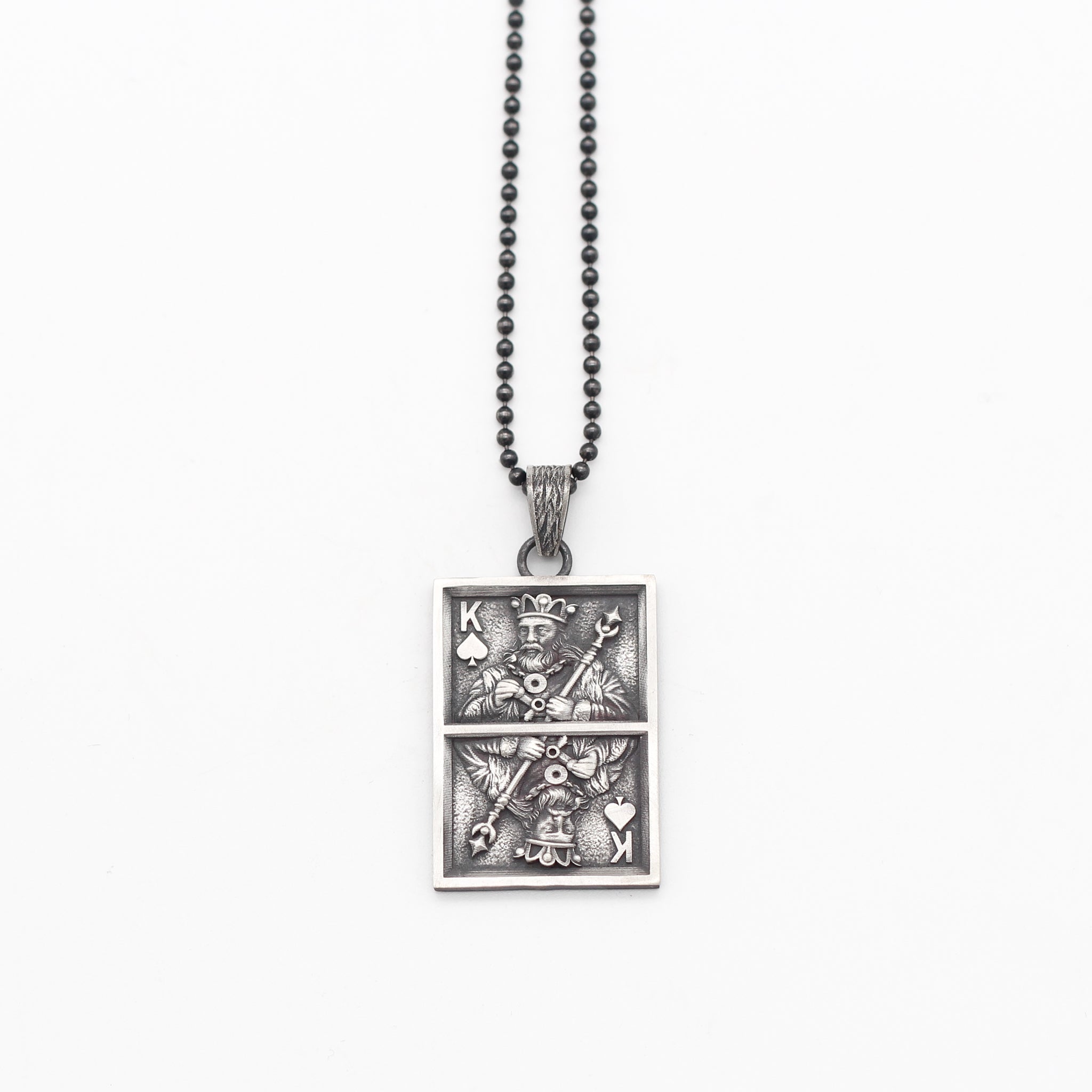 Sterling Silver Men Card Necklace, King Of Spade Silver Necklace For Men
