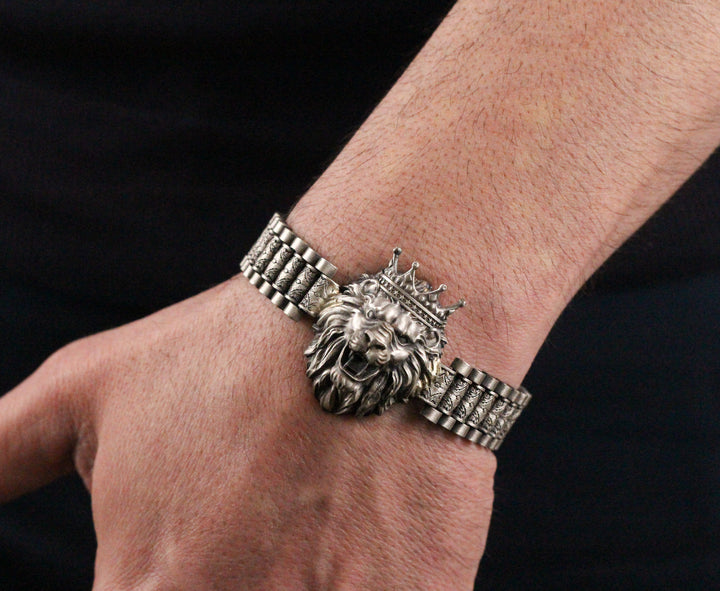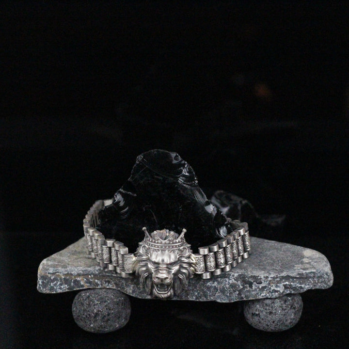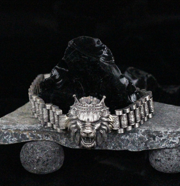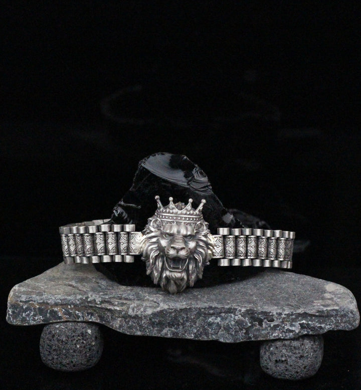 Sterling Silver Men's Royal Lion Head Bracelet | Bold and Sophisticated Design