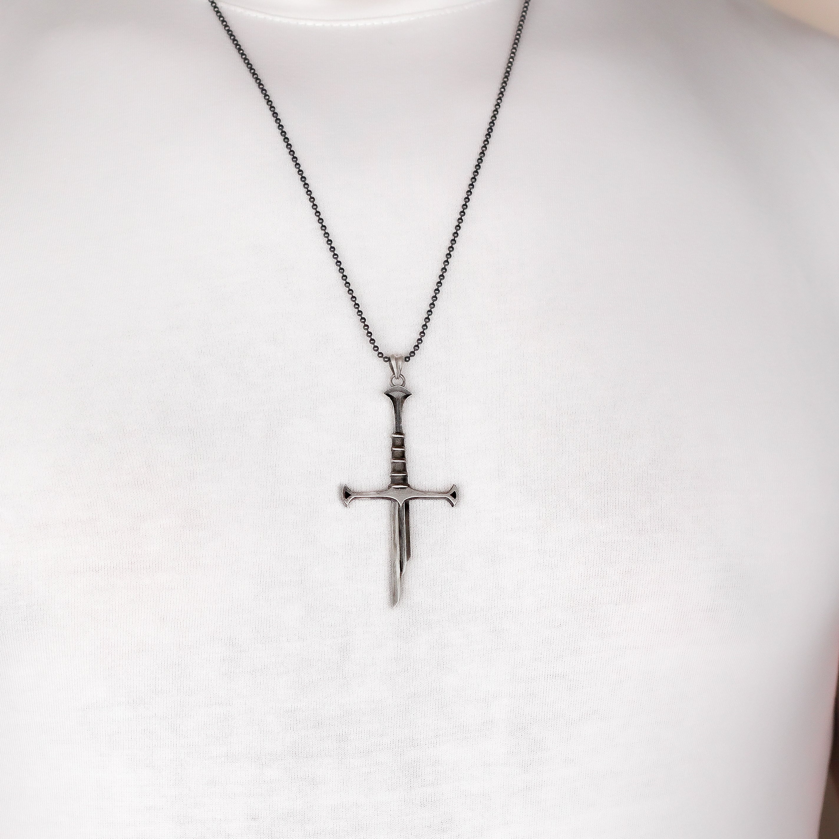 Broken Sword Necklace | Narsil Holy Sword Pendant, Medieval Fantasy Dagger Necklace for Men