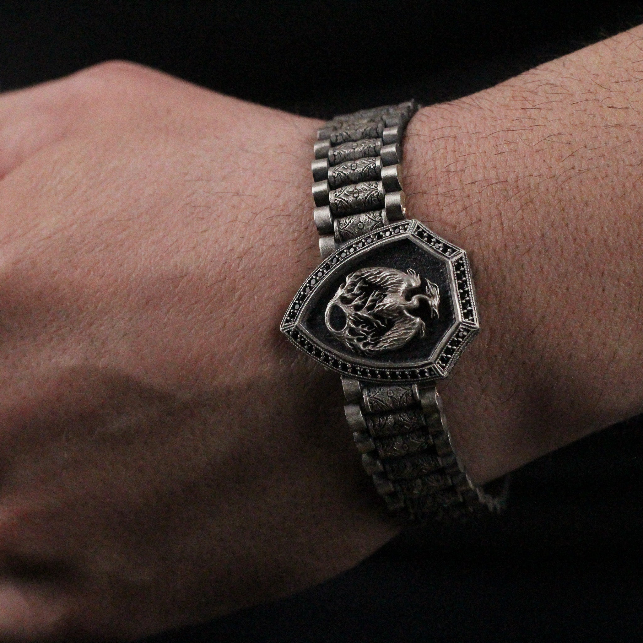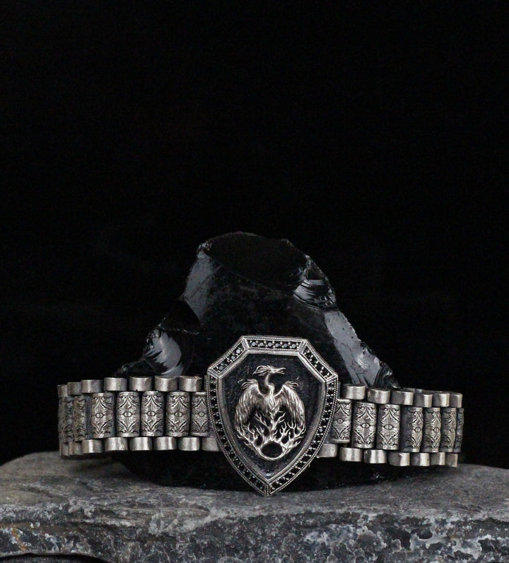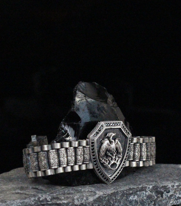 Mythical Phoenix Bracelet in 925K Sterling Silver | Bold Shield Design Jewelry for Men