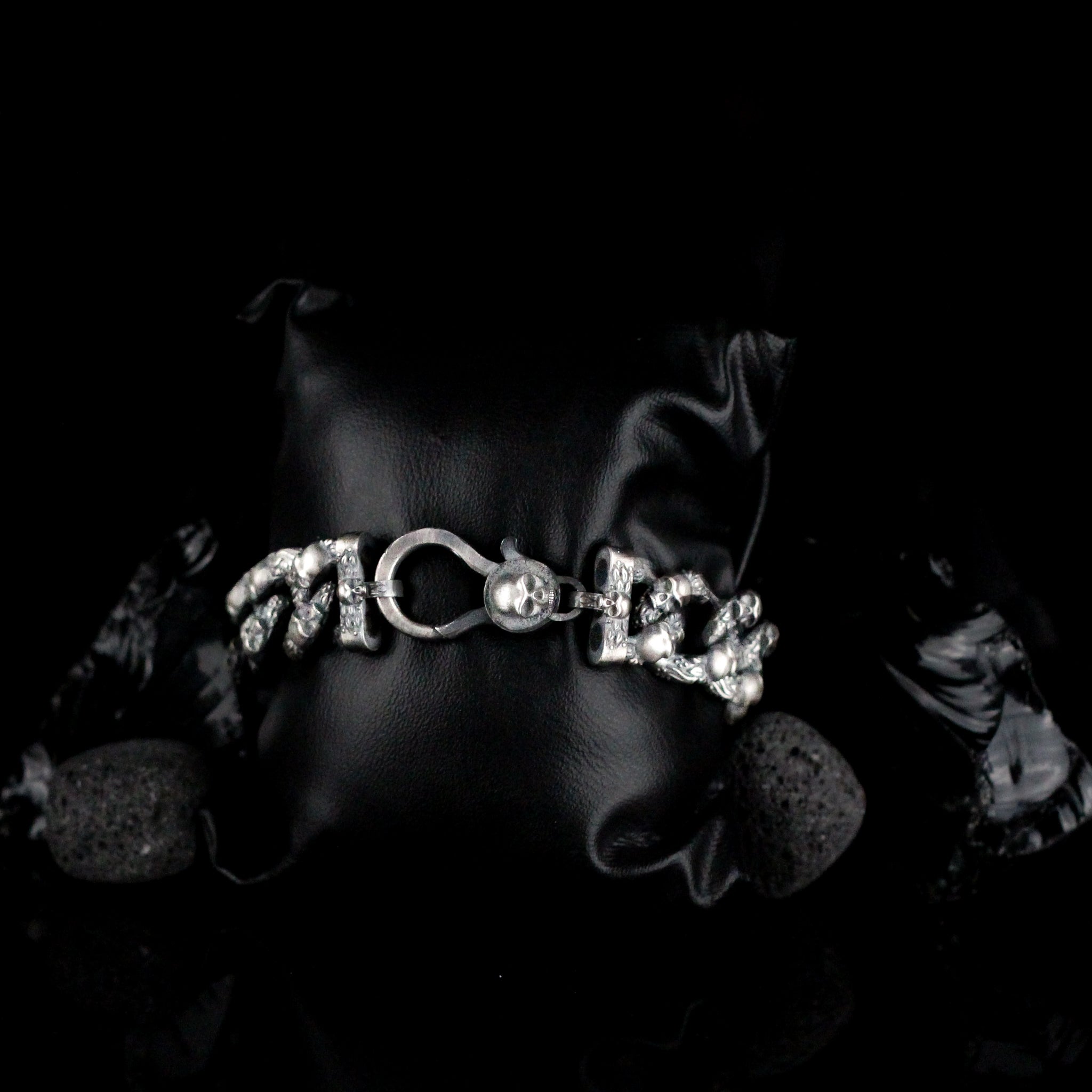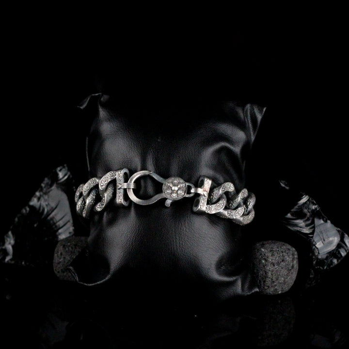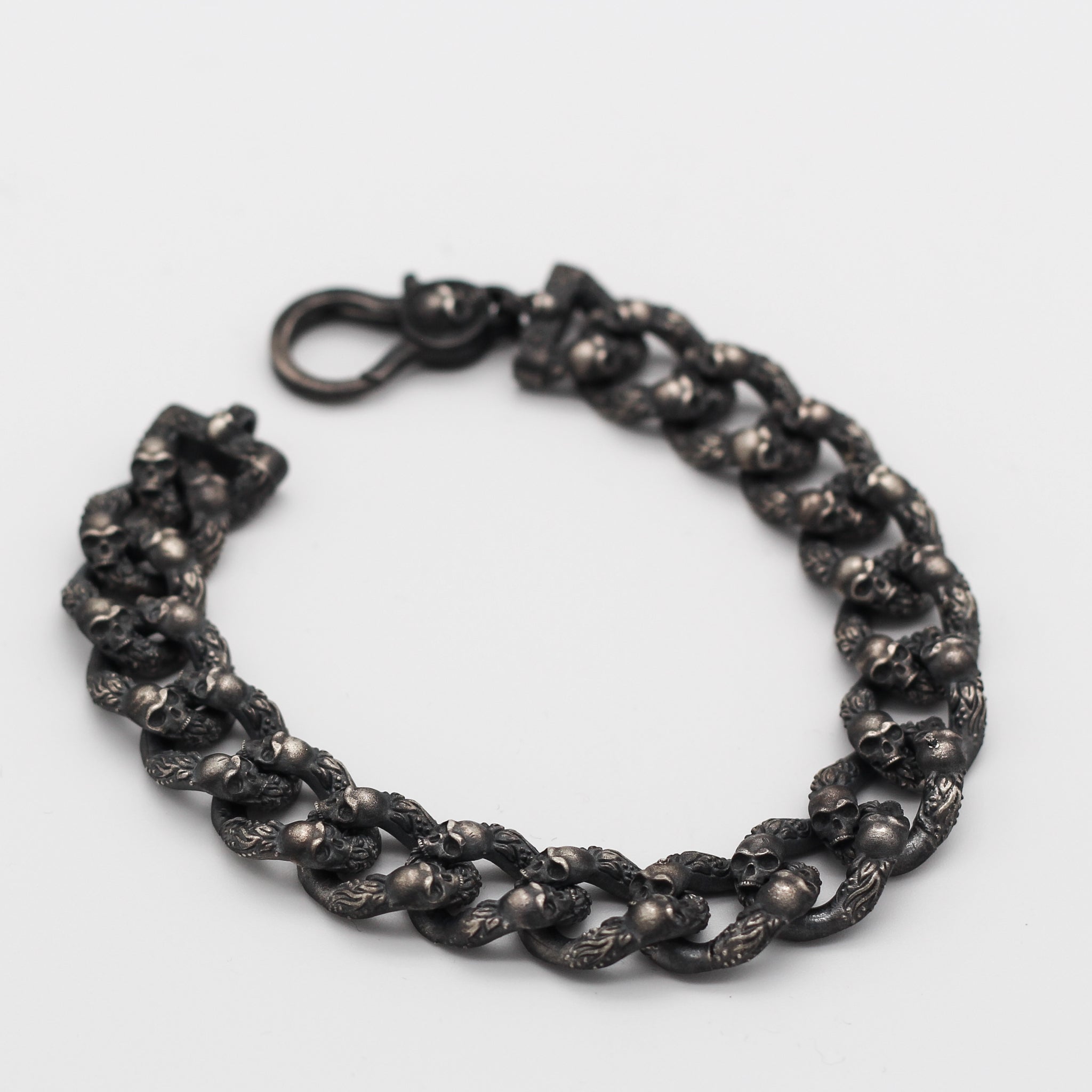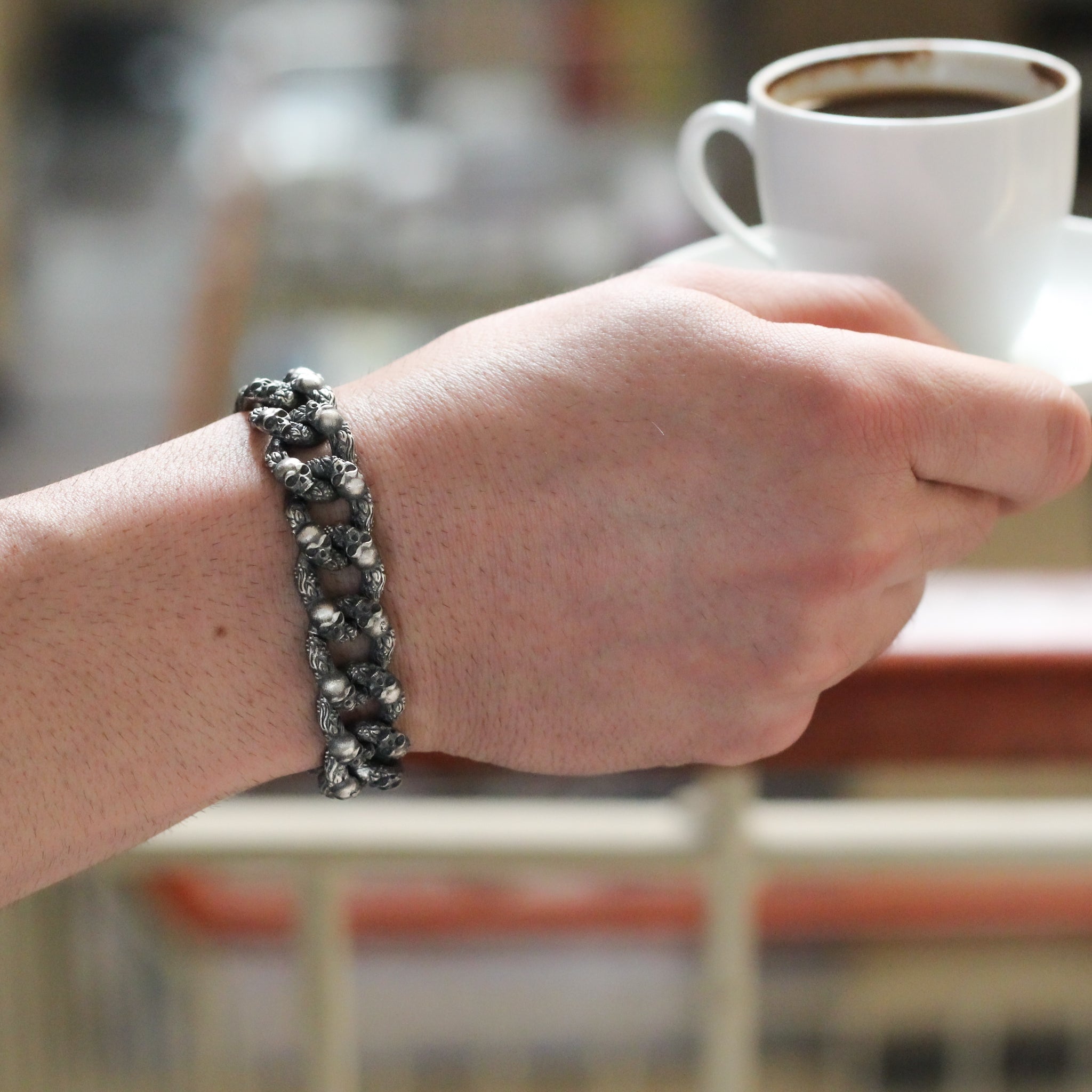Sterling Silver Skull Chain Bracelet Men, Handmade Skull Jewelry for Men