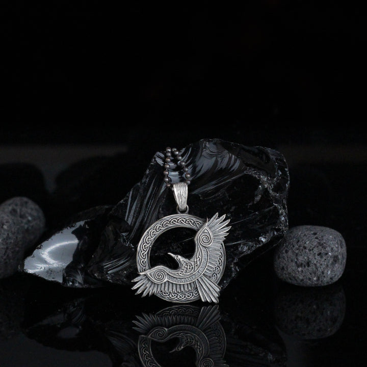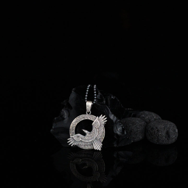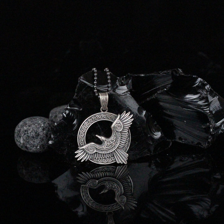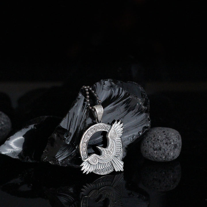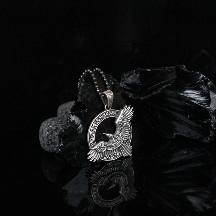 Viking Raven Pendant Necklace in 925 Sterling Silver | Norse Mythology Charm Necklace