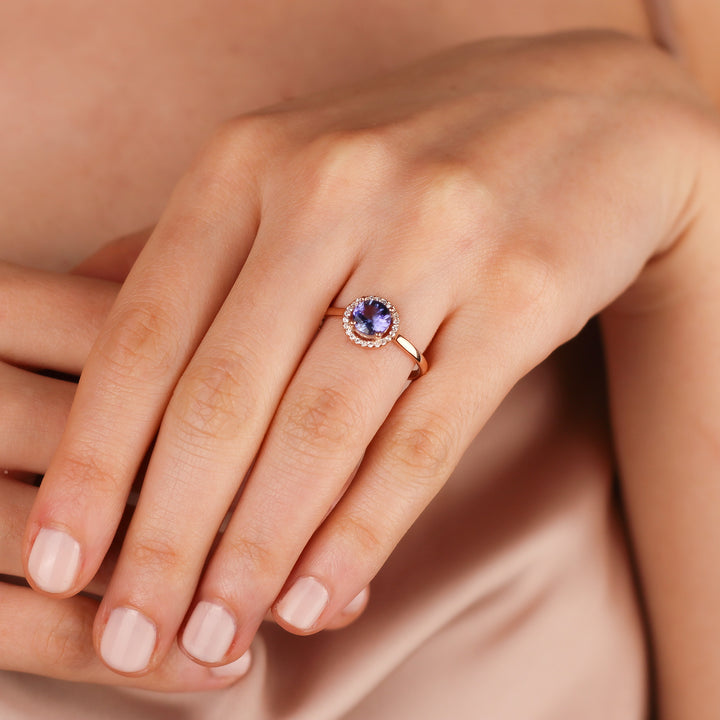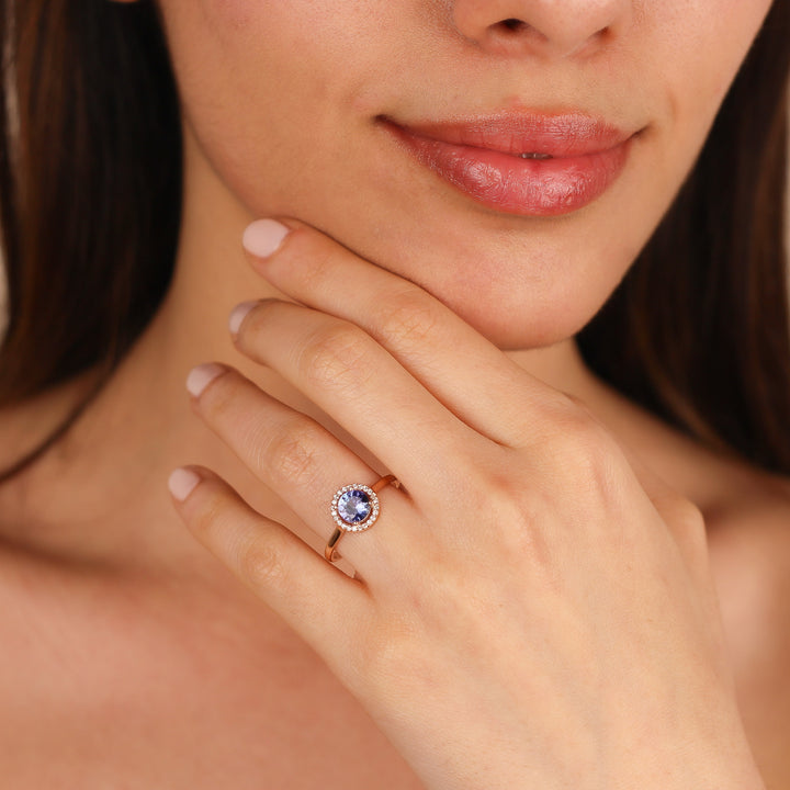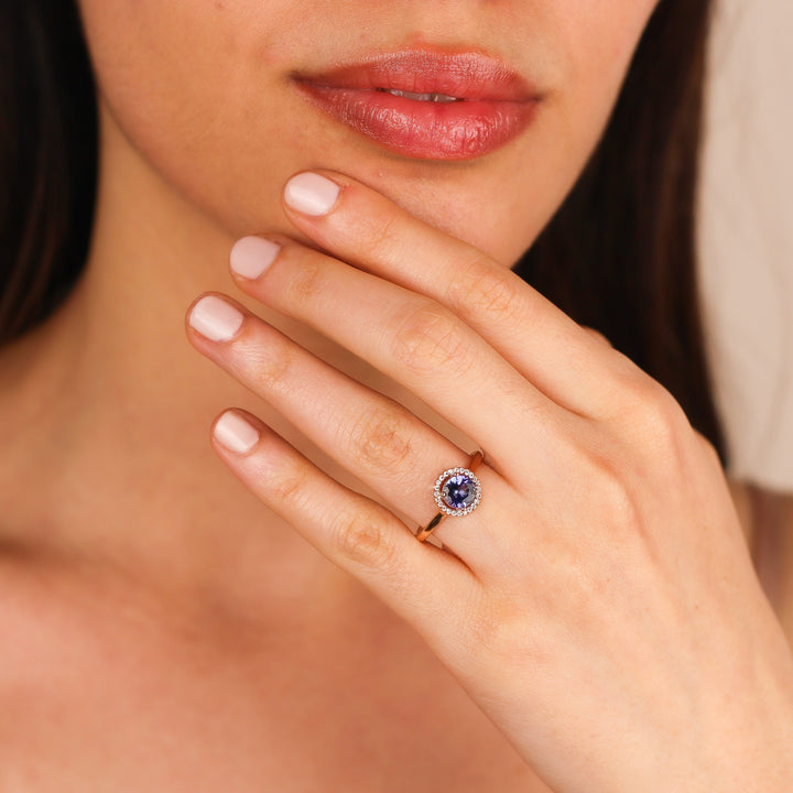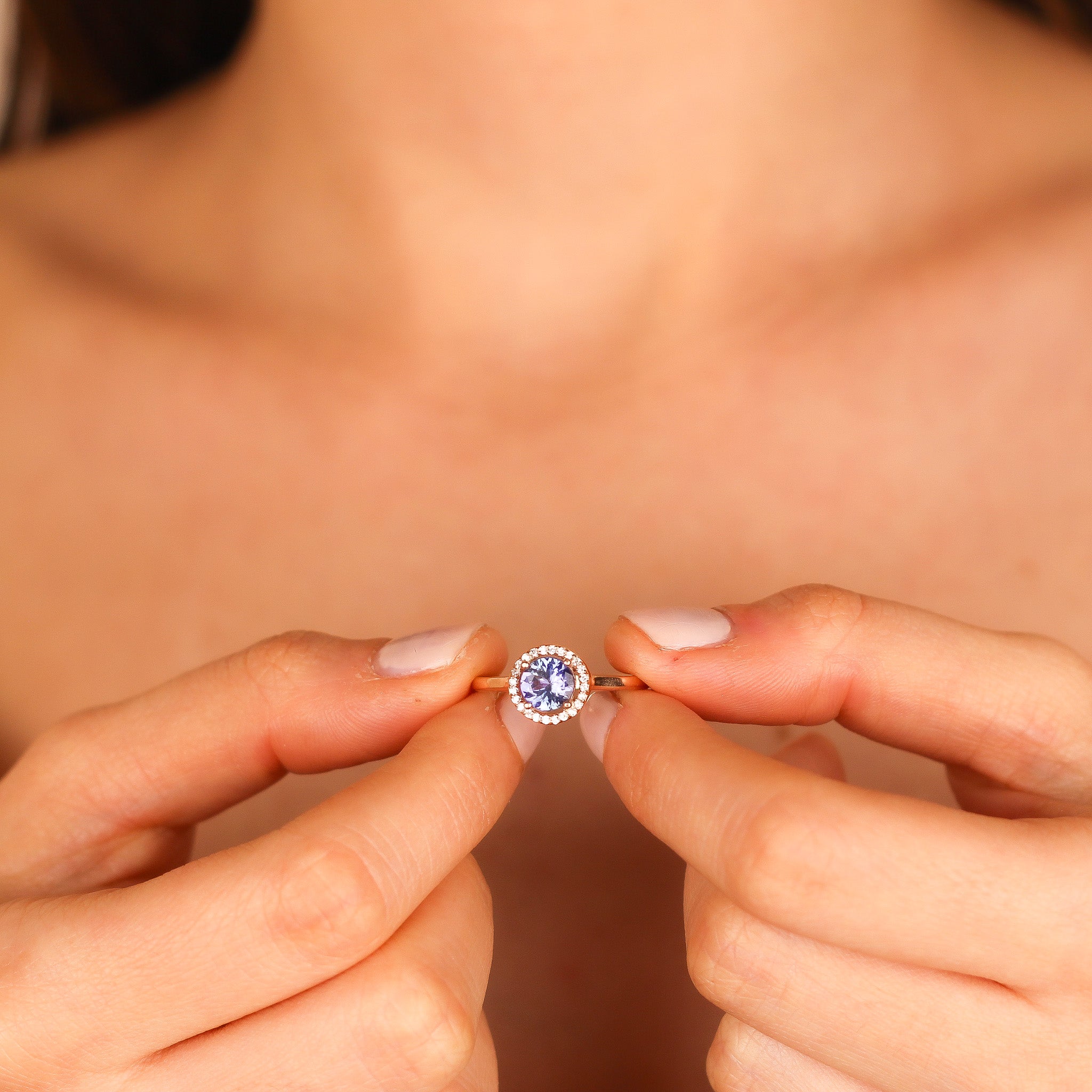 IZOLDA Solid Gold Tanzanite Engagement Ring | Luxury and Radiant Tanzanite Halo Ring for Her