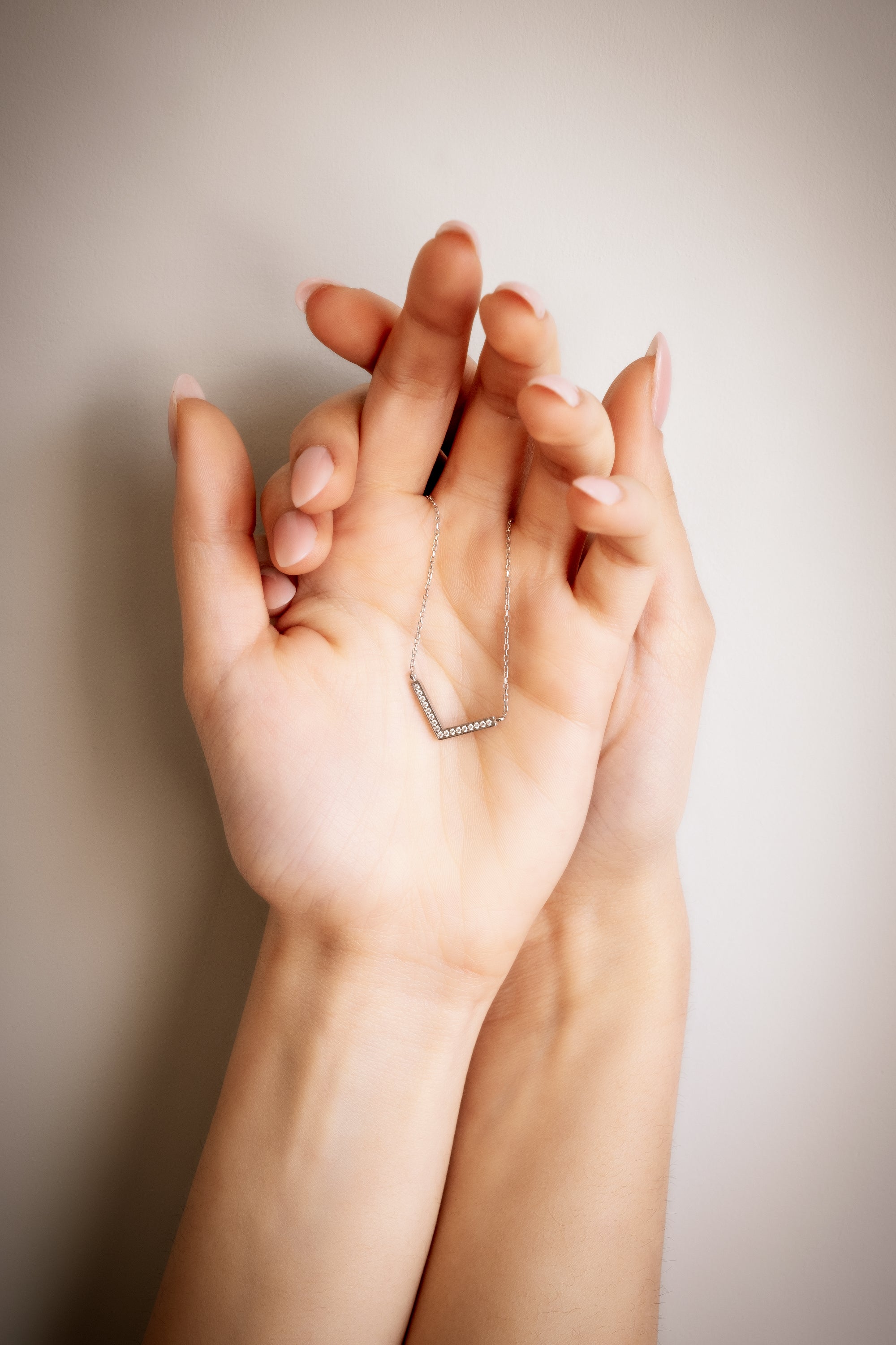 Add a touch of modern elegance to your jewelry collection with this stunning Chevron V Shape Necklace. Featuring a sleek V-shaped design adorned with your choice of shimmering diamonds or cubic zirconia, this pendant is perfect for layering or as a statement piece. Crafted with premium materials, this necklace is a thoughtful gift for anniversaries, birthdays, or simply treating yourself
