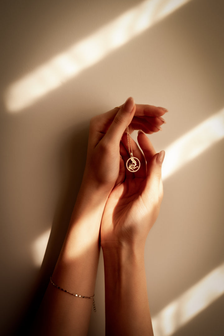 Celebrate the elegance and precision of Virgo with this stunning Virgo Zodiac Necklace, showcasing the Virgo symbol encircled by a dazzling halo of diamonds or zircon stones. Available in 925K sterling silver, 8K solid gold, or 14K solid gold, this pendant is a timeless piece for astrology enthusiasts or anyone who values the grounded, thoughtful nature of this earth sign. Perfect as a meaningful gift or a luxurious addition to your jewelry collection.