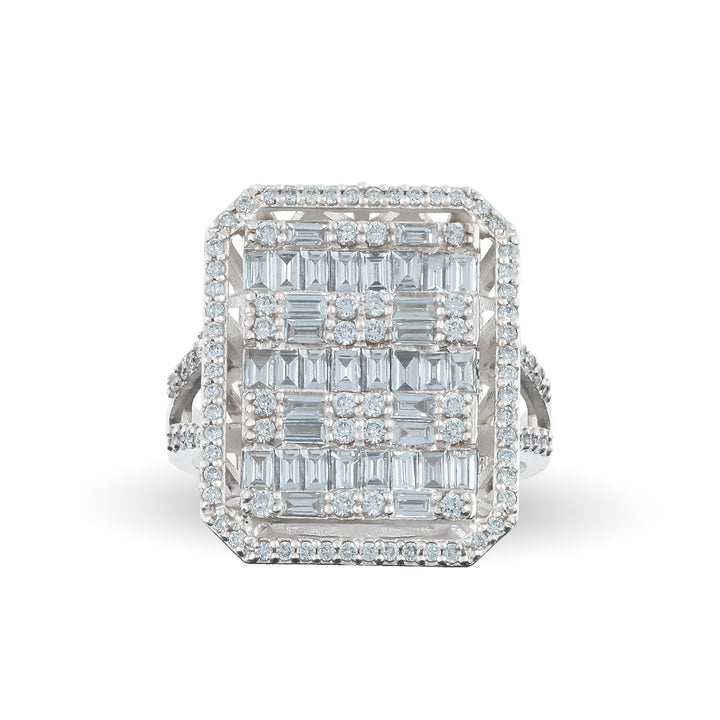 Elevate your jewelry collection with this Elegant White Gold Diamond Cocktail Ring, a true masterpiece crafted from premium 8K or 14K solid gold. Featuring a striking arrangement of baguette and round-cut diamonds, this luxurious piece exudes sophistication and glamour, making it perfect for weddings, anniversaries, or any special occasion.