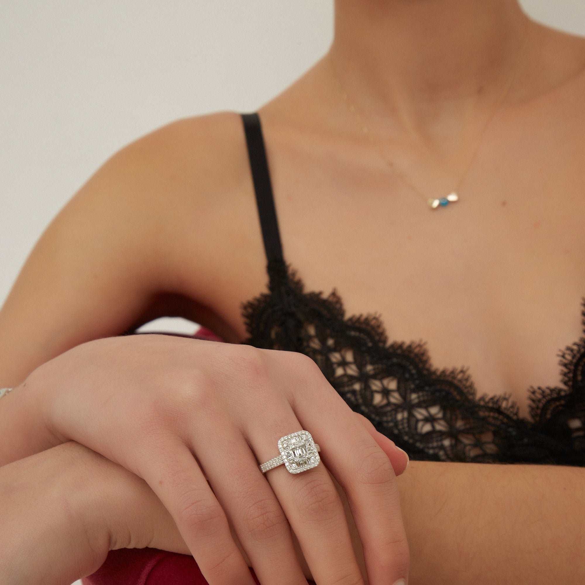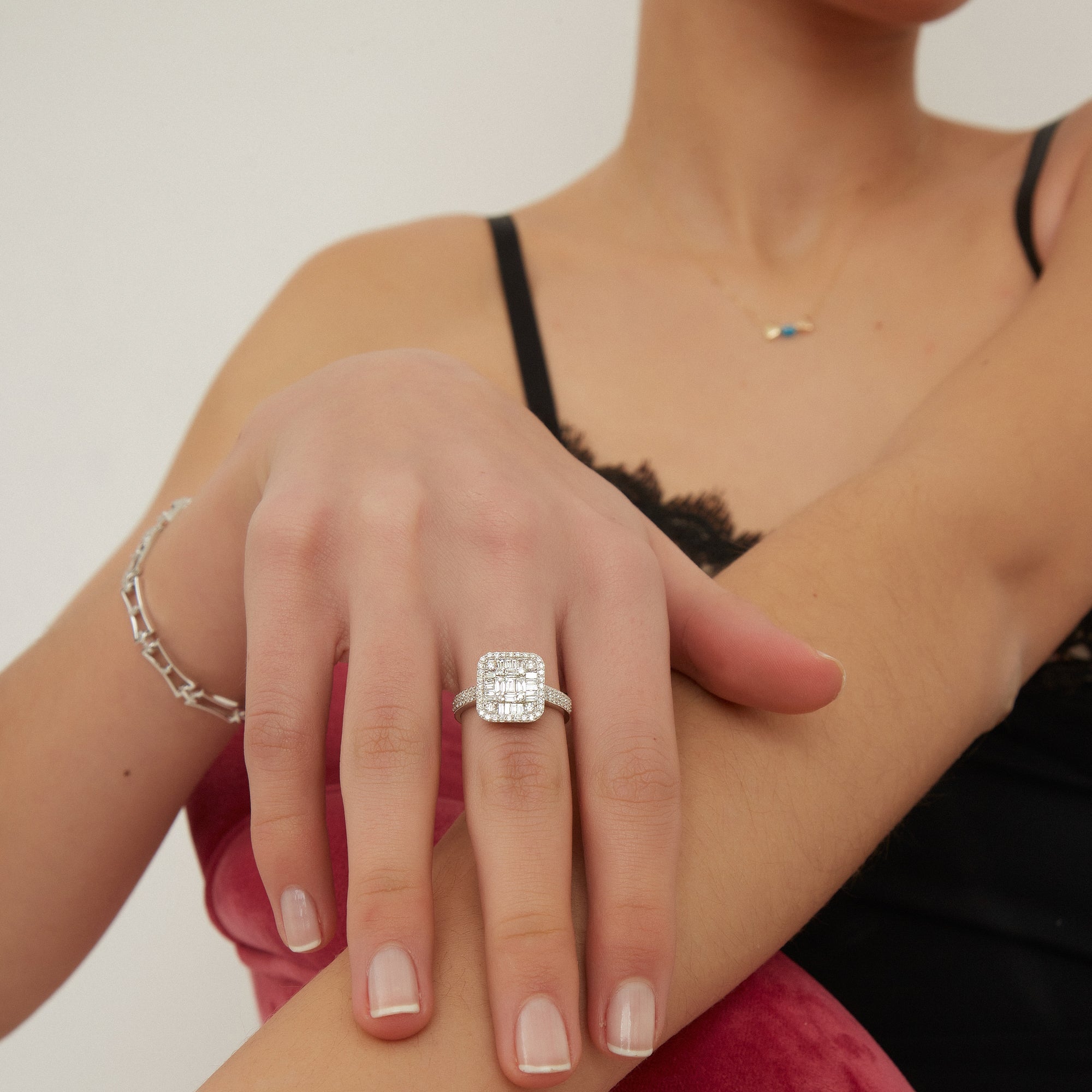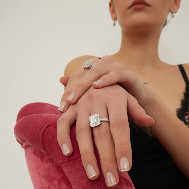 Celebrate your love story with this Exquisite White Gold Diamond Ring, a masterpiece of elegance and sophistication. Made from premium 8K or 14K solid gold, this breathtaking ring features a dazzling square-shaped diamond cluster, perfect for engagements, weddings, or anniversaries.