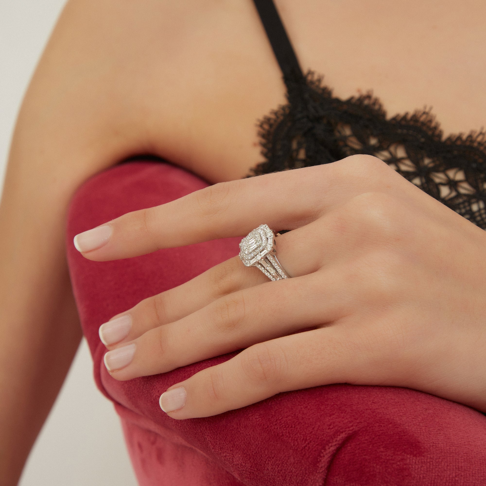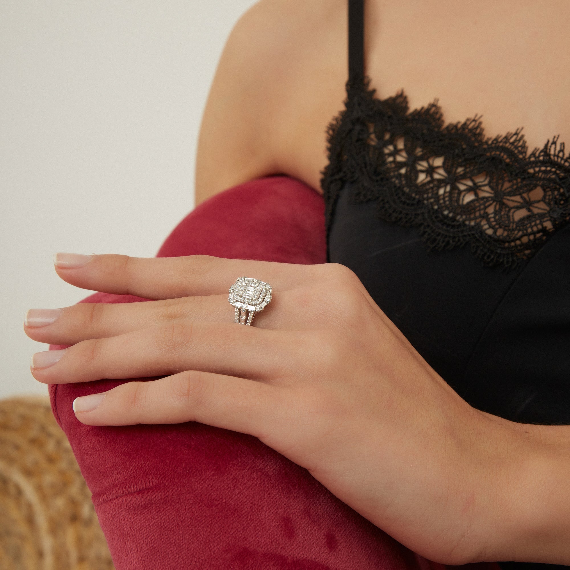Celebrate timeless love with this Luxury White Gold Diamond Engagement Ring, a perfect blend of elegance and sophistication. Made from premium 8K or 14K solid gold, this exquisite ring showcases a stunning arrangement of baguette and round diamonds, making it a breathtaking piece for engagements, weddings, or anniversaries.
