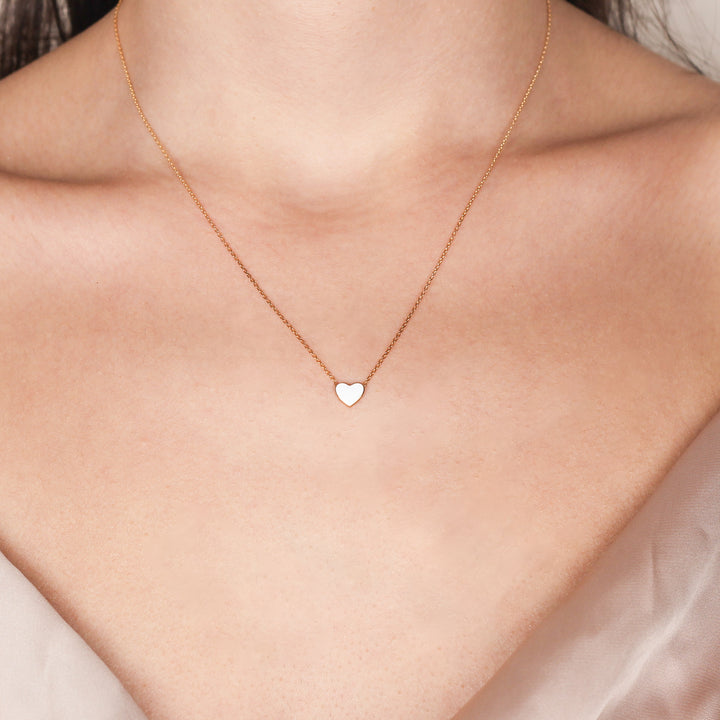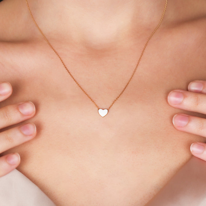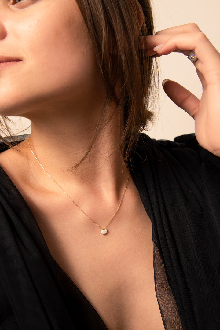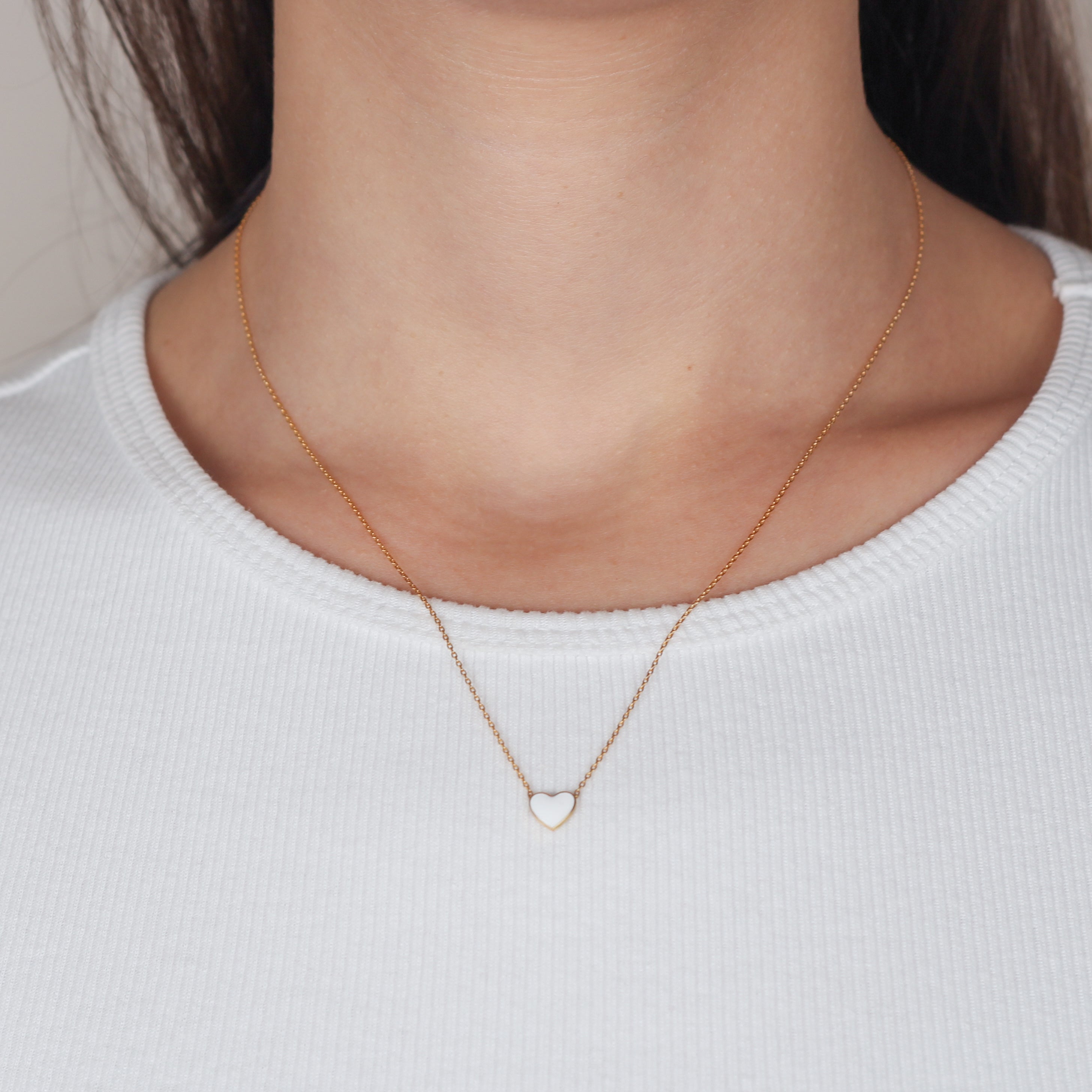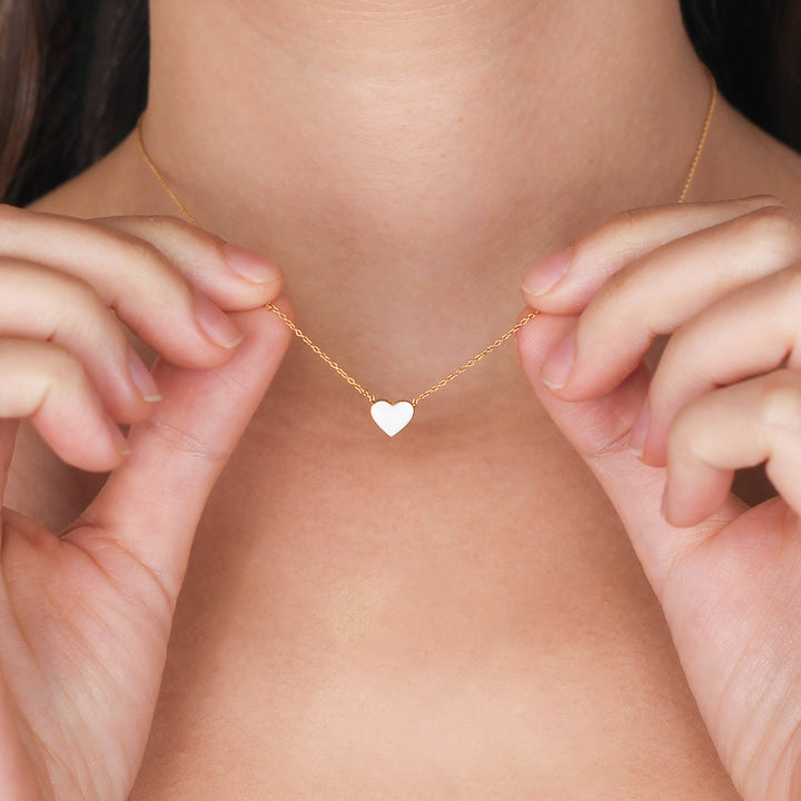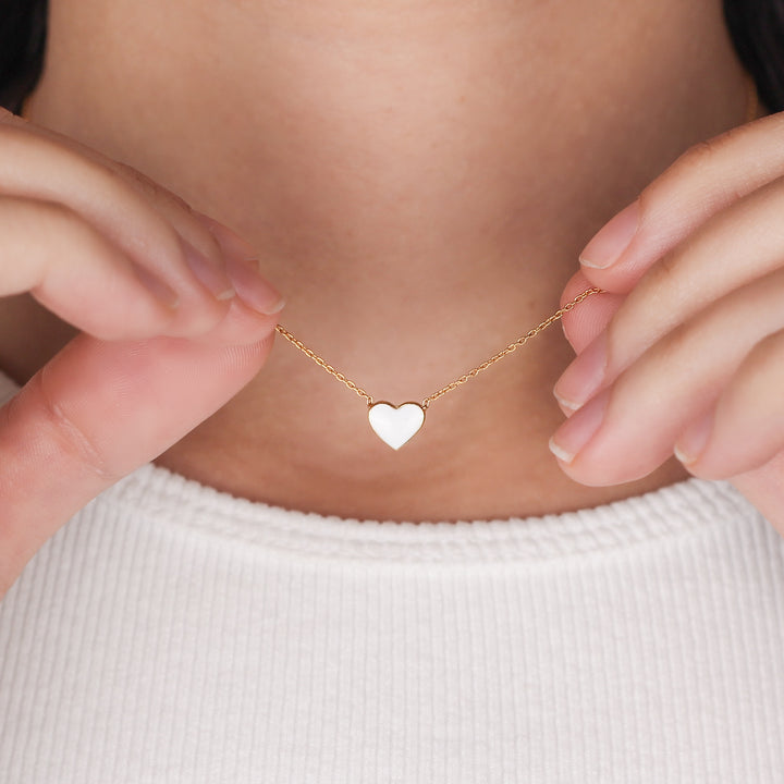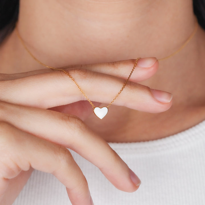 CHER Elegant White Heart Necklace | Dainty Enamel Pendant in Silver & Gold