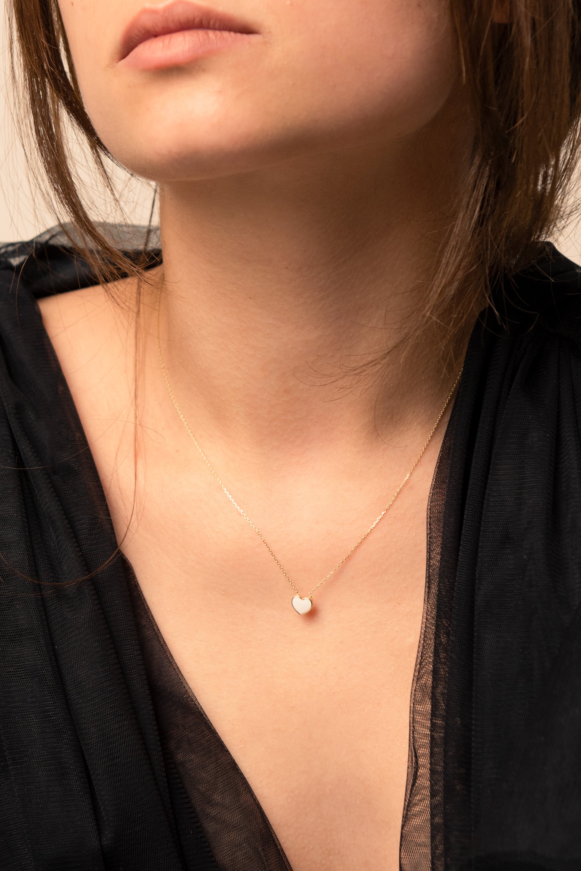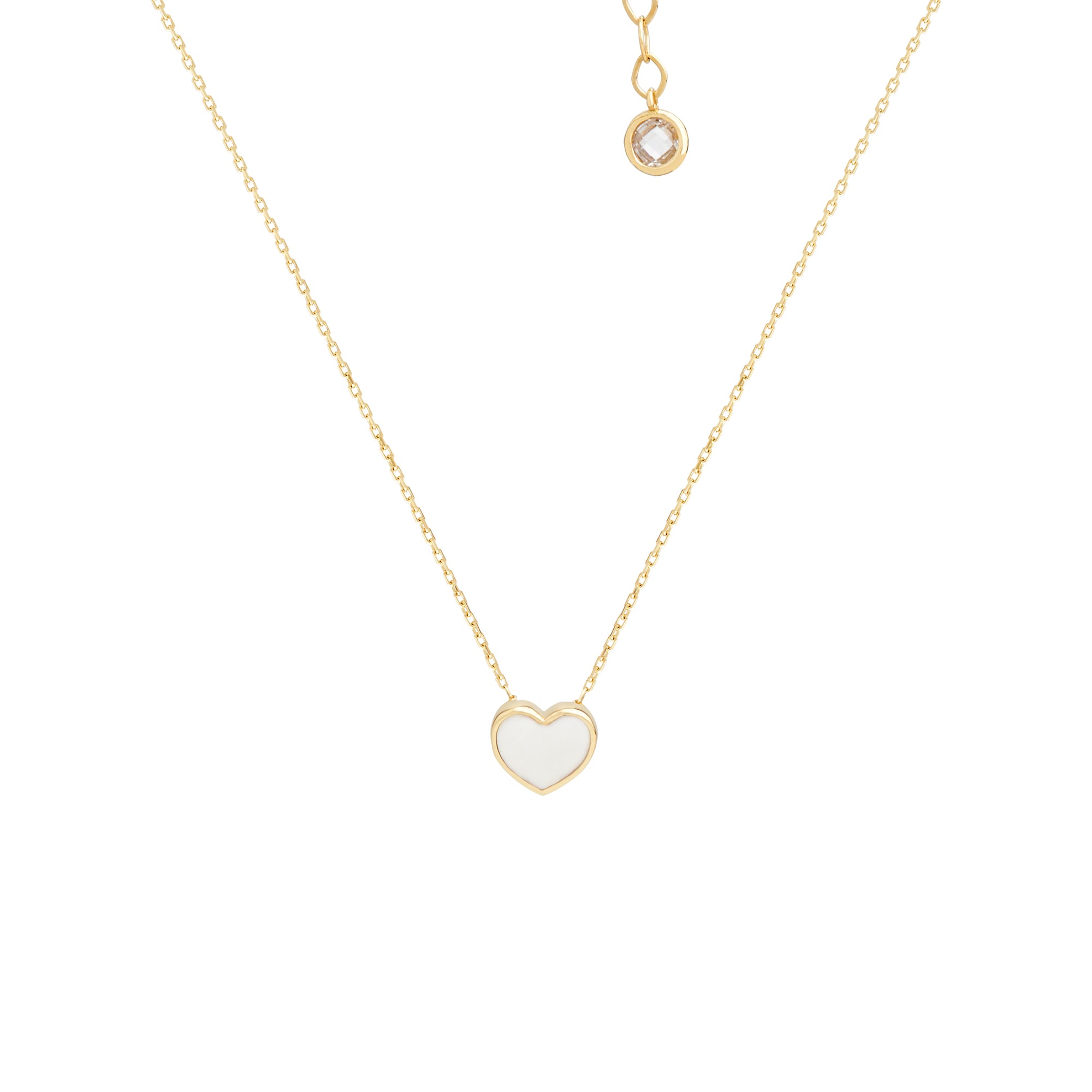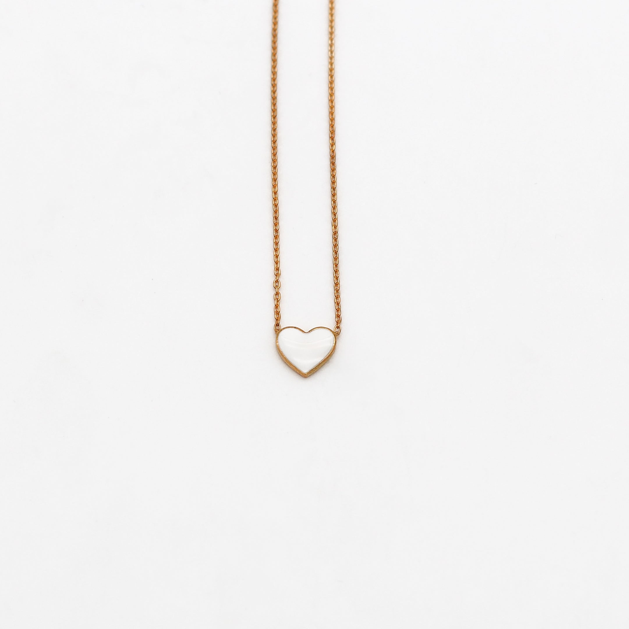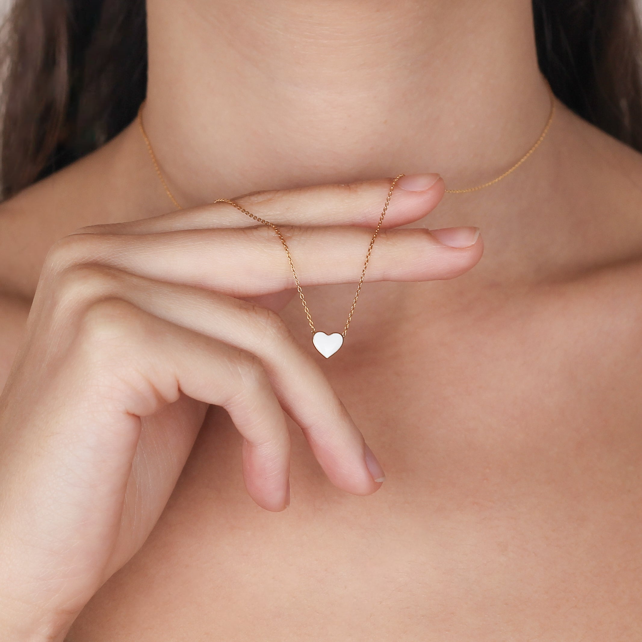 CHER Elegant White Heart Necklace | Dainty Enamel Pendant in Silver & Gold