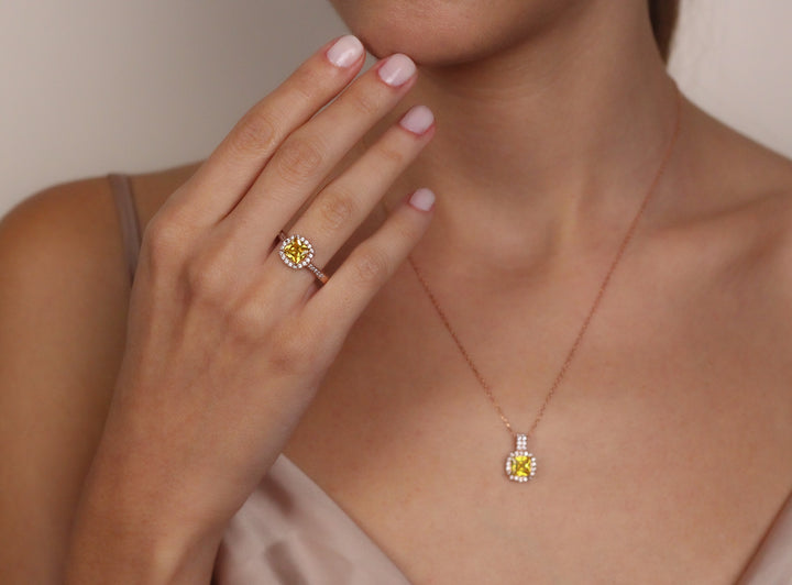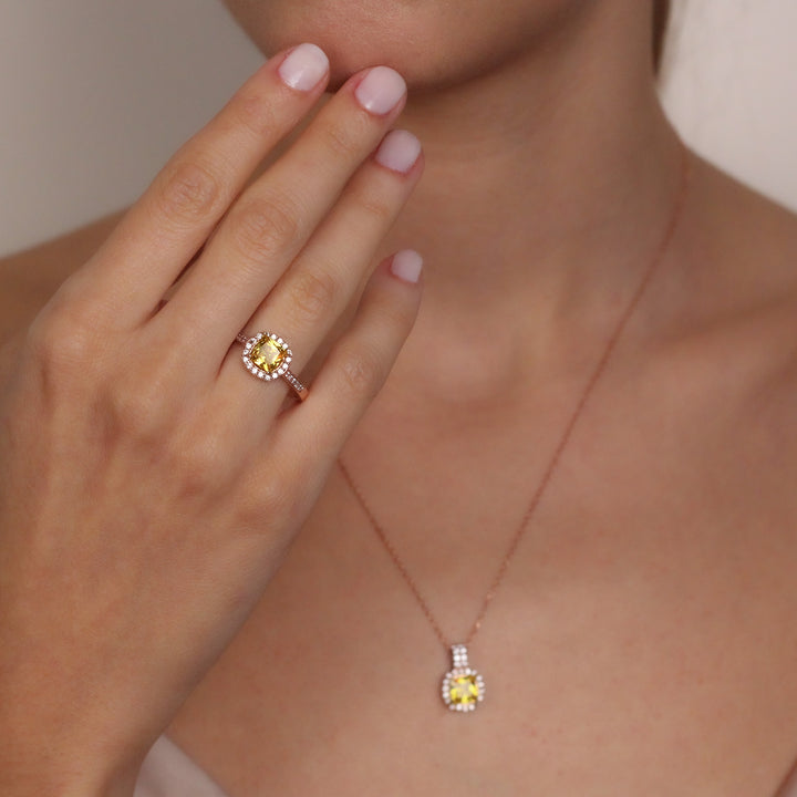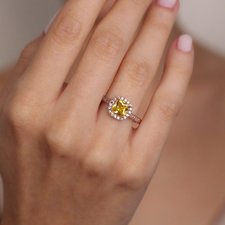 Vibrant Yellow Sapphire Halo Ring with Zircon Stones | Solid Gold & Silver Sapphire Promise Ring for Her