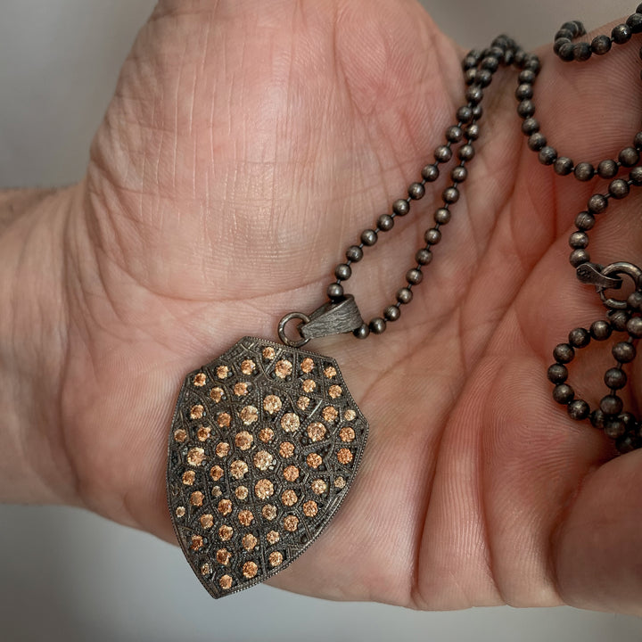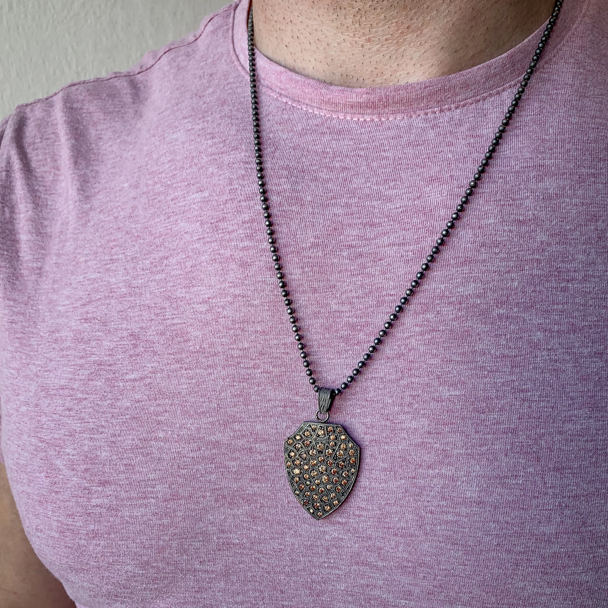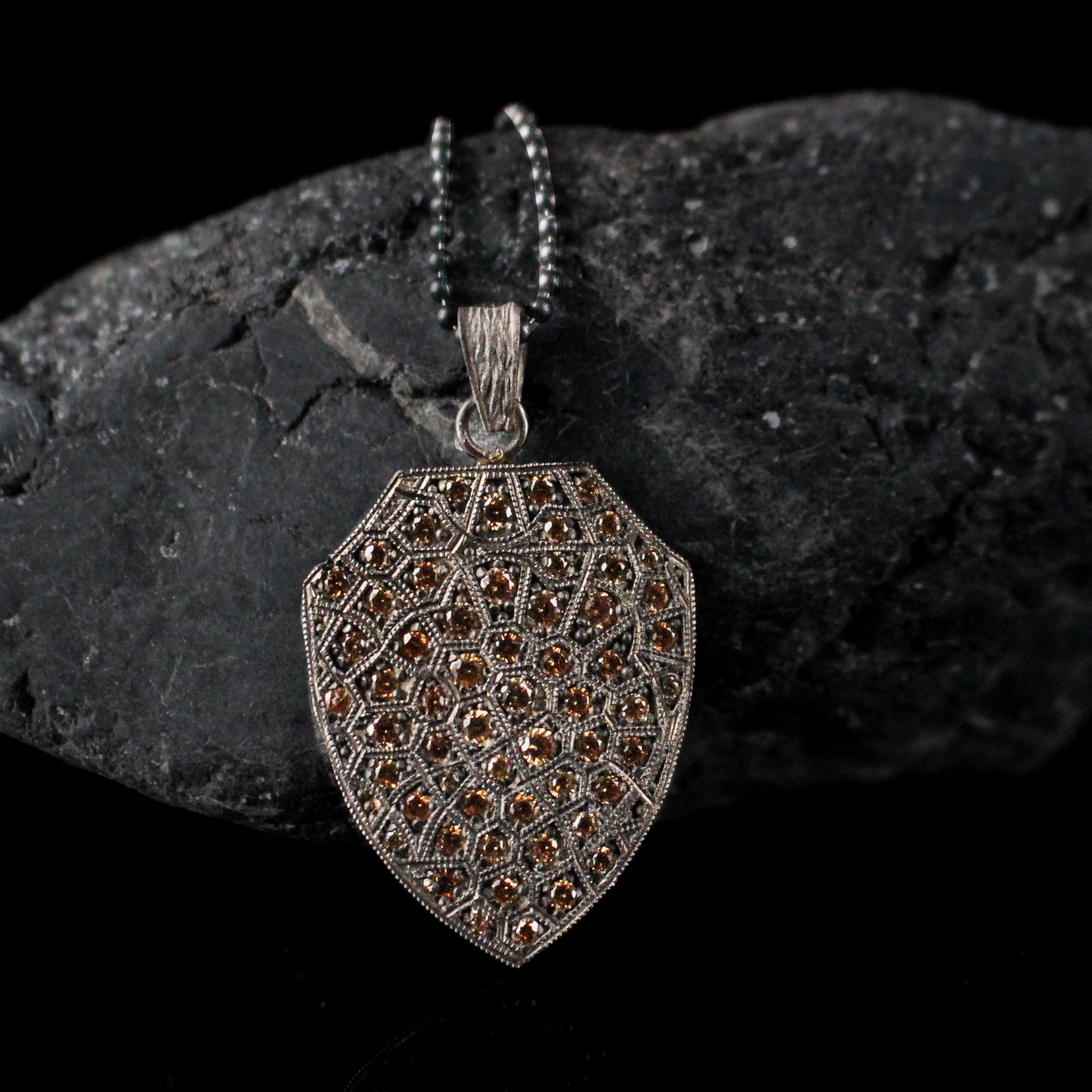 Yellow Stone Shield Pendant Necklace in Sterling Silver | Medieval Warrior Shield Necklace