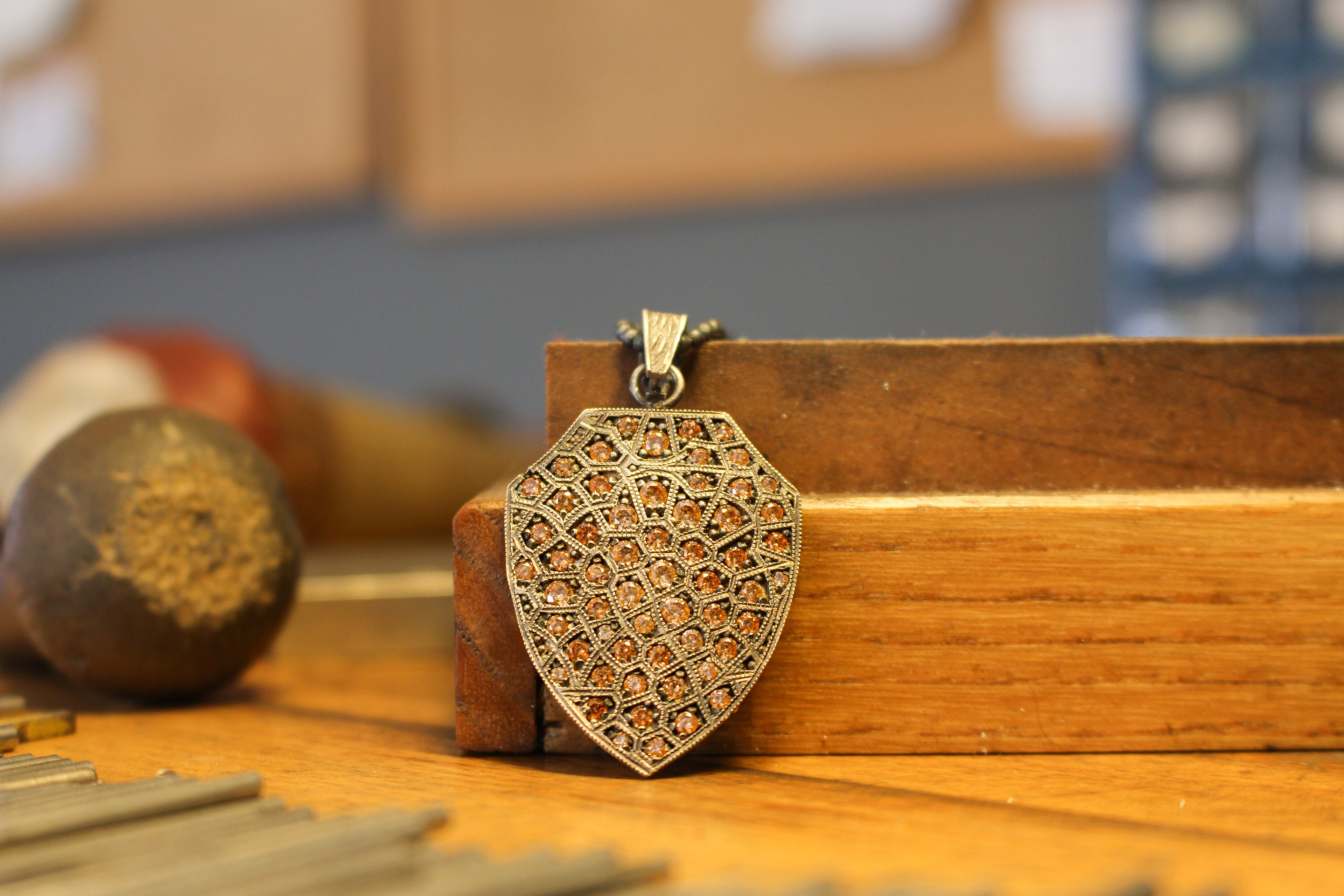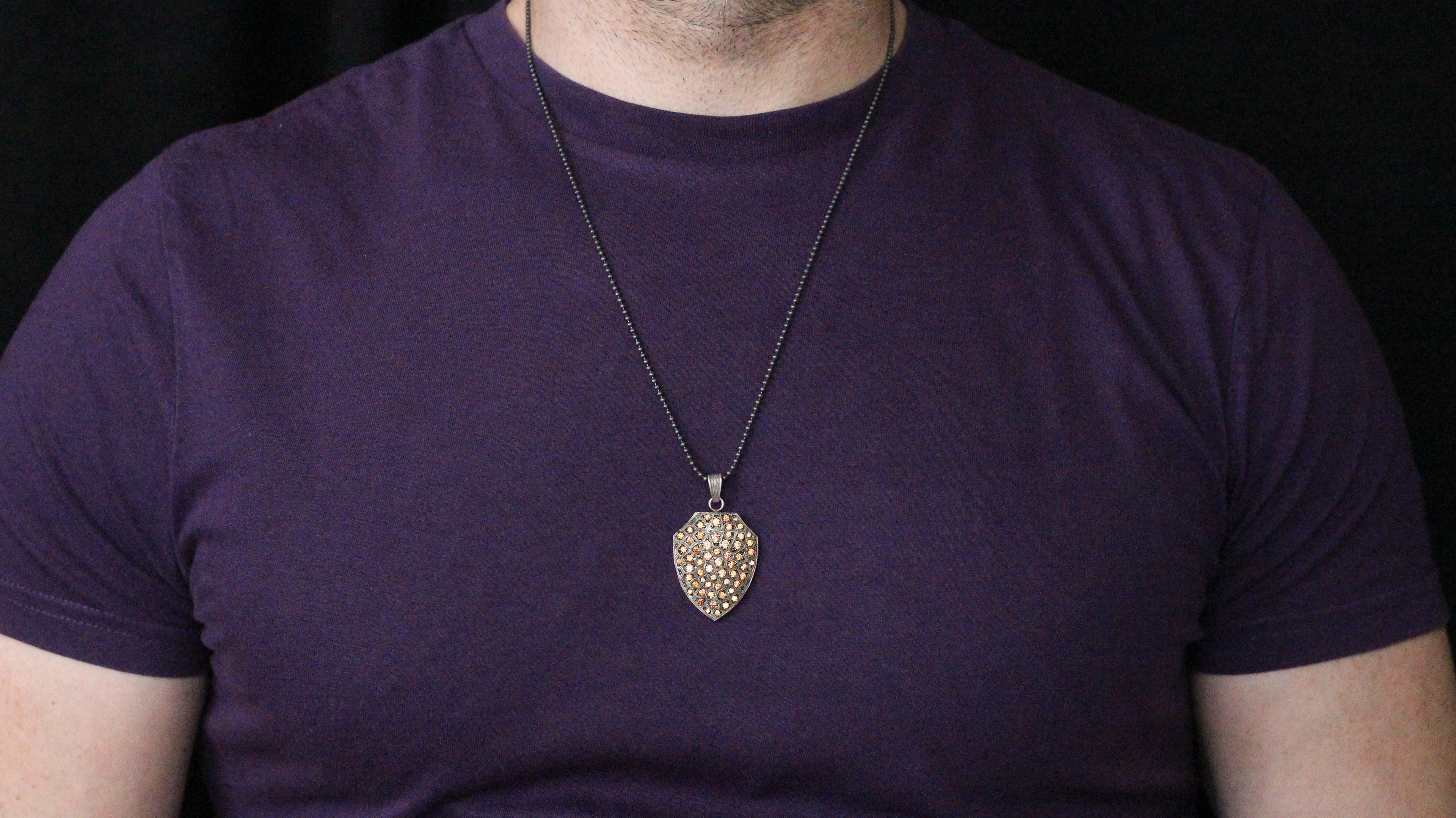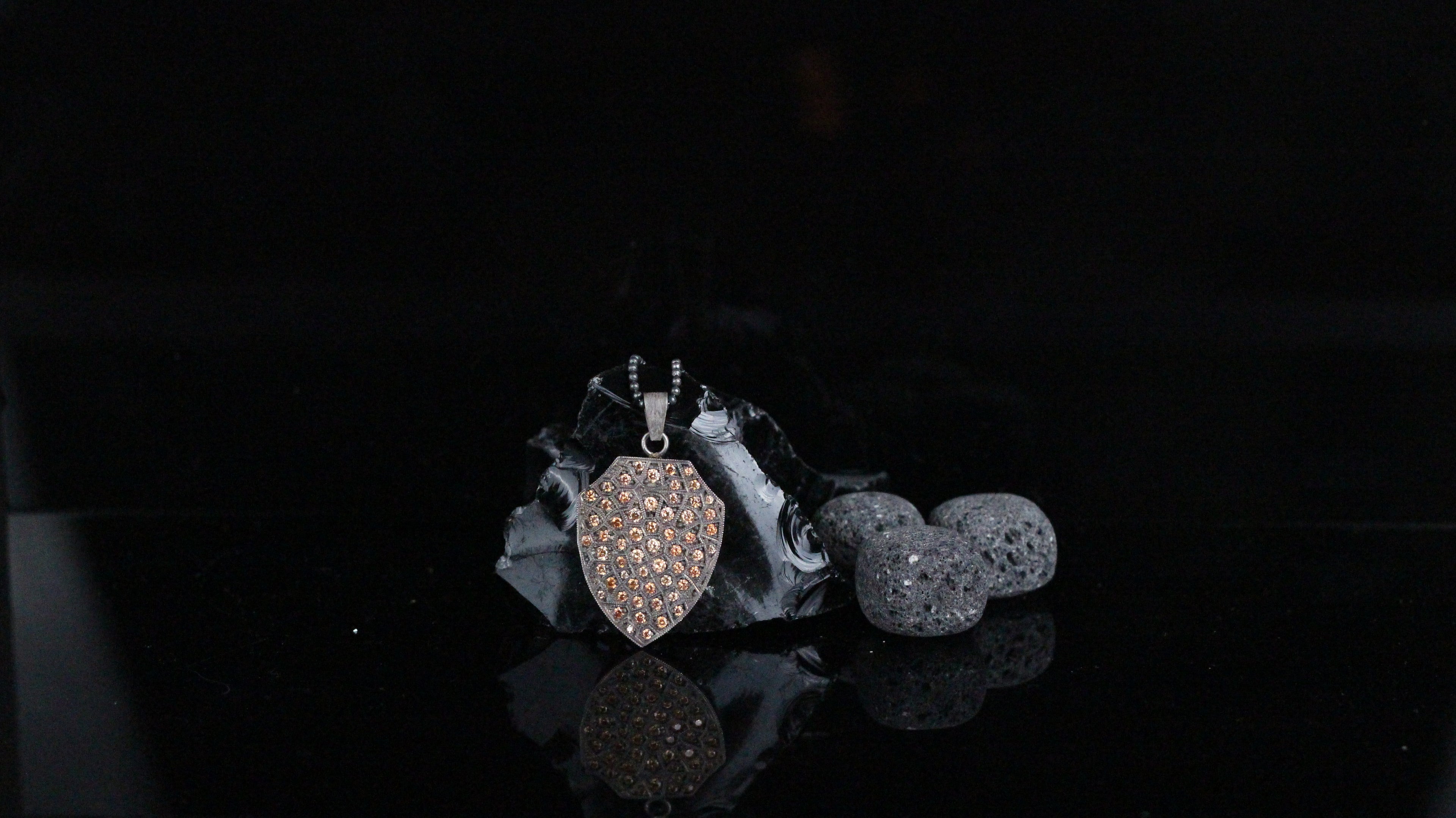 Yellow Stone Shield Pendant Necklace in Sterling Silver | Medieval Warrior Shield Necklace