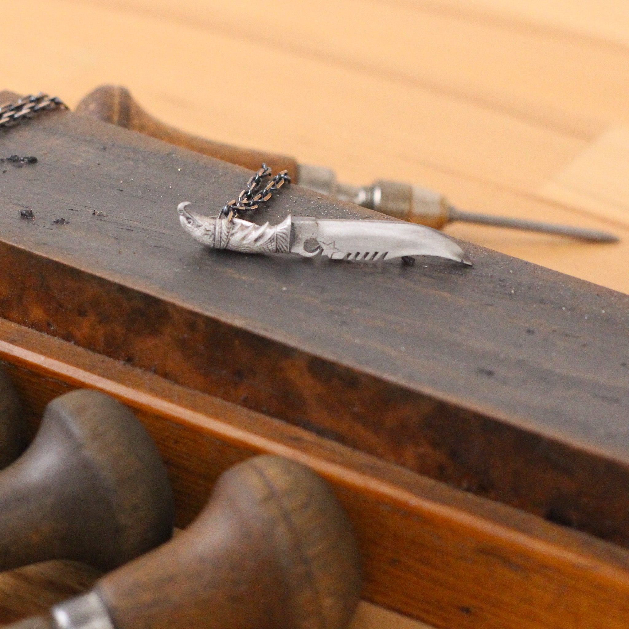 Commando Knife with Eagle Necklace, Handmade Eagle Charm Necklace